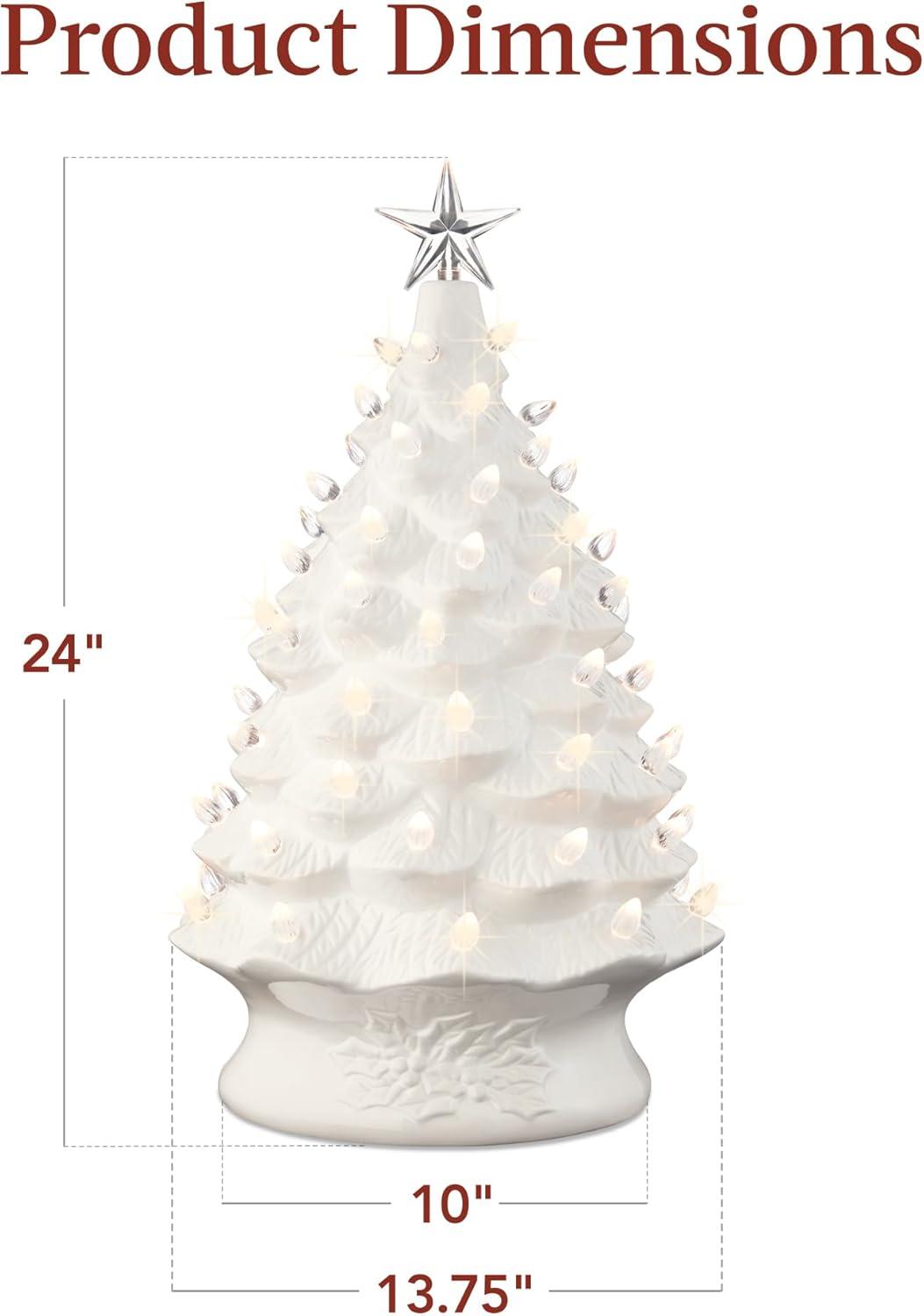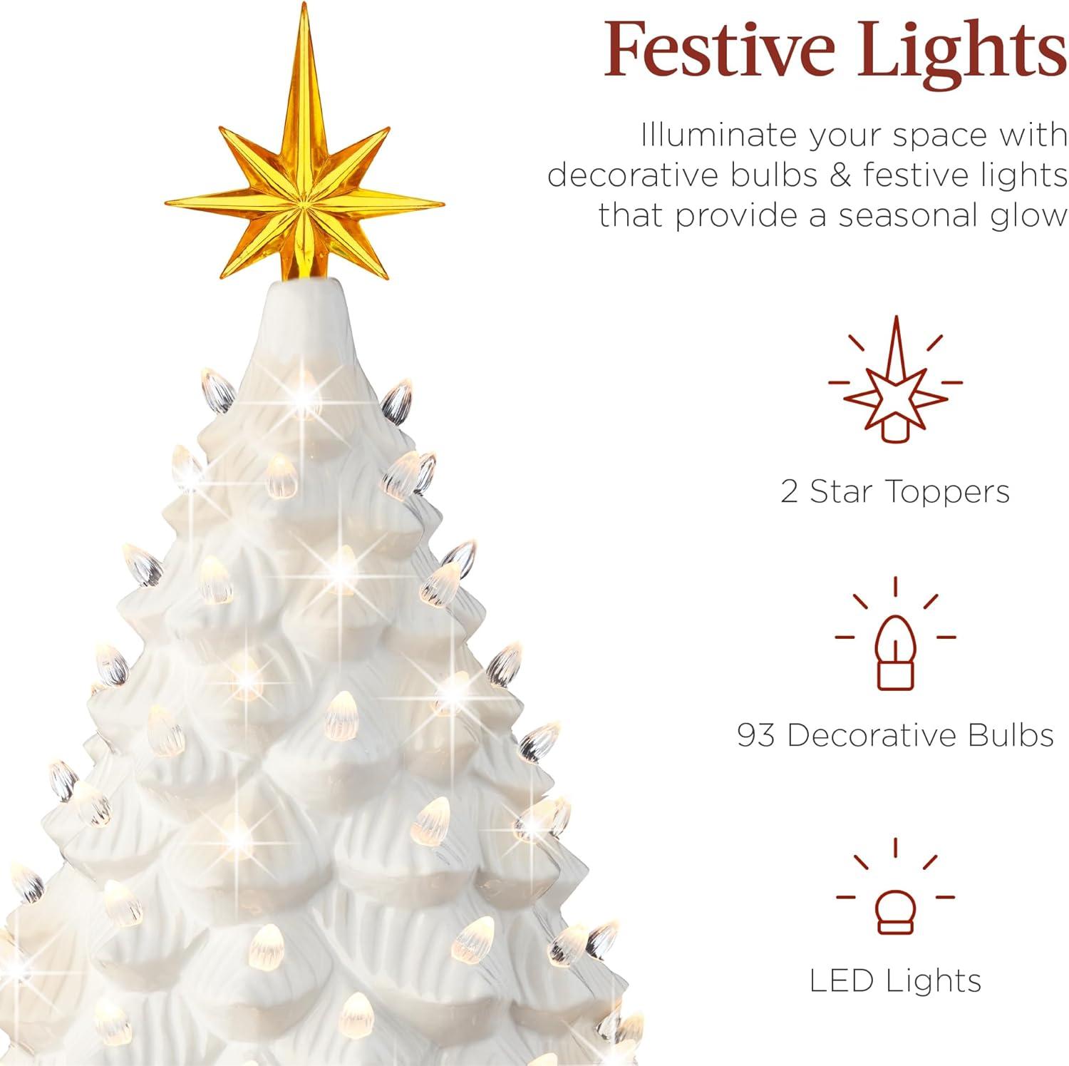 Best Choice Product 24in Extra Large Ceramic Christmas Tree, Pre-Lit Hand-Painted Tabletop XL Indoor Holiday Tree, 74 Multicolor Bulbs, LED Lights – Green(White W/ Warm White Lights)