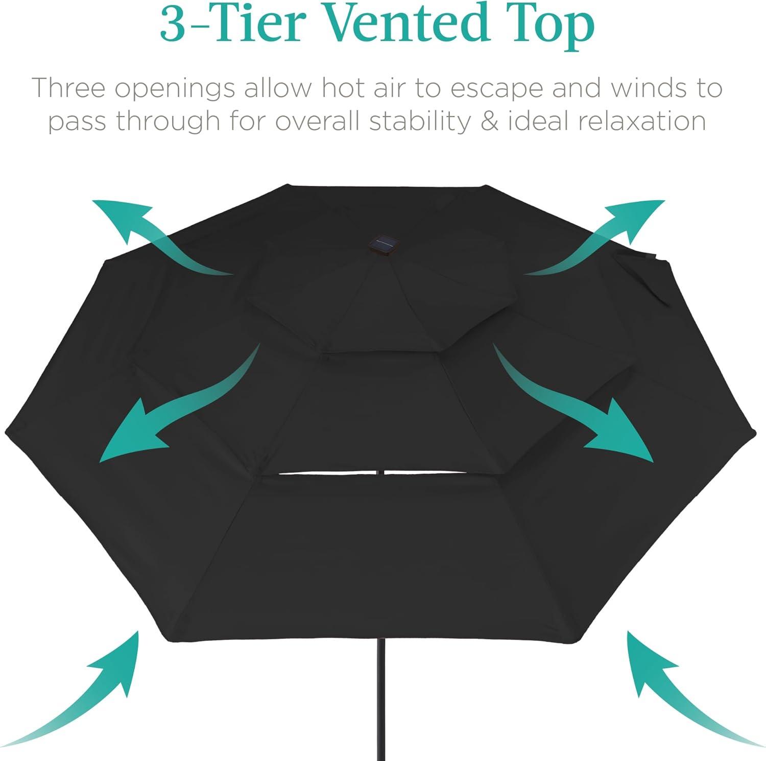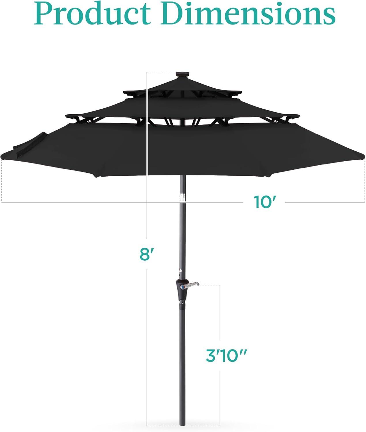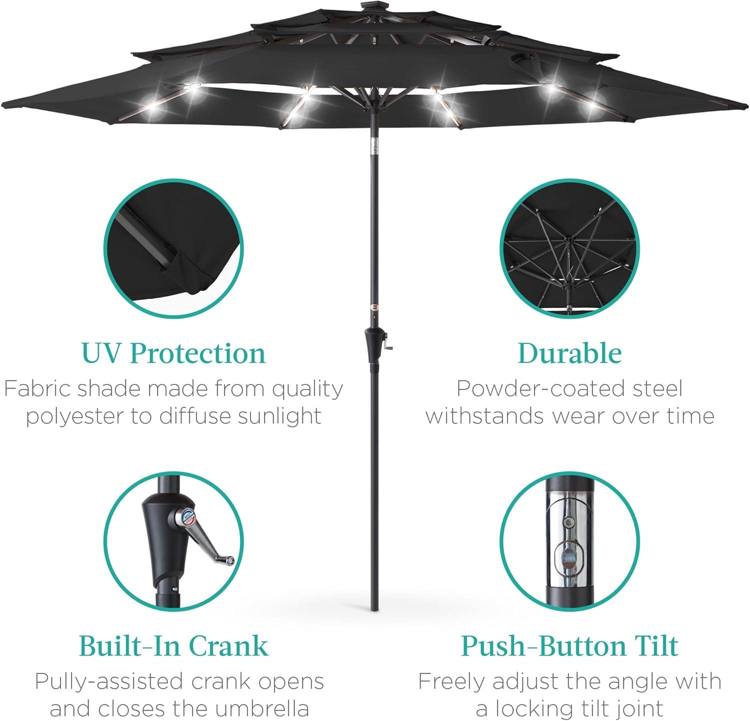 Best Choice Products 10ft 3-Tier Solar Patio Market Umbrella, Outdoor Sun Shade for Backyard, Deck, Poolside, Table w/Woodgrain Pattern, LED Lights, Tilt Adjustment – Sky Blue(Black)