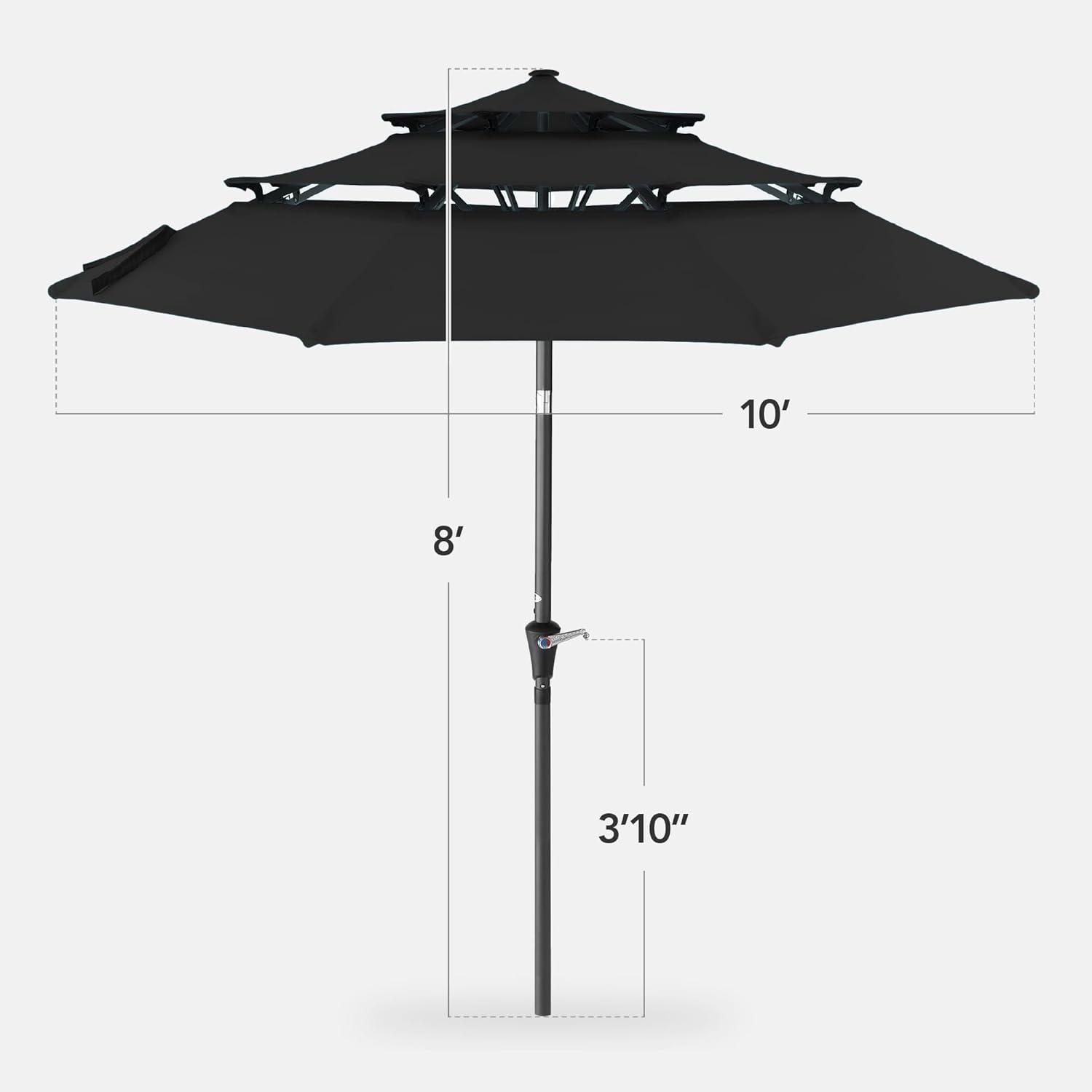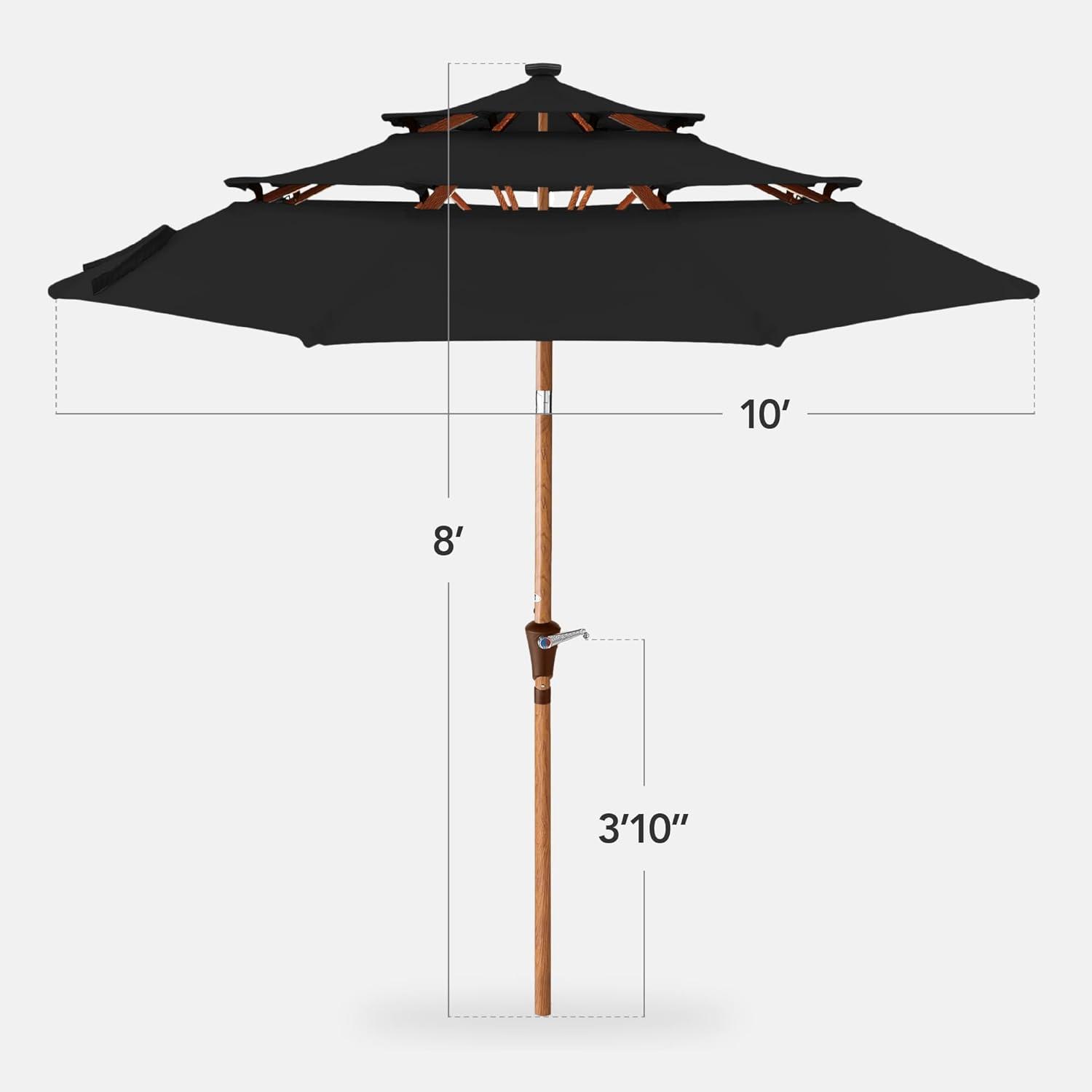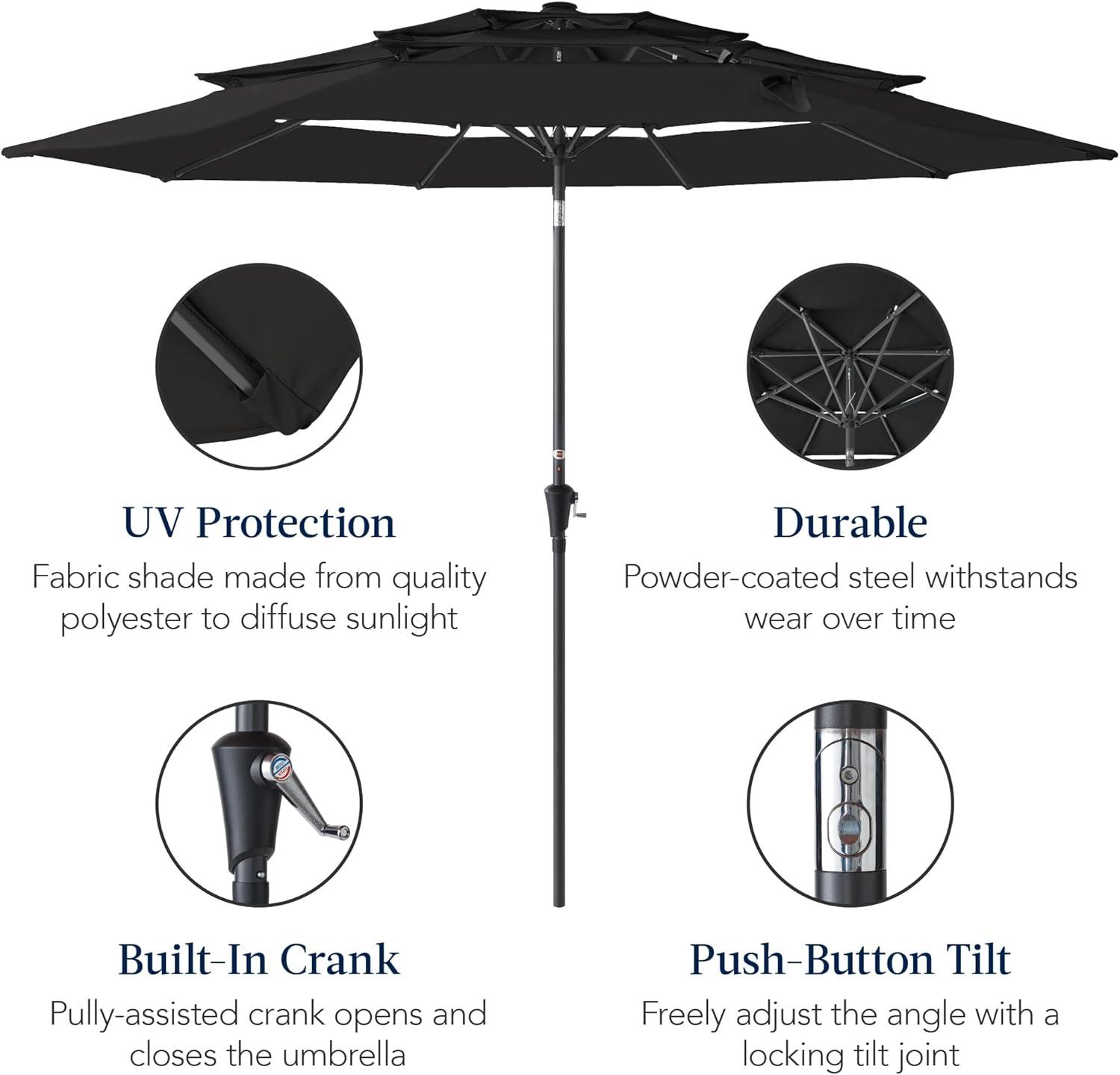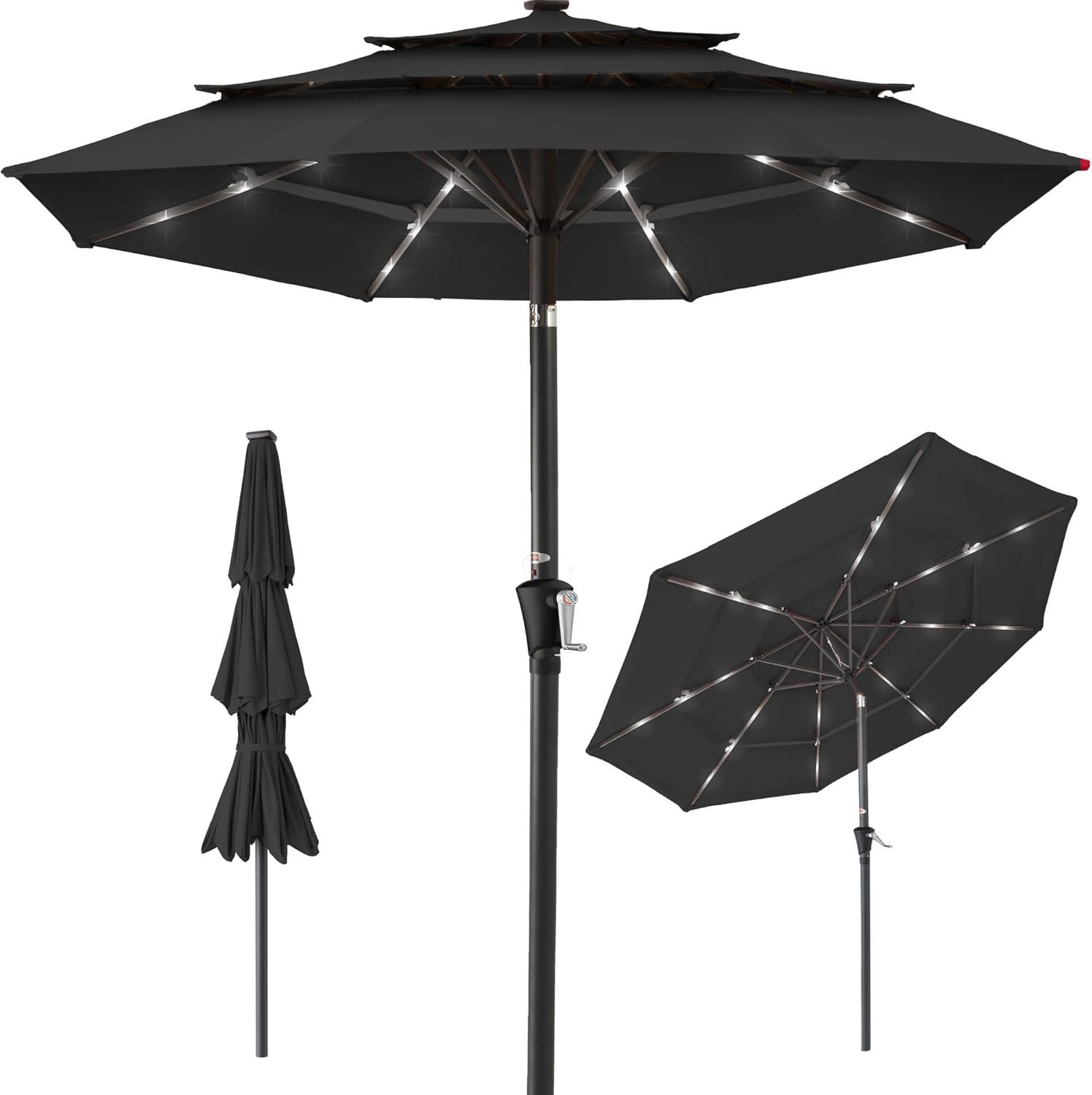 Best Choice Products 10ft 3-Tier Solar Patio Market Umbrella, Outdoor Sun Shade for Backyard, Deck, Poolside, Table w/Woodgrain Pattern, LED Lights, Tilt Adjustment – Sky Blue(Black)