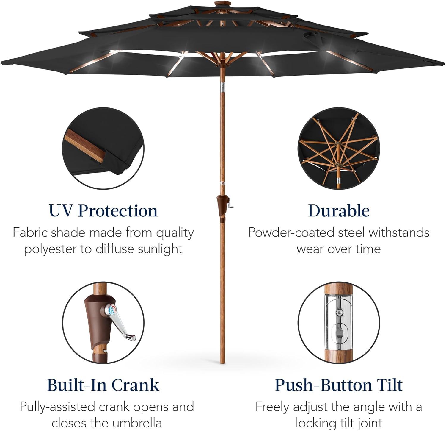 Best Choice Products 10ft 3-Tier Solar Patio Market Umbrella, Outdoor Sun Shade for Backyard, Deck, Poolside, Table w/Woodgrain Pattern, LED Lights, Tilt Adjustment - Sky Blue(Black)