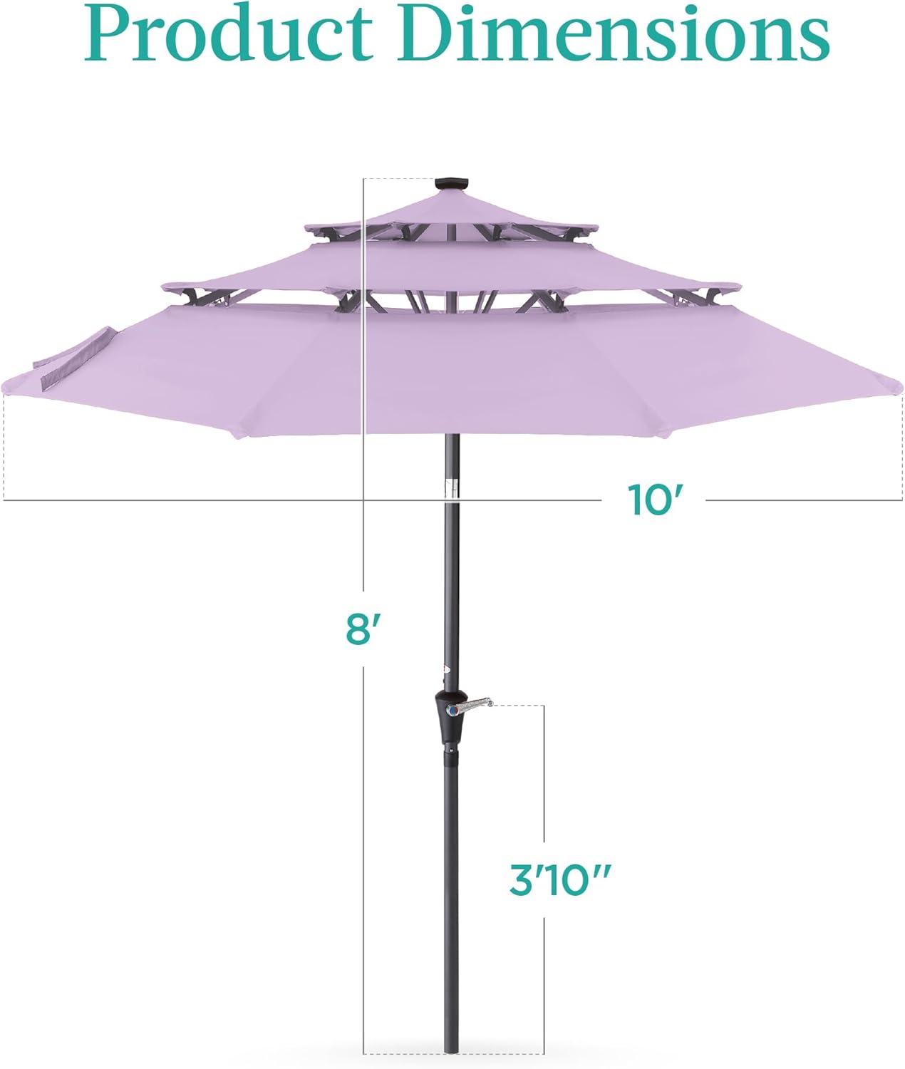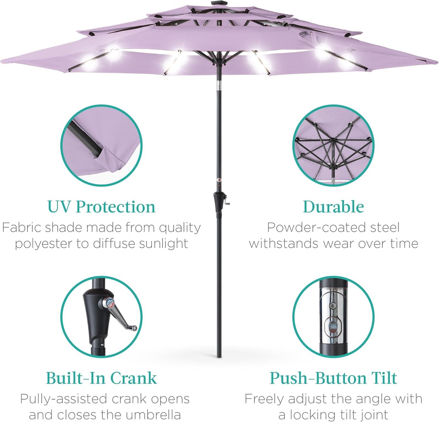 Best Choice Products 10ft 3-Tier Solar Patio Market Umbrella, Outdoor Sun Shade for Backyard, Deck, Poolside, Table w/Woodgrain Pattern, LED Lights, Tilt Adjustment – Sky Blue(Lavender)