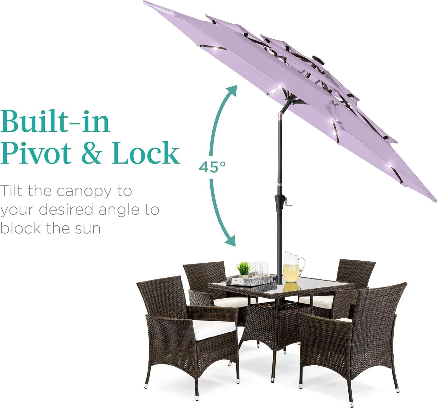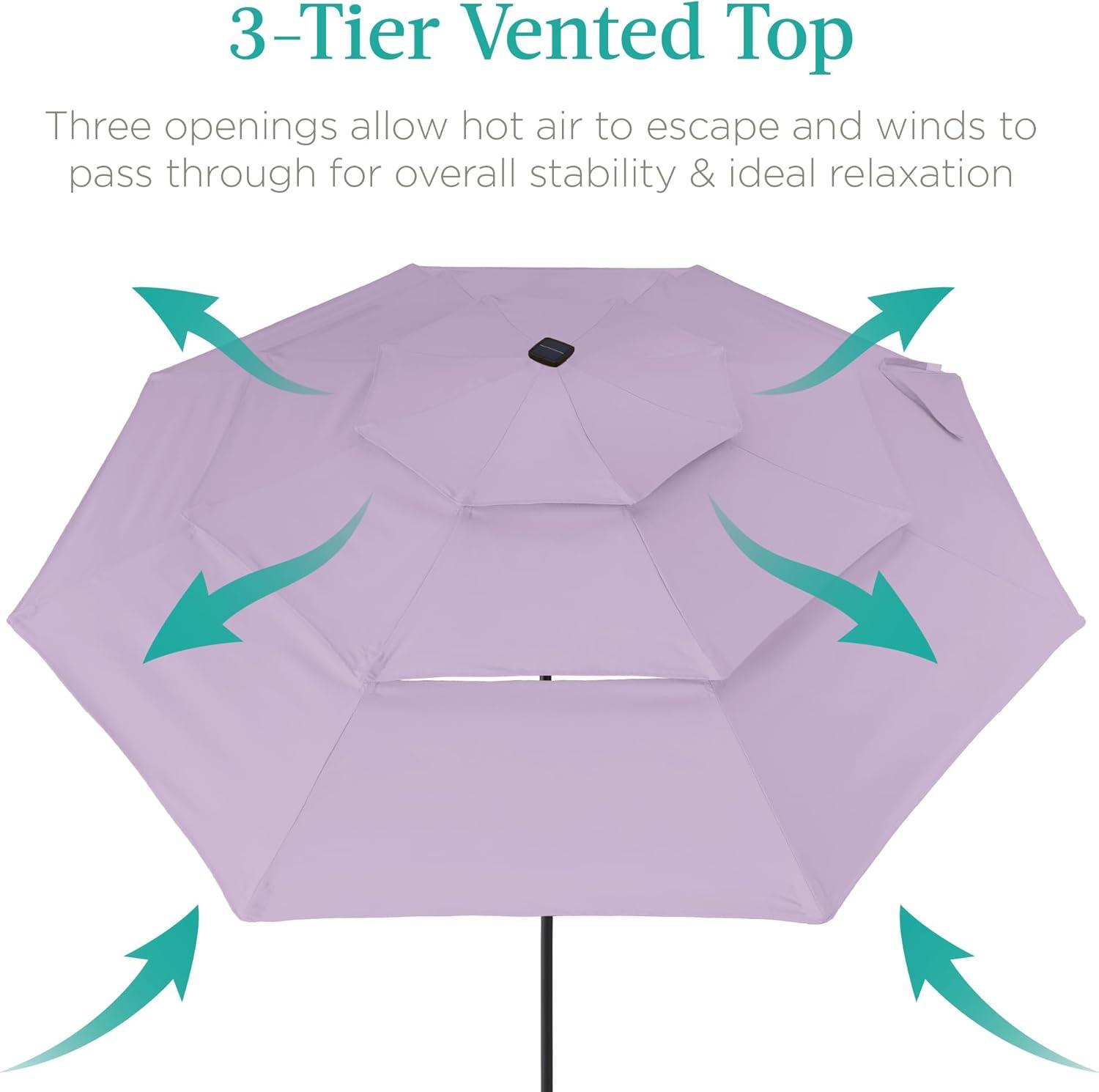Best Choice Products 10ft 3-Tier Solar Patio Market Umbrella, Outdoor Sun Shade for Backyard, Deck, Poolside, Table w/Woodgrain Pattern, LED Lights, Tilt Adjustment - Sky Blue(Lavender)