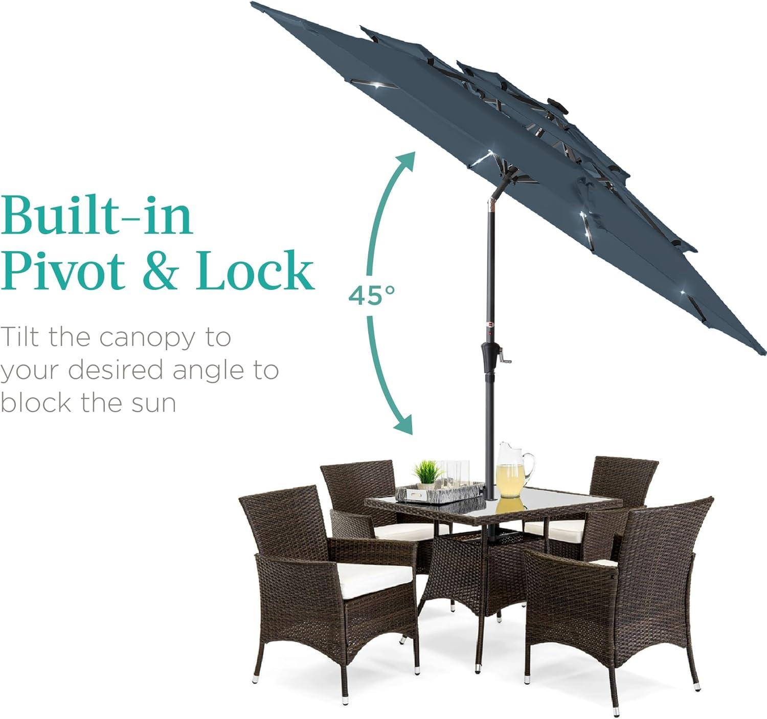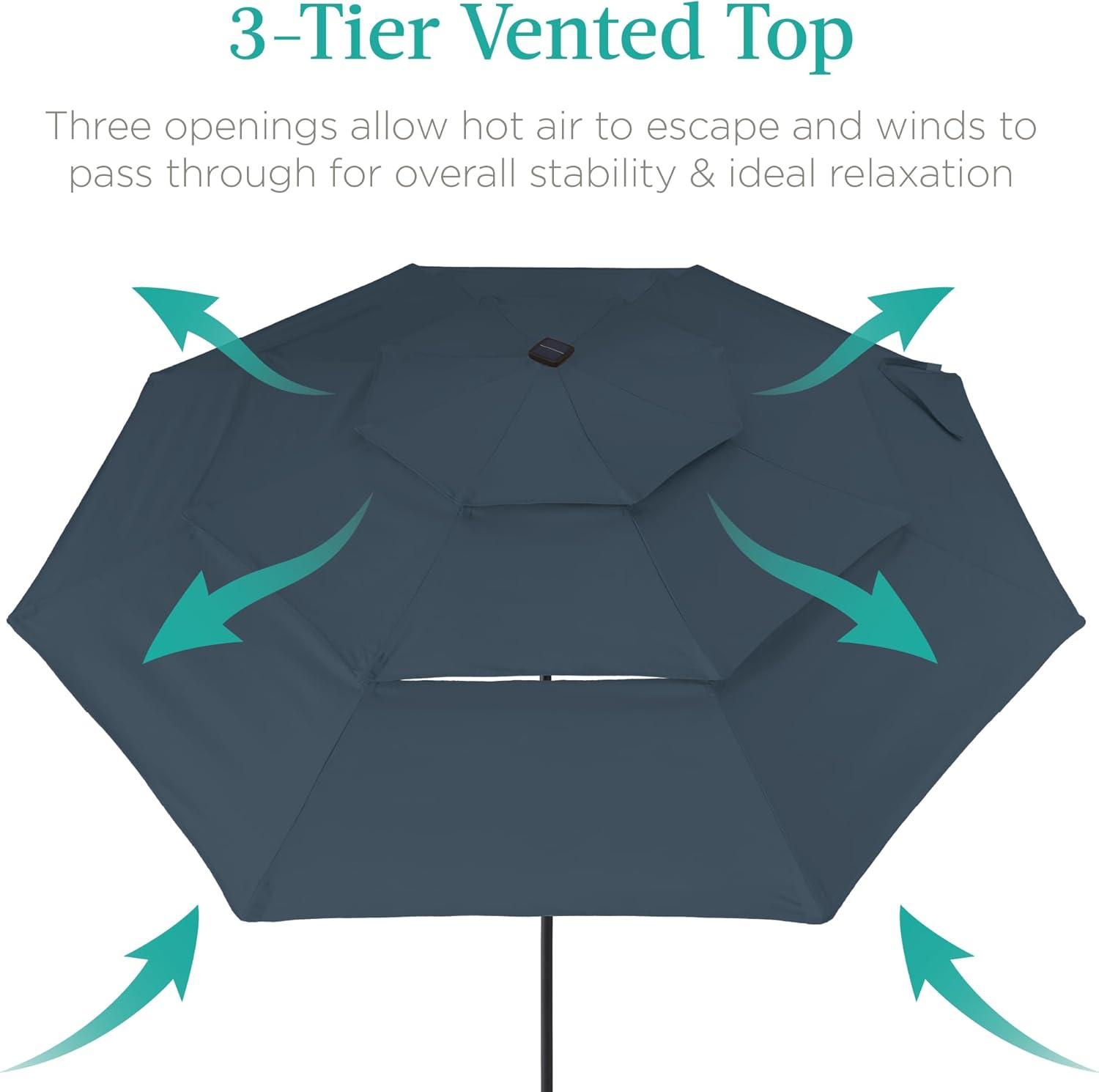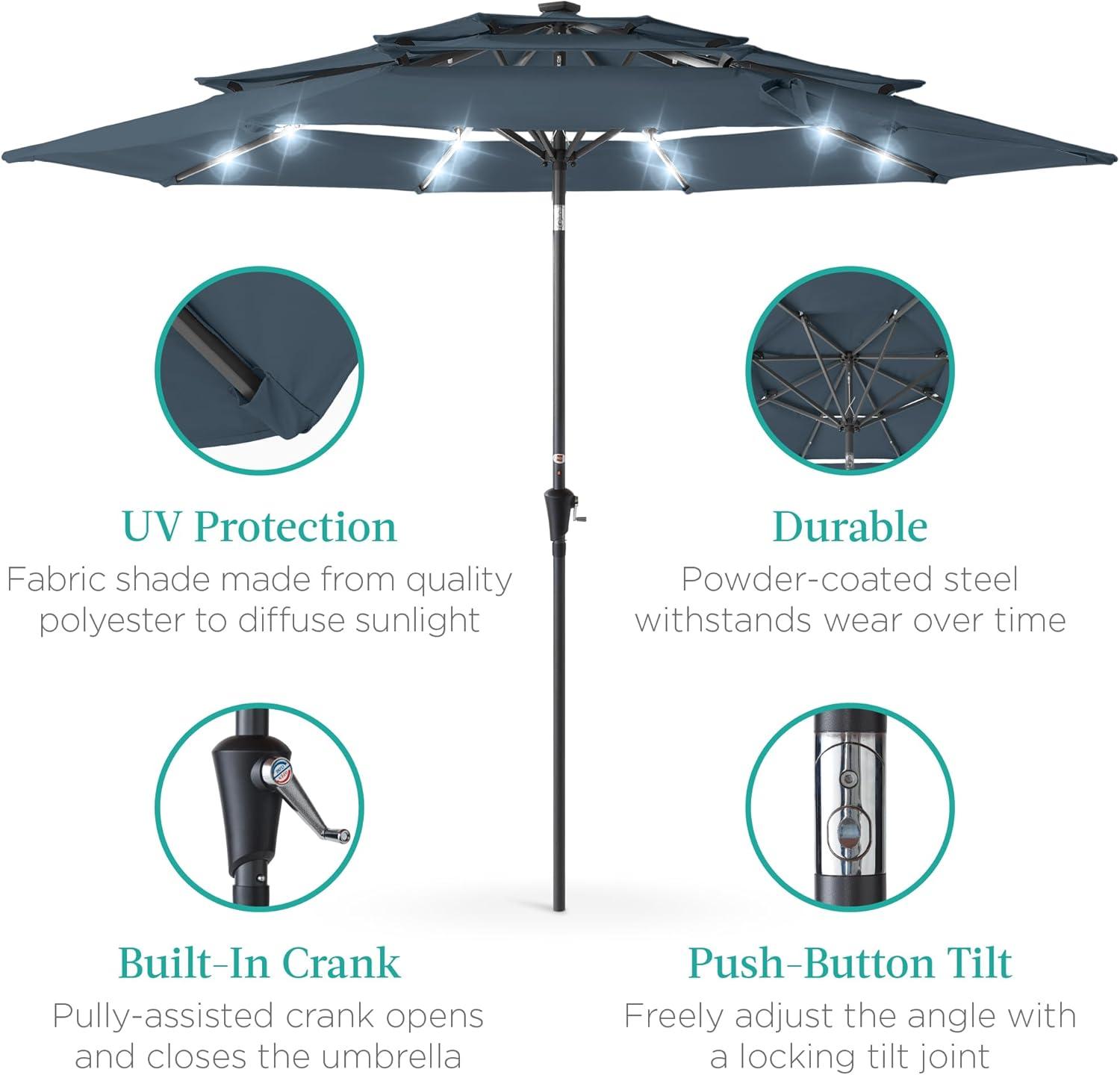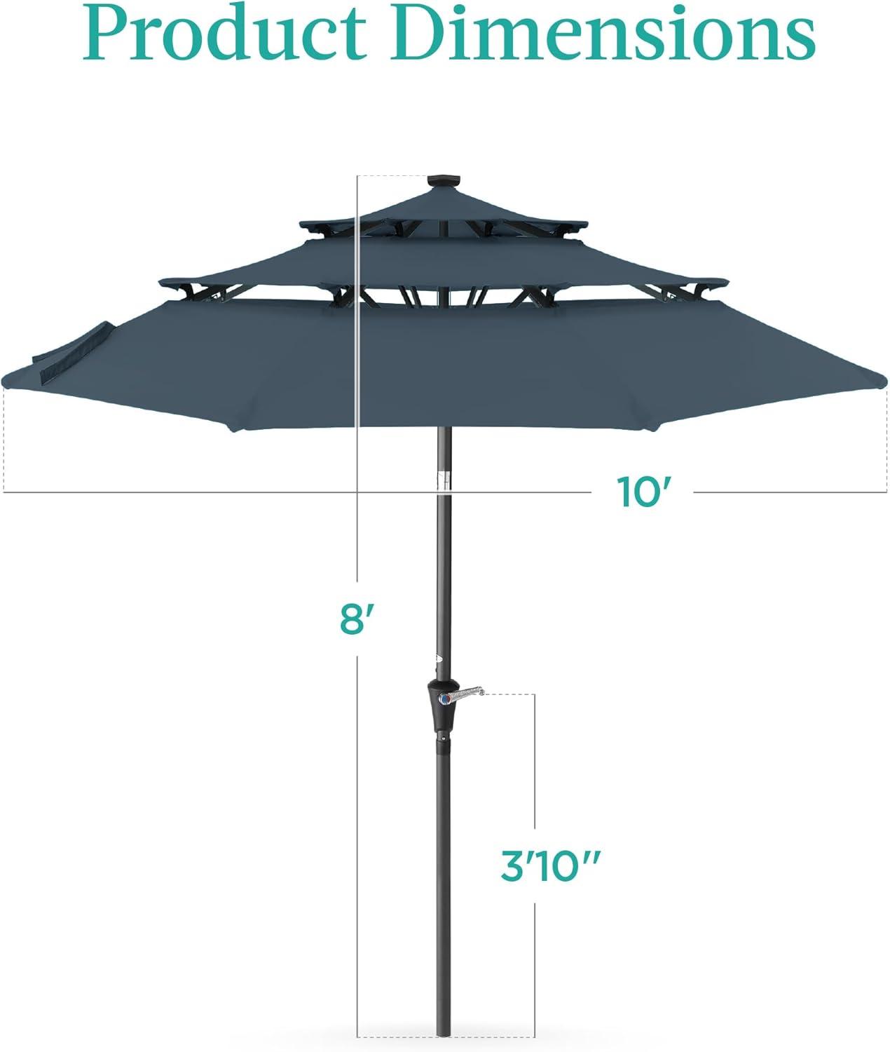 Best Choice Products 10ft 3-Tier Solar Patio Market Umbrella, Outdoor Sun Shade for Backyard, Deck, Poolside, Table w/Woodgrain Pattern, LED Lights, Tilt Adjustment - Sky Blue(Slate Blue)