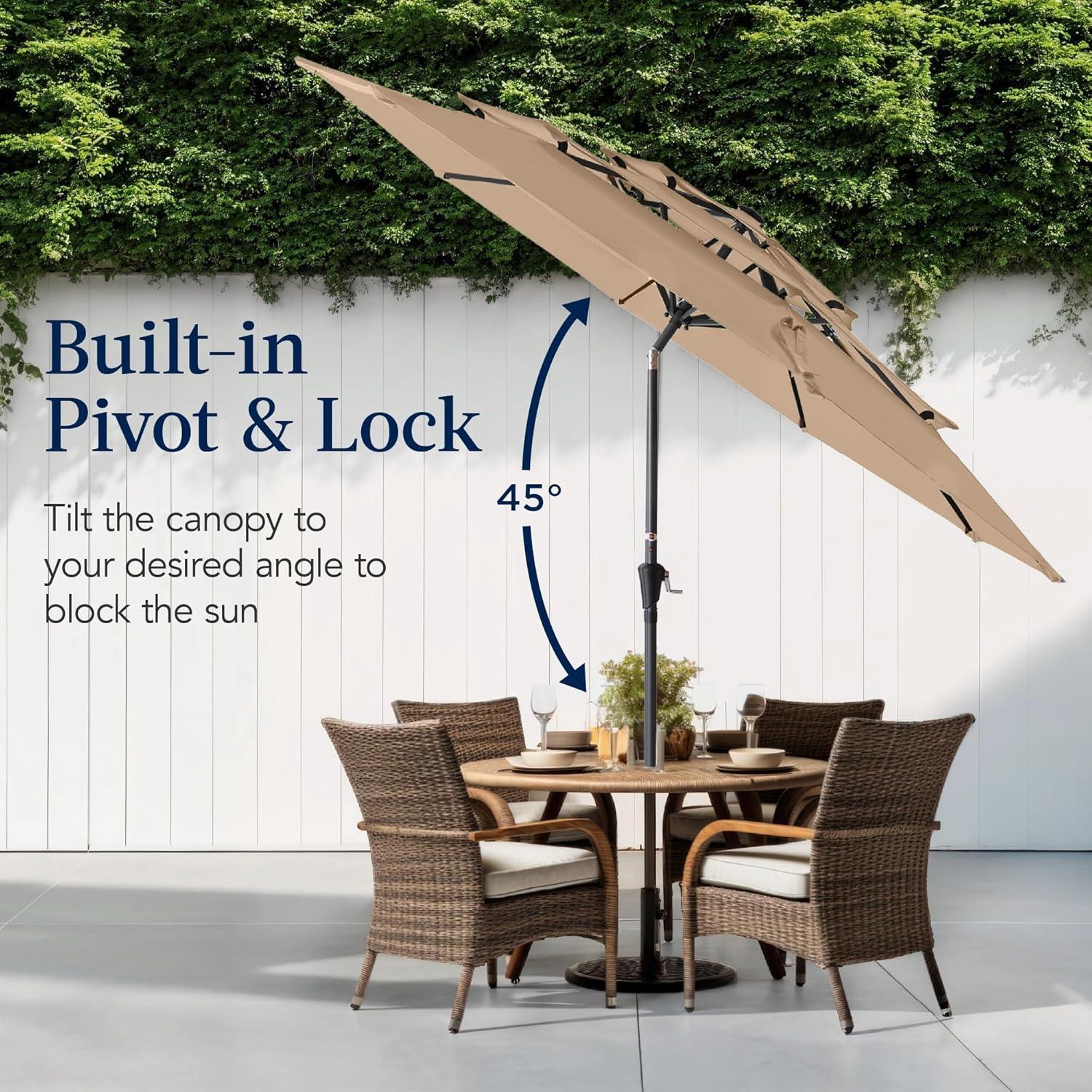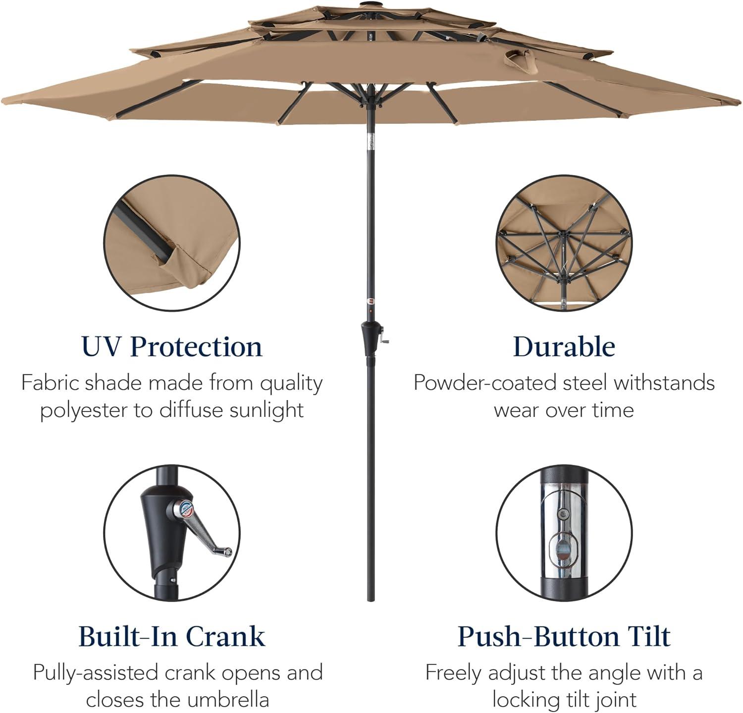 Best Choice Products 10ft 3-Tier Solar Patio Market Umbrella, Outdoor Sun Shade for Backyard, Deck, Poolside, Table w/Woodgrain Pattern, LED Lights, Tilt Adjustment - Sky Blue(Tan)
