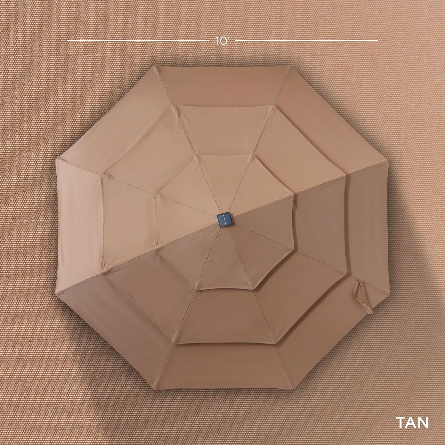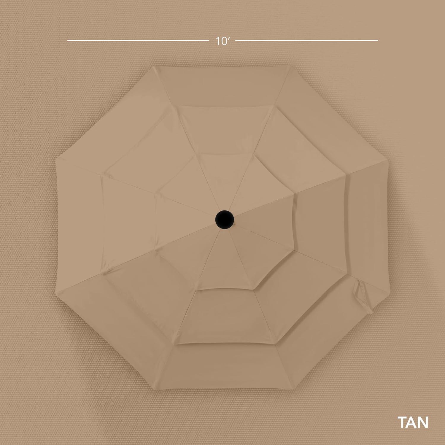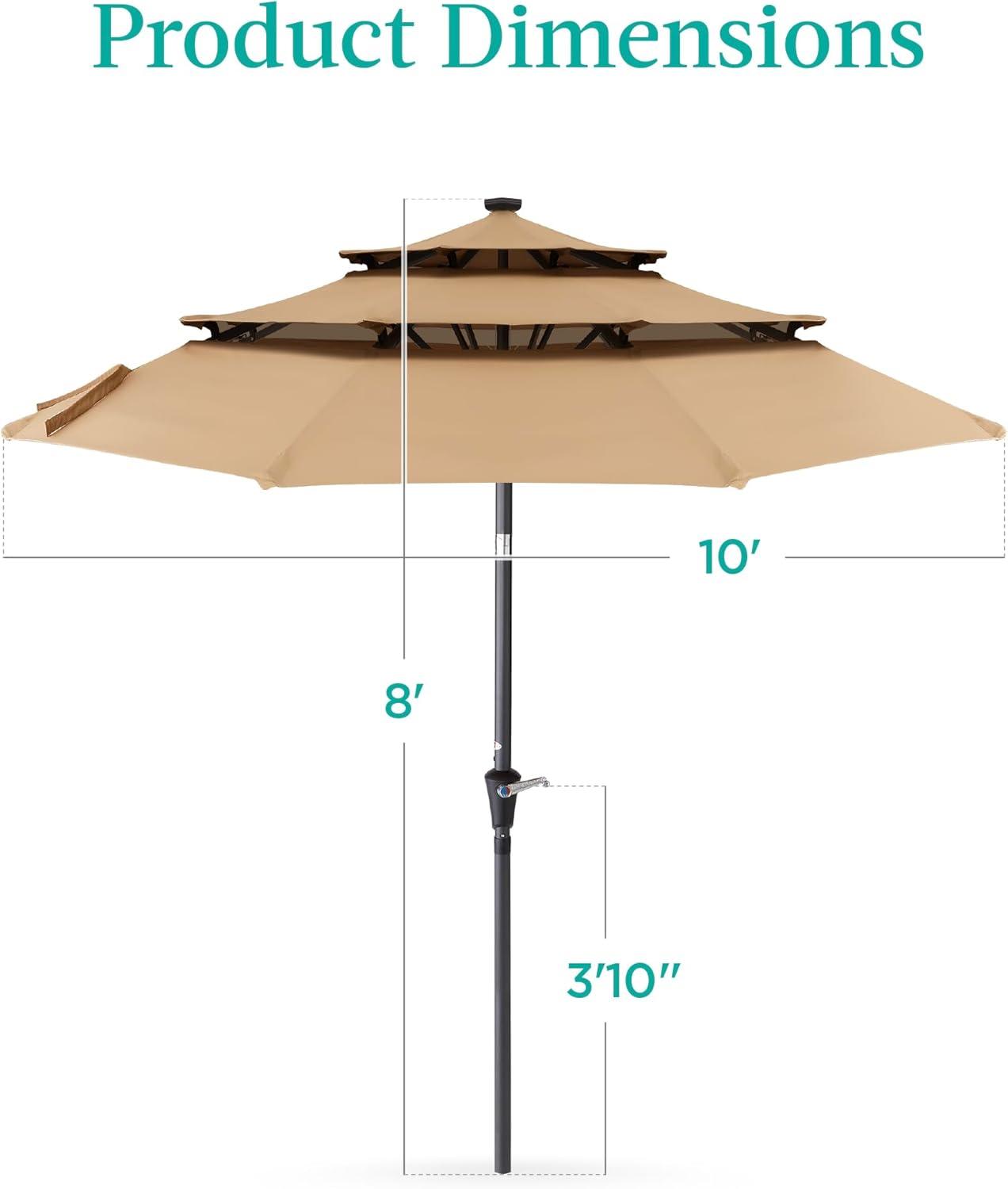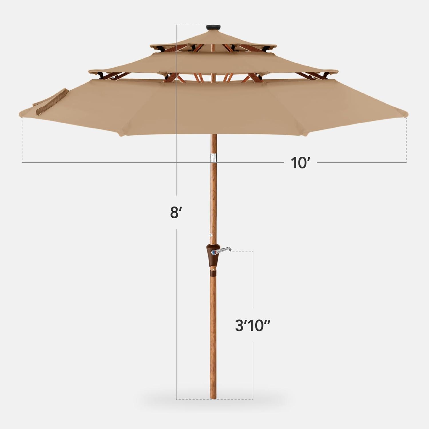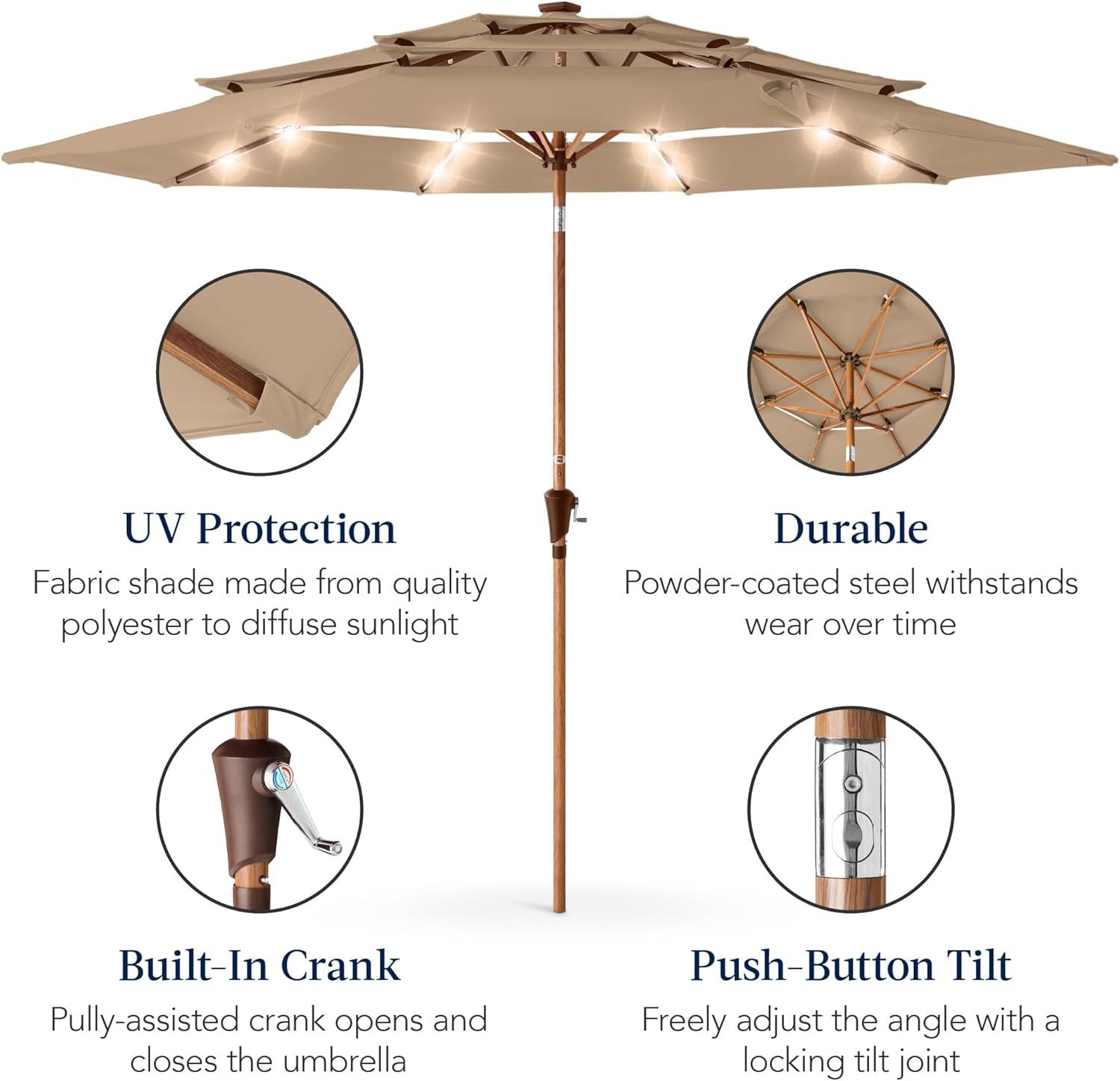 Best Choice Products 10ft 3-Tier Solar Patio Market Umbrella, Outdoor Sun Shade for Backyard, Deck, Poolside, Table w/Woodgrain Pattern, LED Lights, Tilt Adjustment – Sky Blue(Tan)