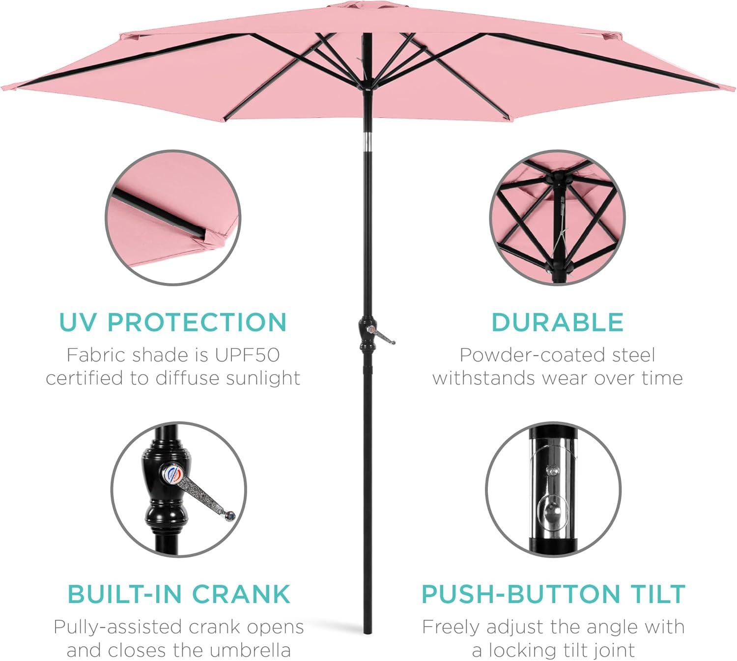 Best Choice Products 10ft Market Umbrella, Outdoor Sun Shade for Backyard, Deck, Poolside, Table w/Woodgrain Pattern, Easy Tilt & Crank - Fog Gray(Carnation)