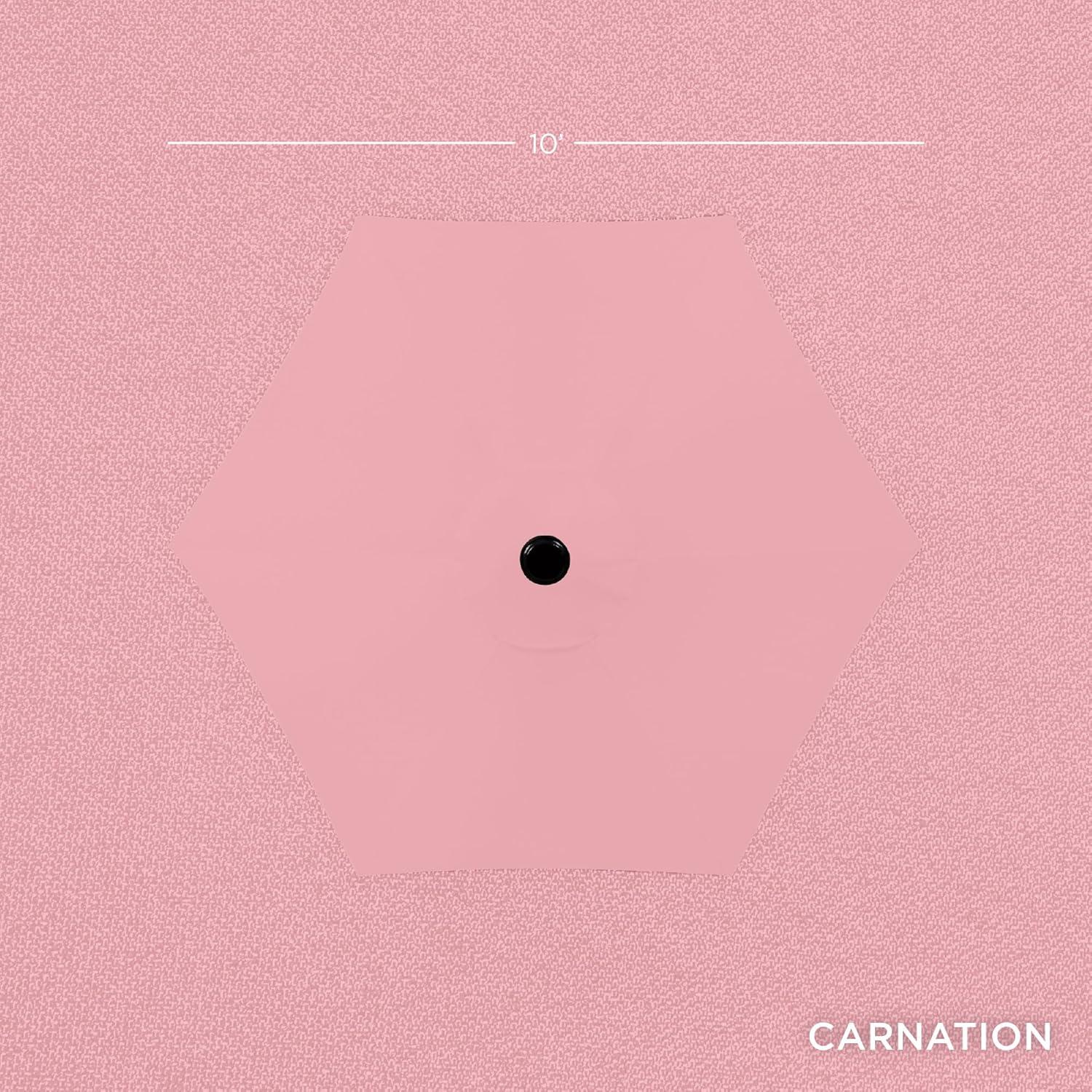 Best Choice Products 10ft Market Umbrella, Outdoor Sun Shade for Backyard, Deck, Poolside, Table w/Woodgrain Pattern, Easy Tilt & Crank – Fog Gray(Carnation)