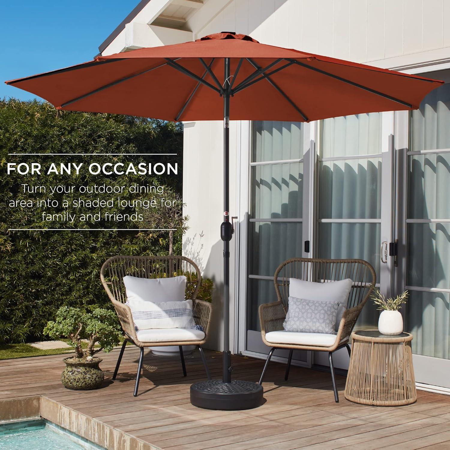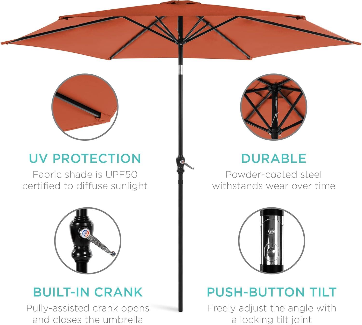 Best Choice Products 10ft Market Umbrella, Outdoor Sun Shade for Backyard, Deck, Poolside, Table w/Woodgrain Pattern, Easy Tilt & Crank - Fog Gray(Rust)