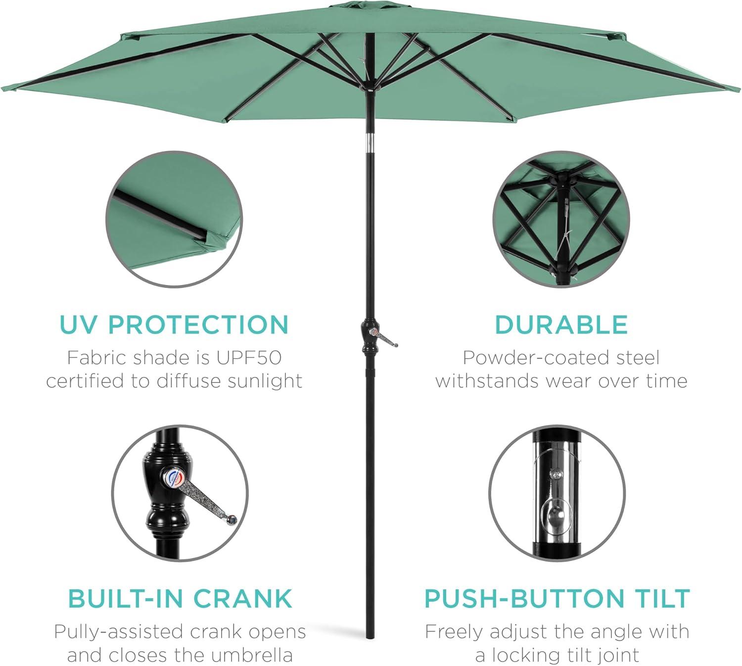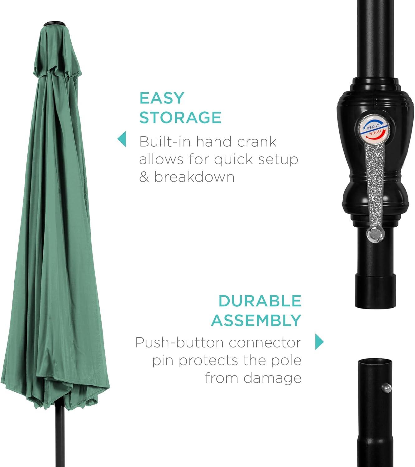 Best Choice Products 10ft Market Umbrella, Outdoor Sun Shade for Backyard, Deck, Poolside, Table w/Woodgrain Pattern, Easy Tilt & Crank - Fog Gray(Seaglass)