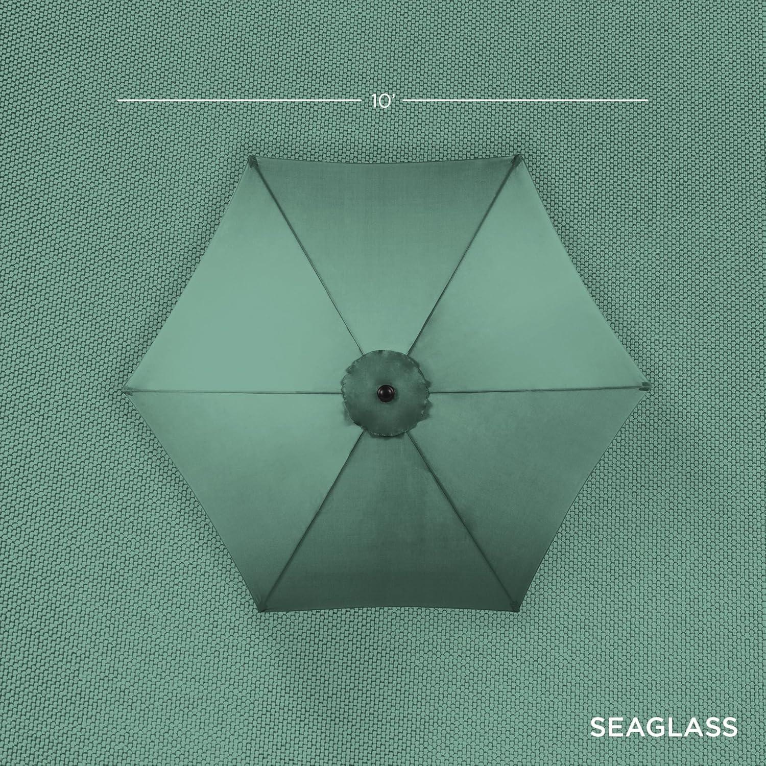 Best Choice Products 10ft Market Umbrella, Outdoor Sun Shade for Backyard, Deck, Poolside, Table w/Woodgrain Pattern, Easy Tilt & Crank – Fog Gray(Seaglass)