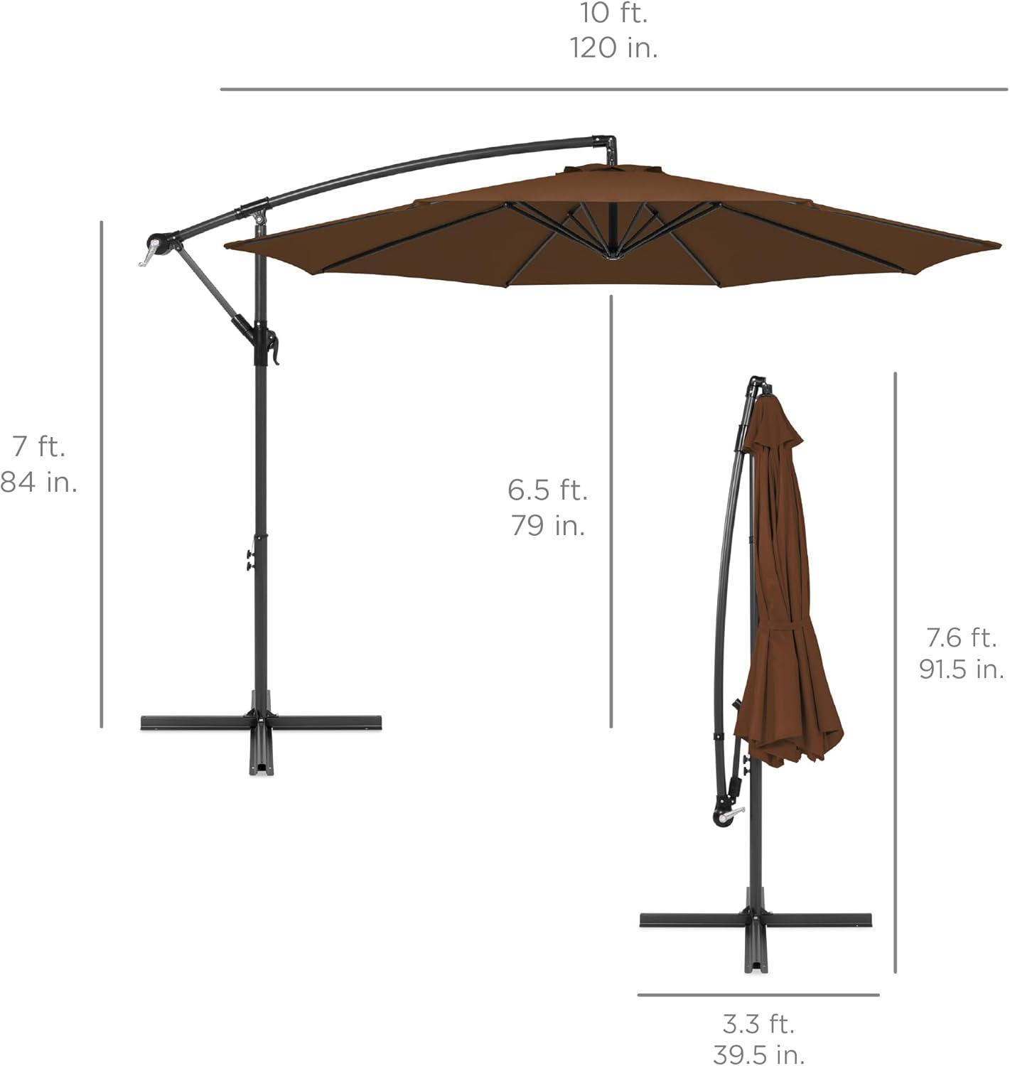 Best Choice Products 10ft Offset Hanging Market Patio Umbrella w/Easy Tilt Adjustment, Polyester Shade, 8 Ribs for Backyard, Poolside, Lawn and Garden(Brown)