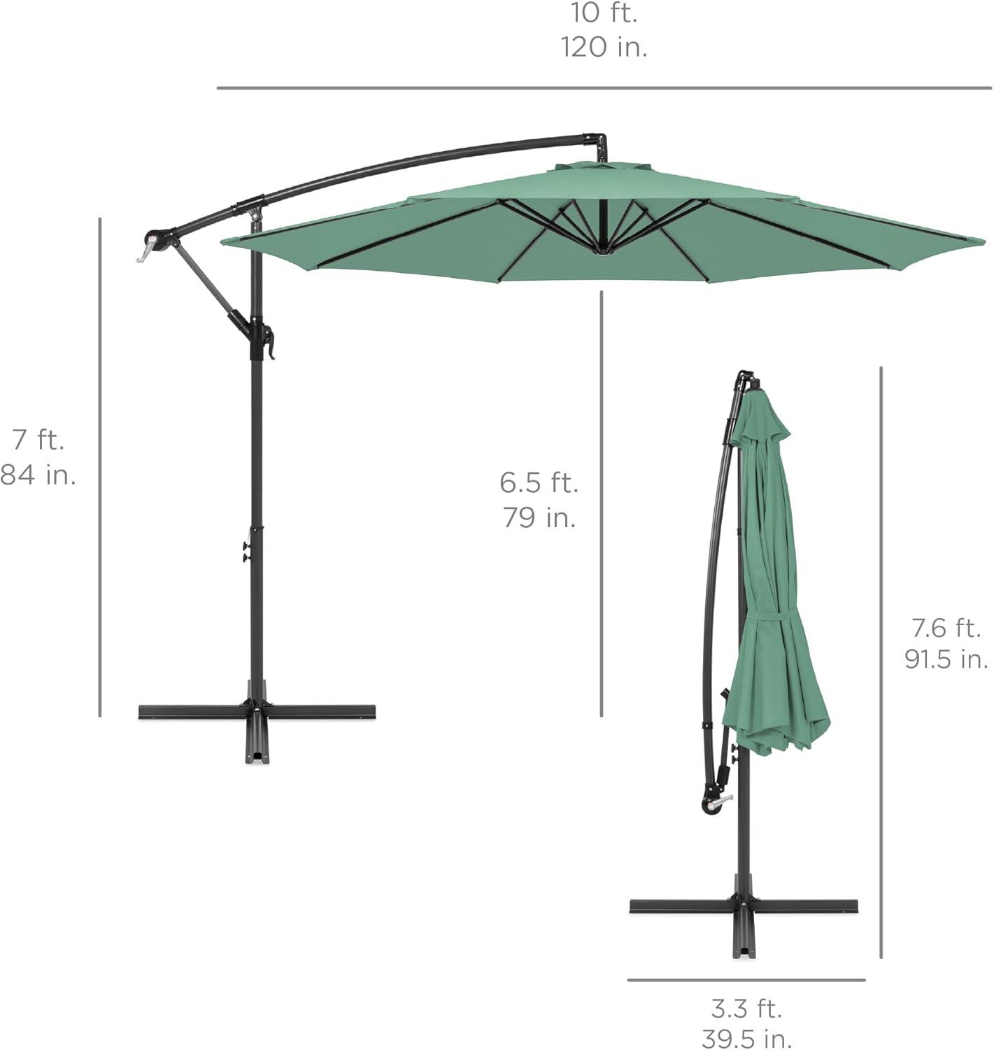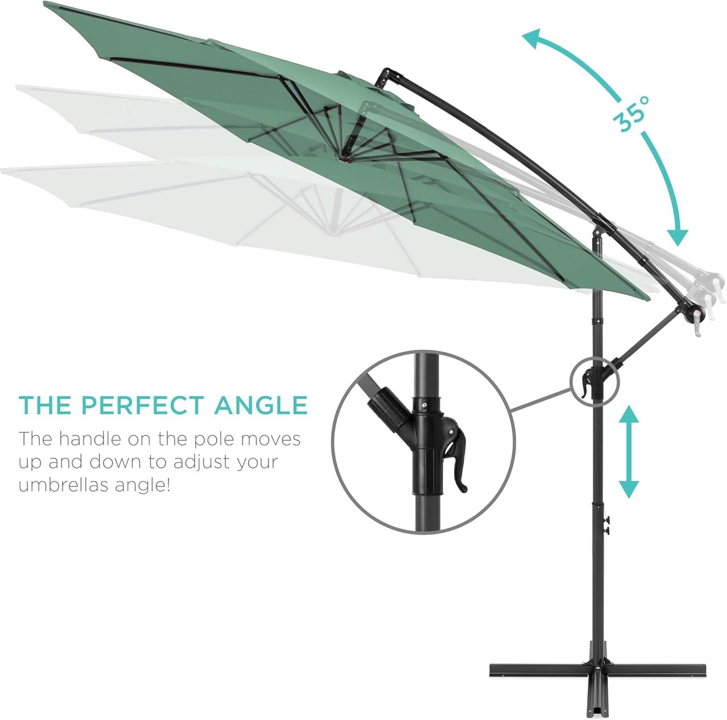 Best Choice Products 10ft Offset Hanging Market Patio Umbrella w/Easy Tilt Adjustment, Polyester Shade, 8 Ribs for Backyard, Poolside, Lawn and Garden(Seaglass)