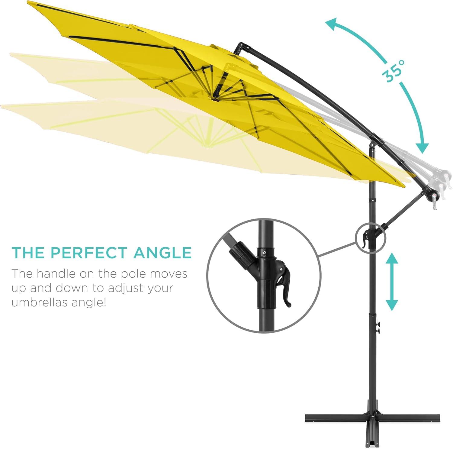 Best Choice Products 10ft Offset Hanging Market Patio Umbrella w/Easy Tilt Adjustment, Polyester Shade, 8 Ribs for Backyard, Poolside, Lawn and Garden(Yellow)