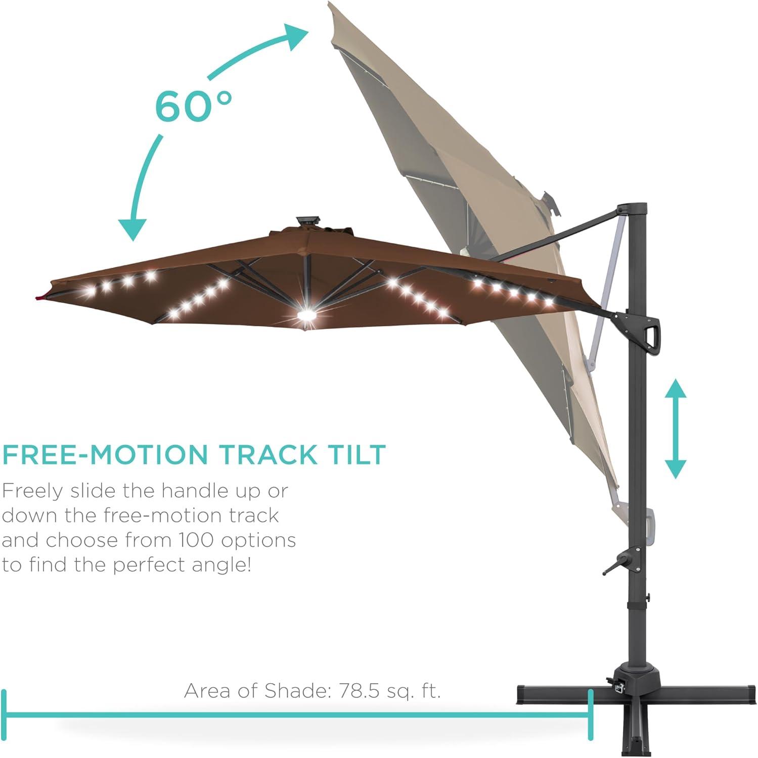 Best Choice Products 10ft Solar LED Cantilever Patio Umbrella, 360-Degree Rotation Hanging Offset Market Outdoor Sun Shade for Backyard, Deck, Poolside w/Lights, Easy Tilt, Cross Base(Brown)