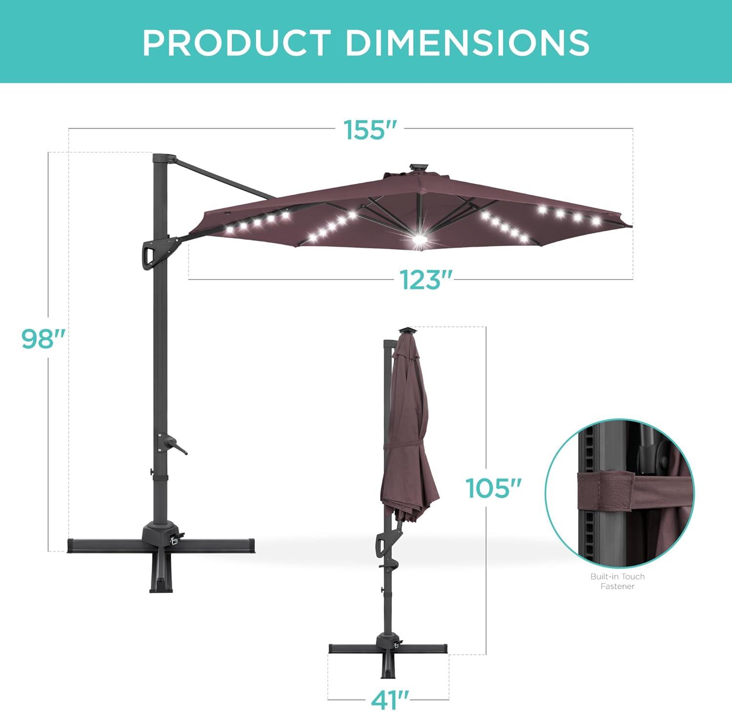 Best Choice Products 10ft Solar LED Cantilever Patio Umbrella, 360-Degree Rotation Hanging Offset Market Outdoor Sun Shade for Backyard, Deck, Poolside w/Lights, Easy Tilt, Cross Base(Deep Taupe)