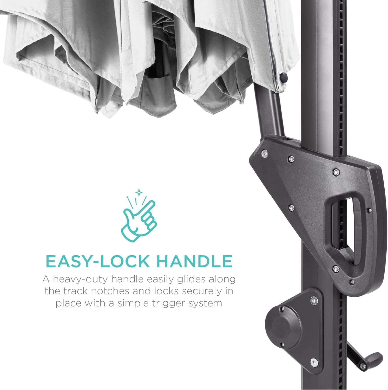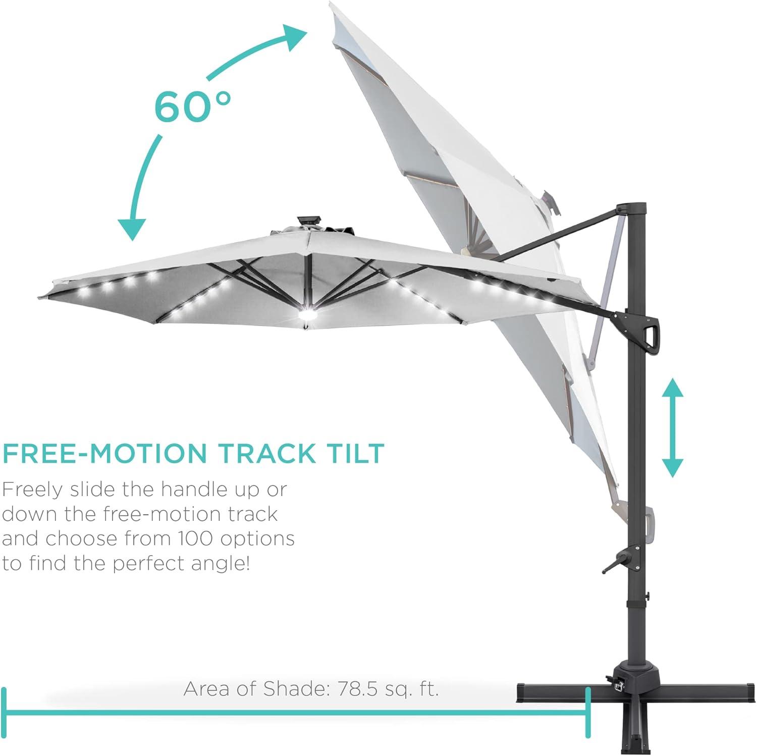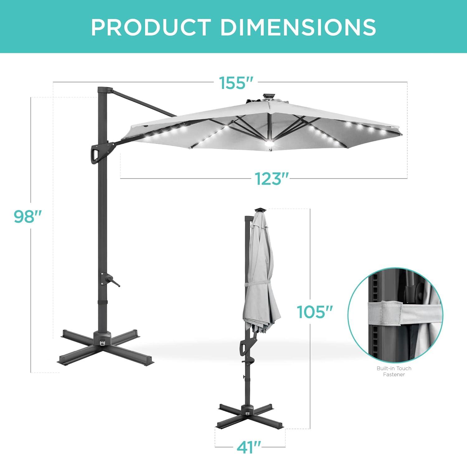 Best Choice Products 10ft Solar LED Cantilever Patio Umbrella, 360-Degree Rotation Hanging Offset Market Outdoor Sun Shade for Backyard, Deck, Poolside w/Lights, Easy Tilt, Cross Base(Gray)