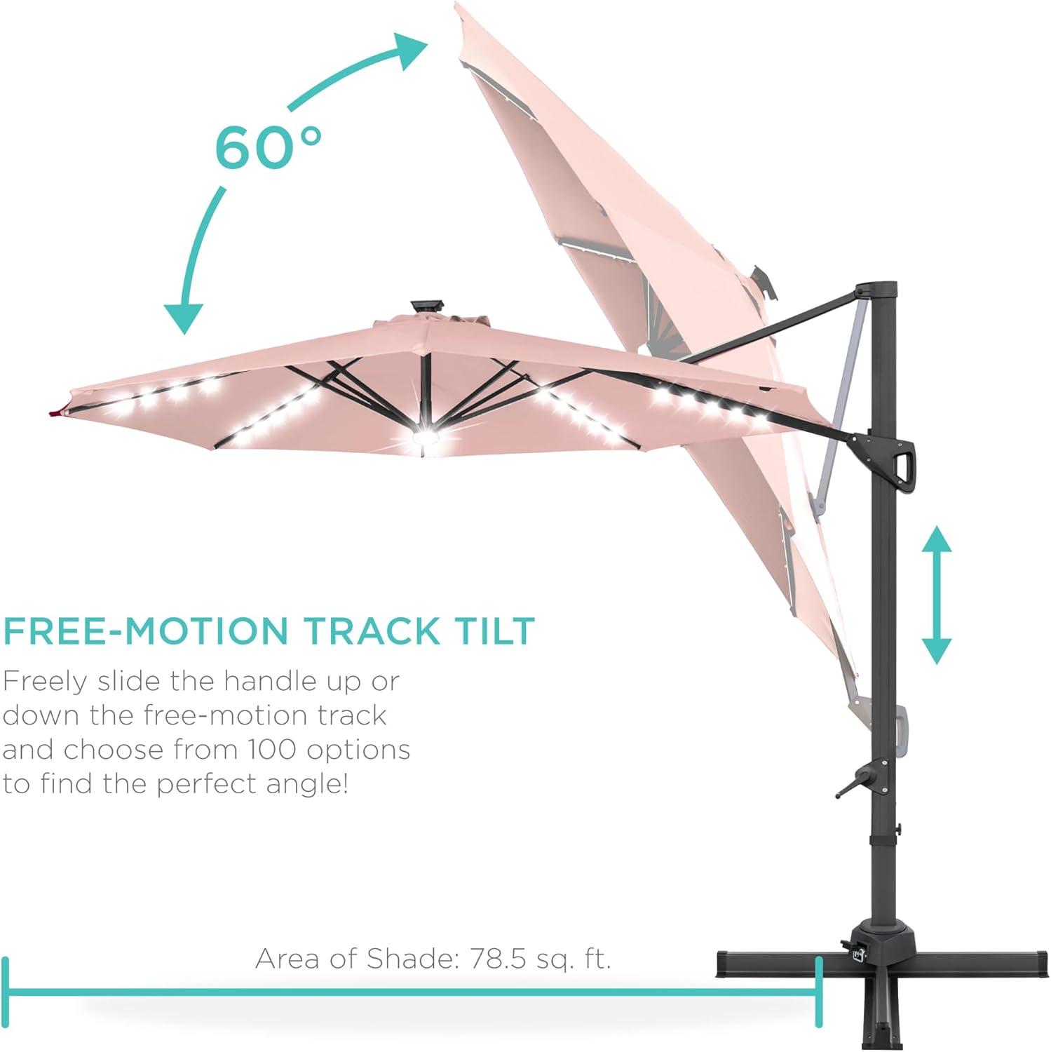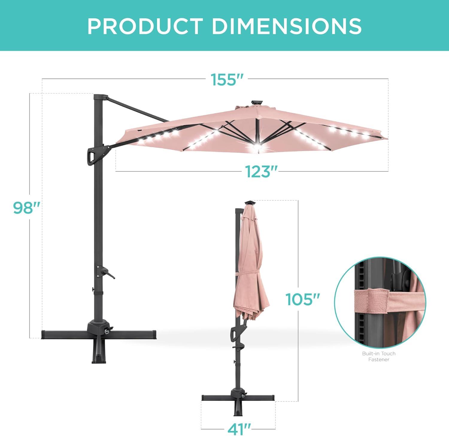 Best Choice Products 10ft Solar LED Cantilever Patio Umbrella, 360-Degree Rotation Hanging Offset Market Outdoor Sun Shade for Backyard, Deck, Poolside w/Lights, Easy Tilt, Cross Base(Rose Quartz)
