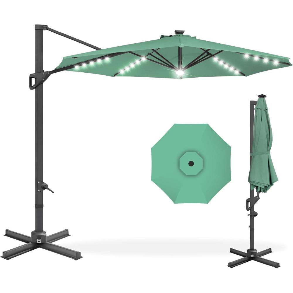 imageBest Choice Products 10ft Solar LED Cantilever Patio Umbrella 360Degree Rotation Hanging Offset Market Outdoor Sun Shade for Backyard Deck Poolside wLights Easy Tilt Cross BaseSeaglass
