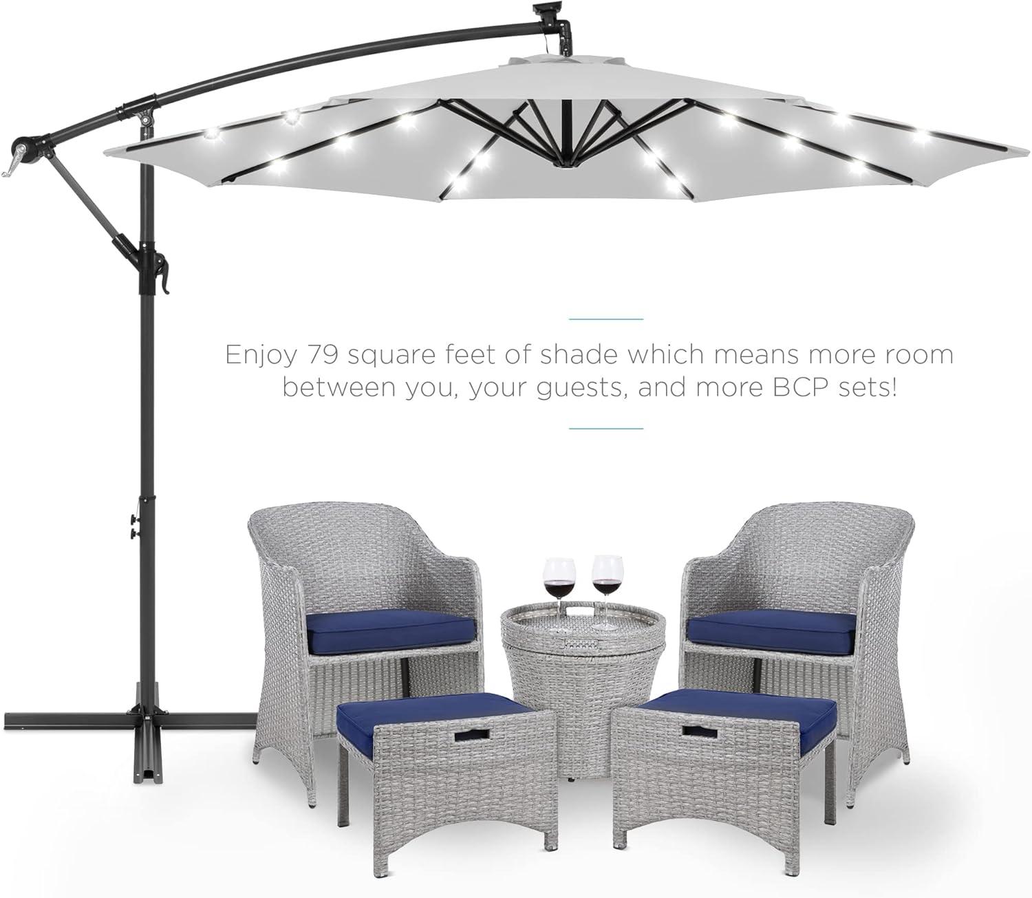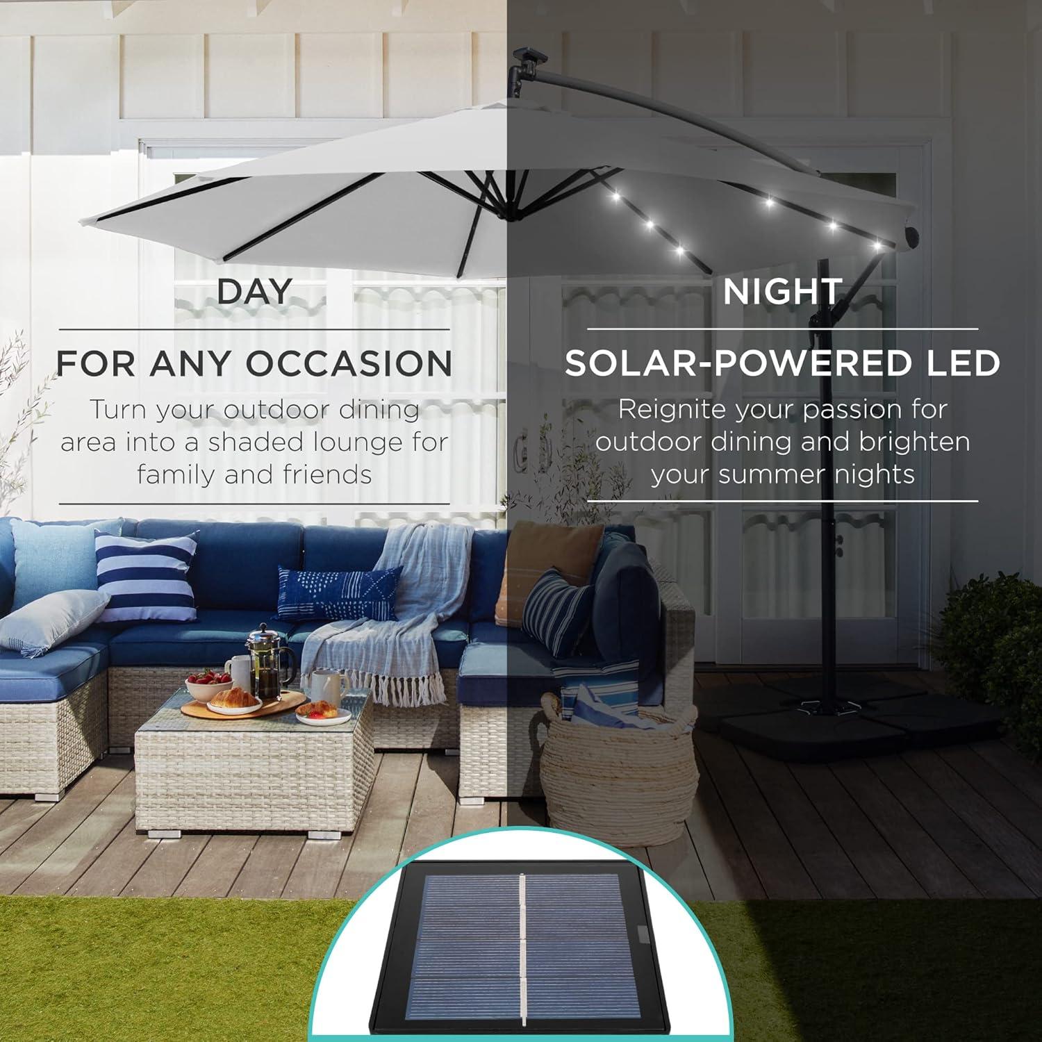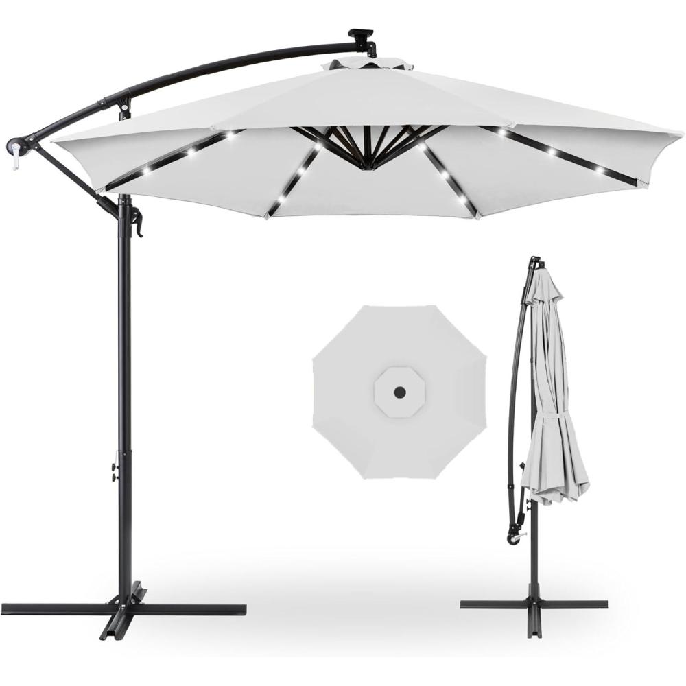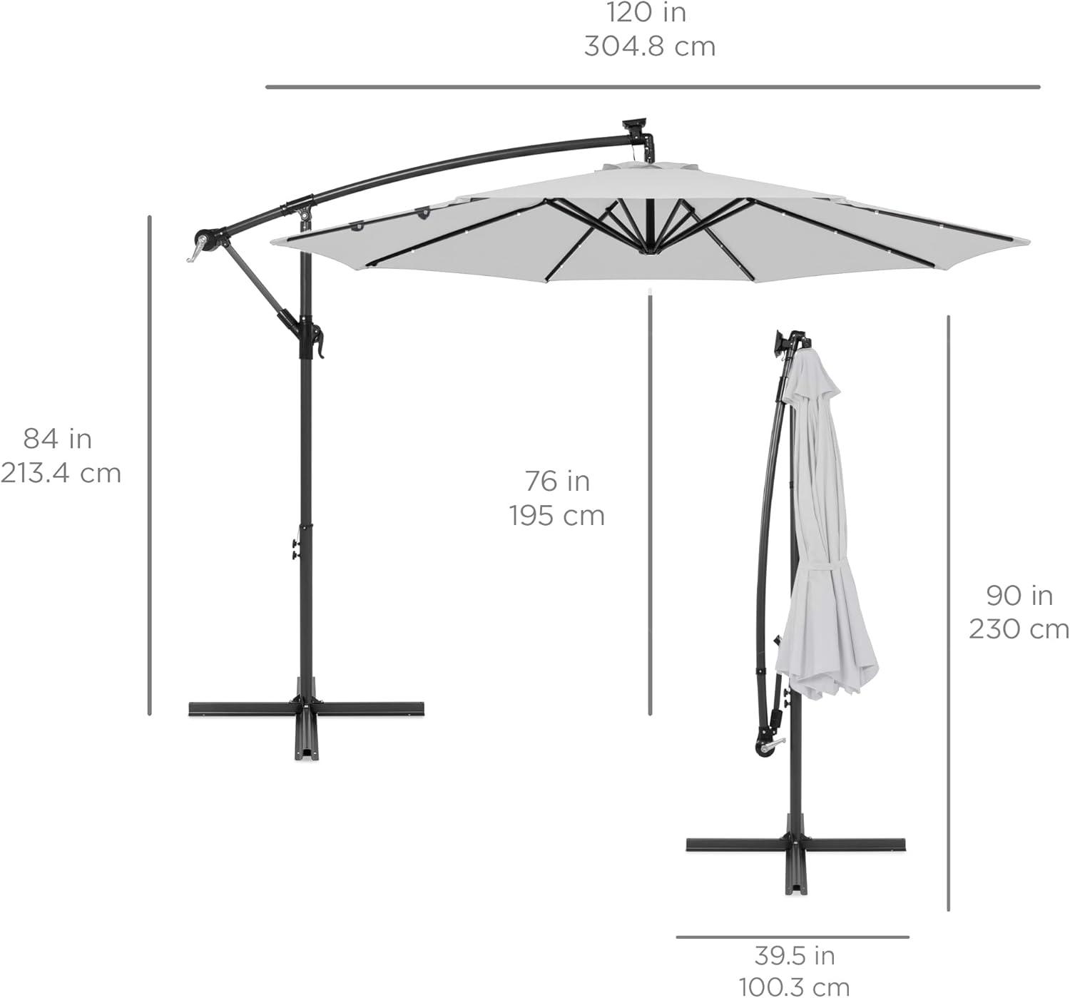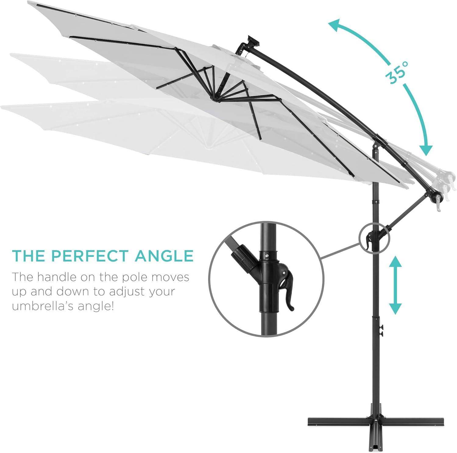 Best Choice Products 10ft Solar LED Offset Hanging Market Patio Umbrella for Backyard, Poolside, Lawn and Garden w/Easy Tilt Adjustment, Polyester Shade, 8 Ribs – Tan(Gray)