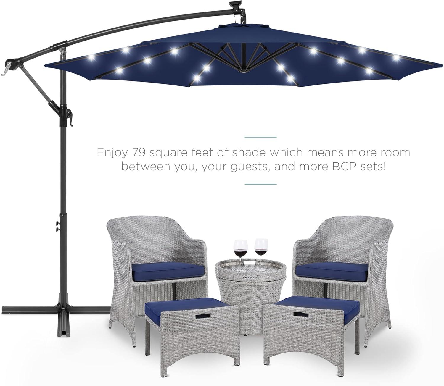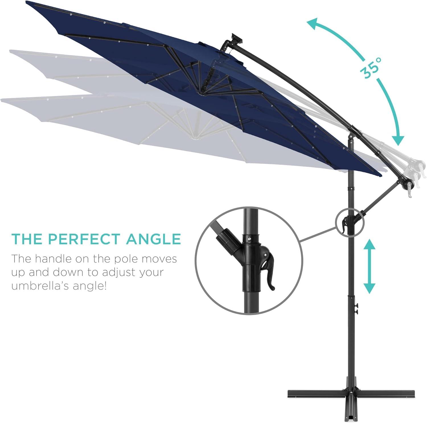 Best Choice Products 10ft Solar LED Offset Hanging Market Patio Umbrella for Backyard, Poolside, Lawn and Garden w/Easy Tilt Adjustment, Polyester Shade, 8 Ribs – Tan(Navy Blue)