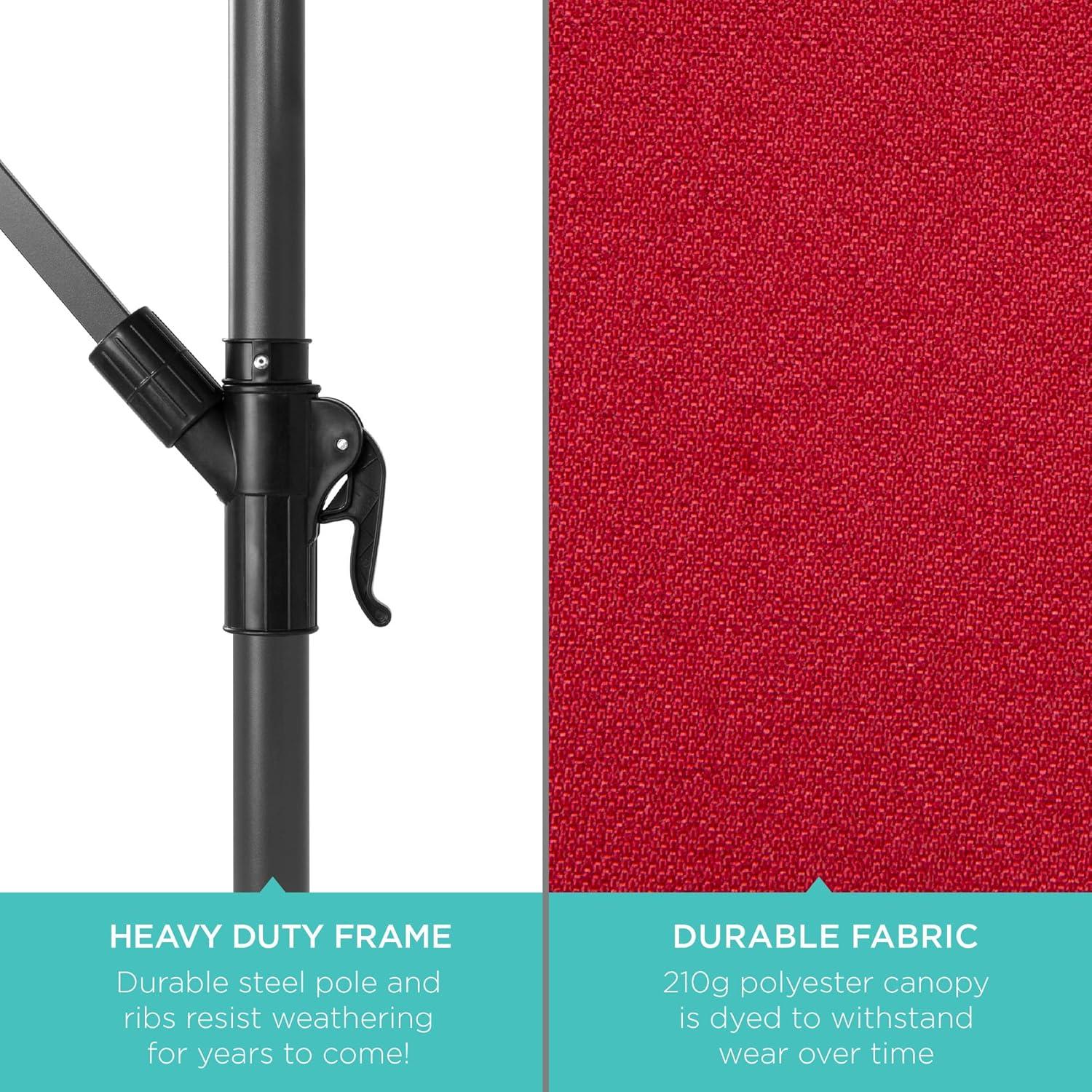 Best Choice Products 10ft Solar LED Offset Hanging Market Patio Umbrella for Backyard, Poolside, Lawn and Garden w/Easy Tilt Adjustment, Polyester Shade, 8 Ribs – Tan(Red)