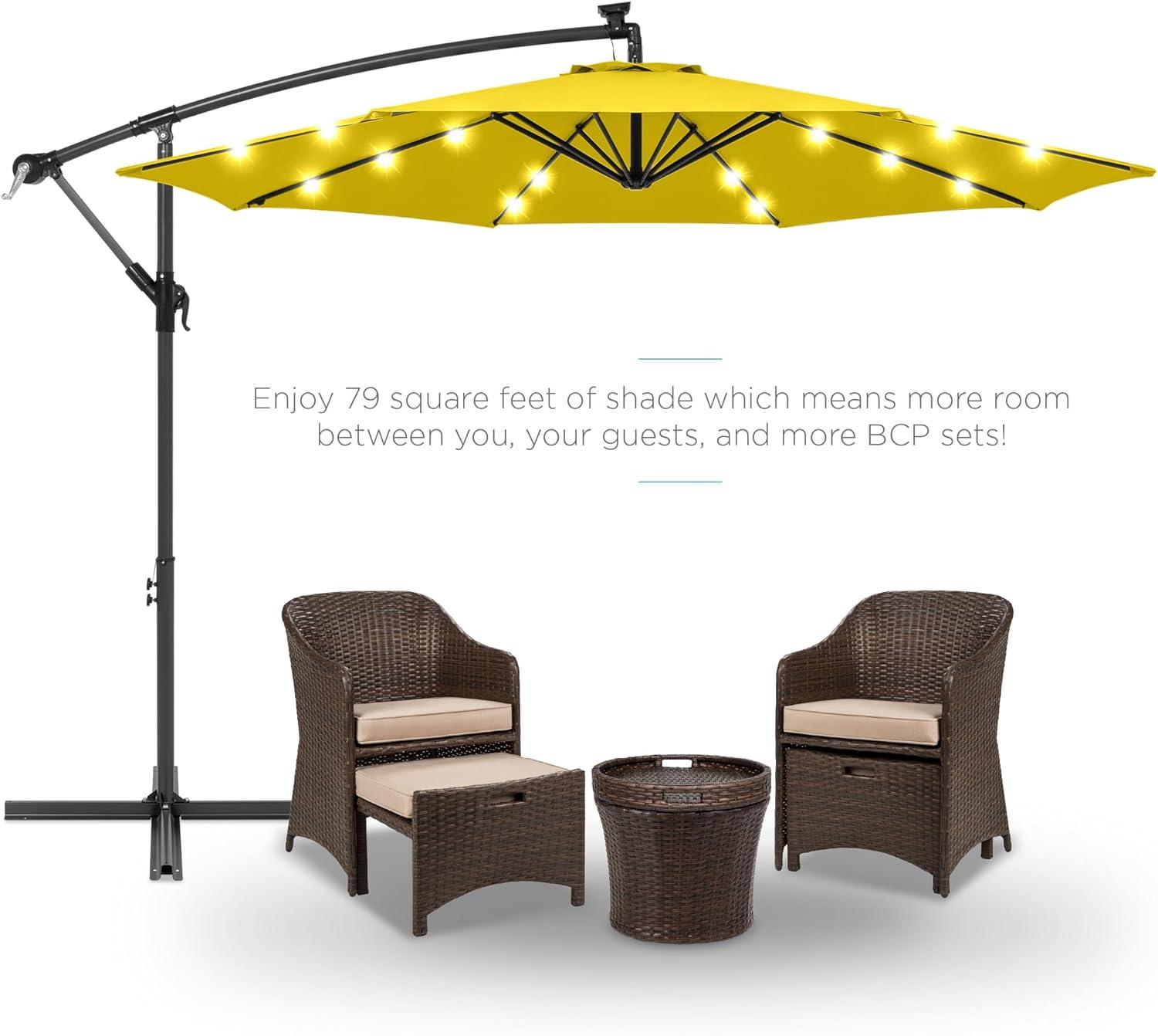 Best Choice Products 10ft Solar LED Offset Hanging Market Patio Umbrella for Backyard, Poolside, Lawn and Garden w/Easy Tilt Adjustment, Polyester Shade, 8 Ribs - Tan(Yellow)
