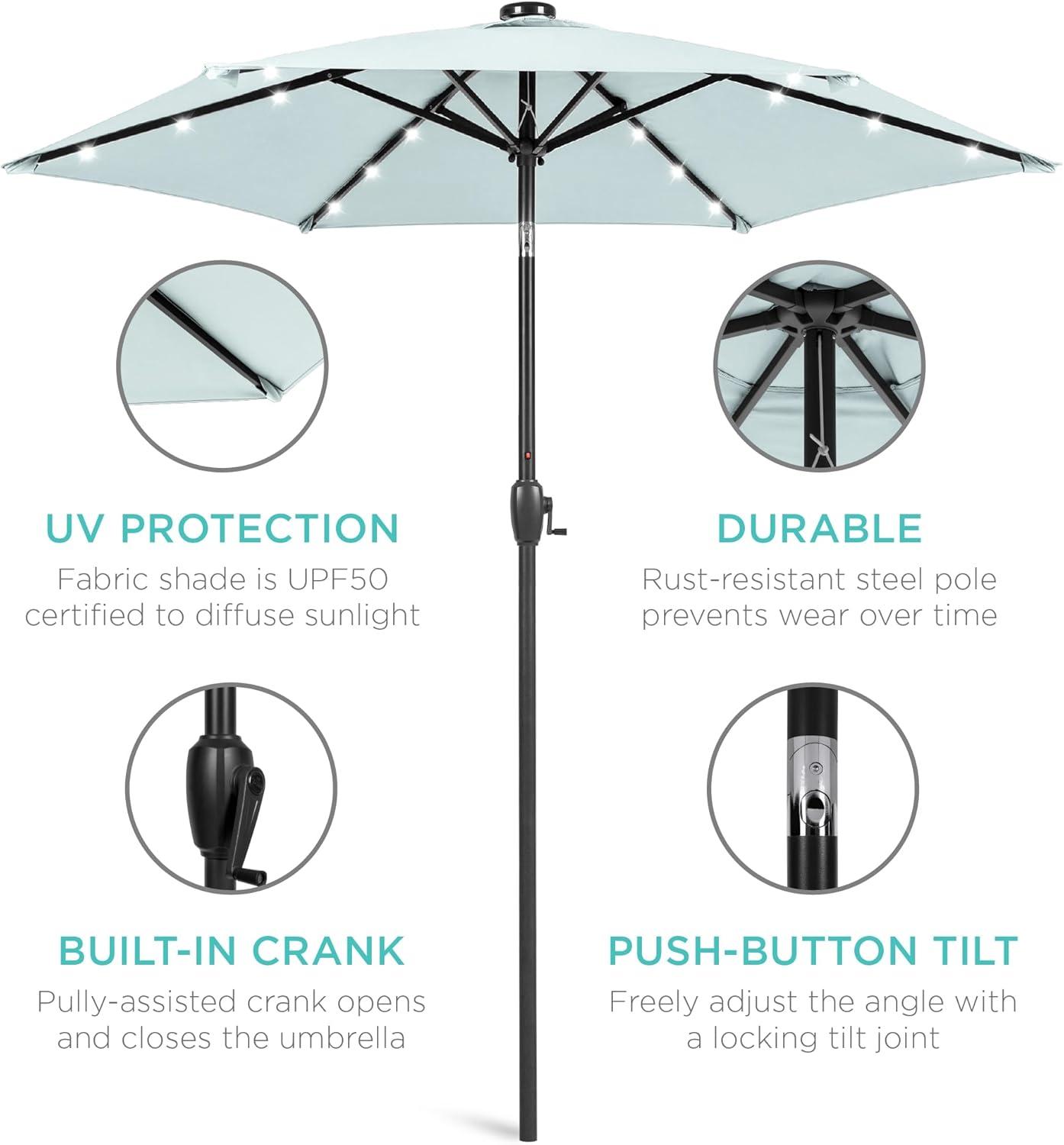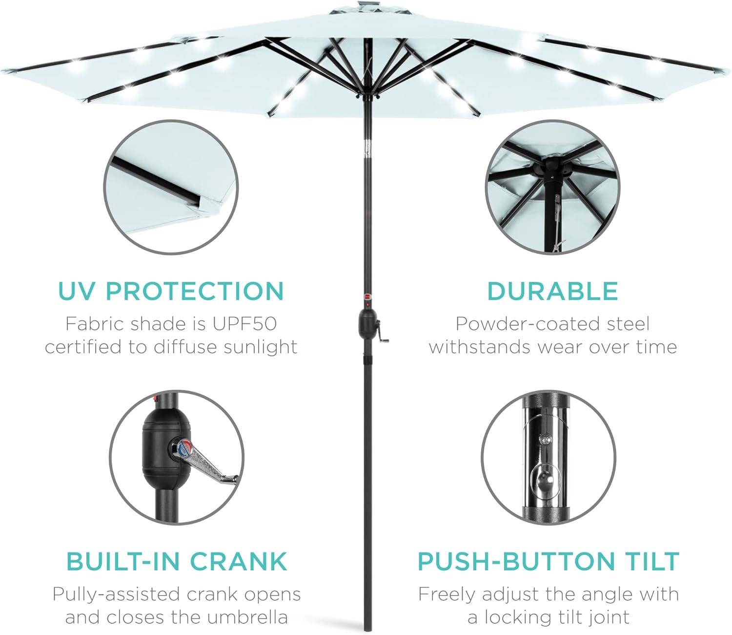 imageBest Choice Products 10ft Solar Polyester LED Lighted Patio Umbrella wTilt Adjustment and UVResistant Fabric  TanBaby Blue