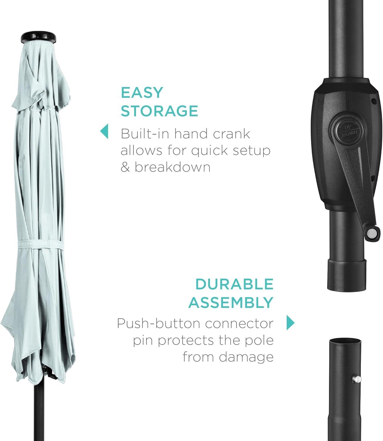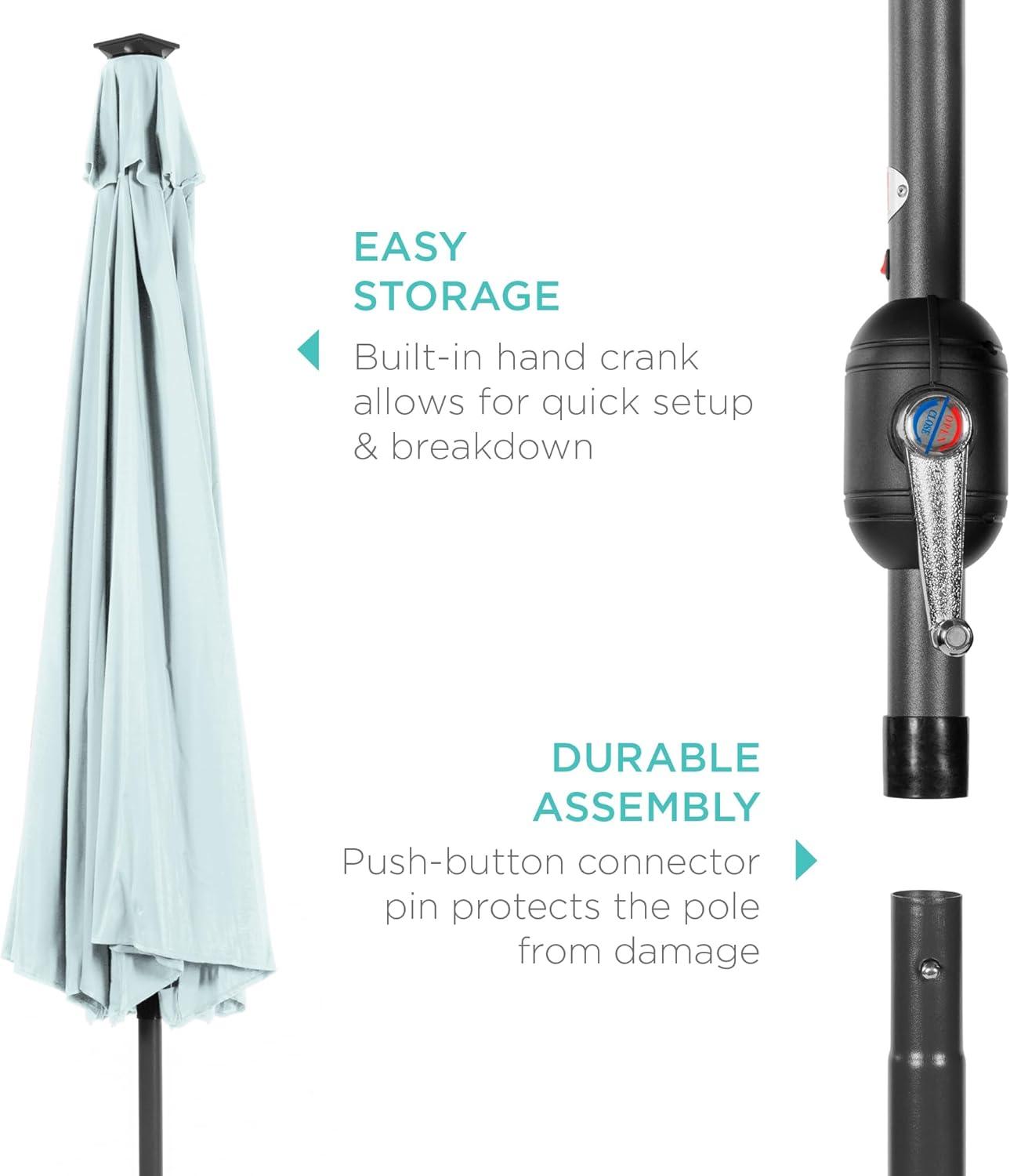 Best Choice Products 10ft Solar Polyester LED Lighted Patio Umbrella w/Tilt Adjustment and UV-Resistant Fabric – Tan(Baby Blue)