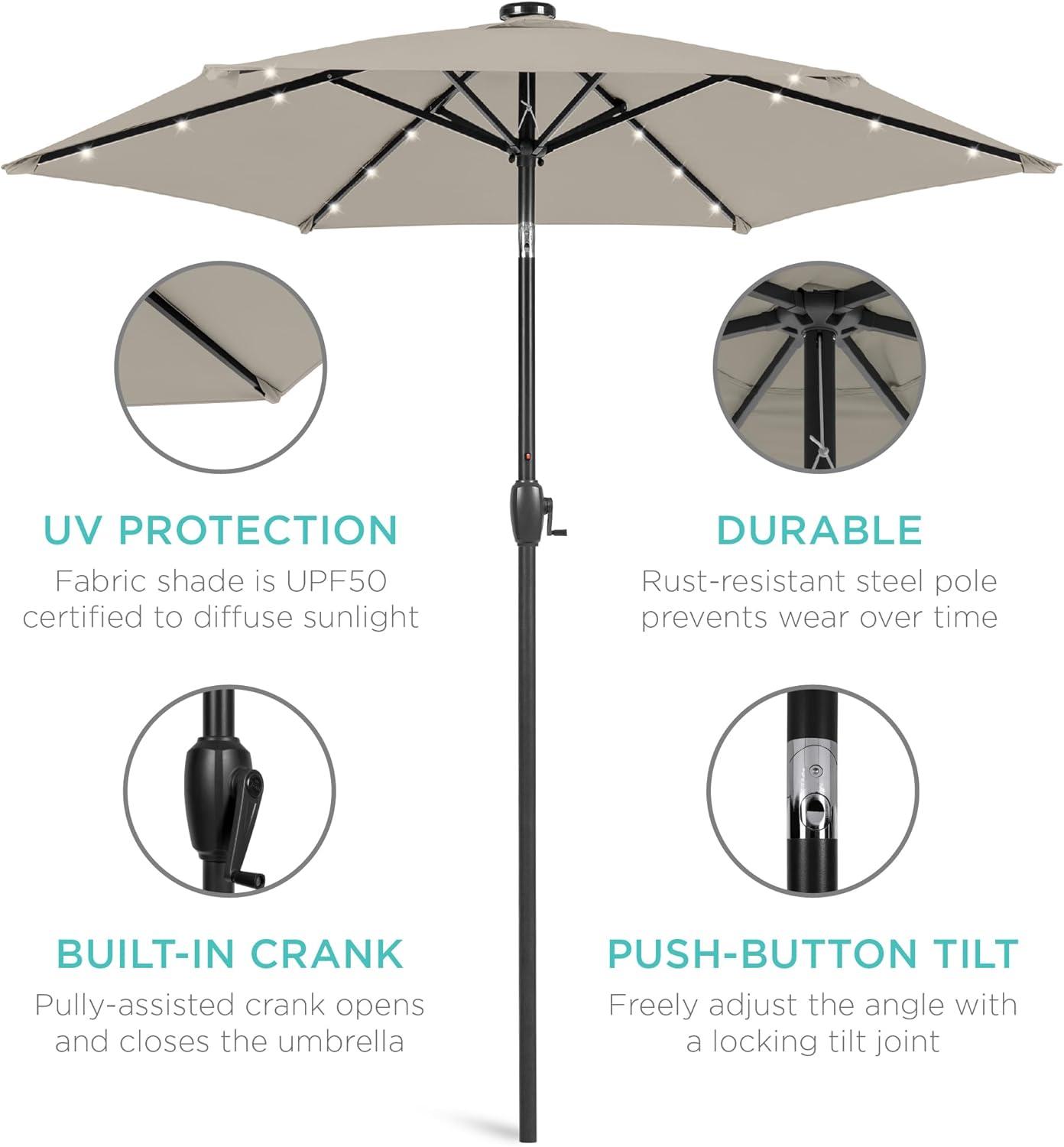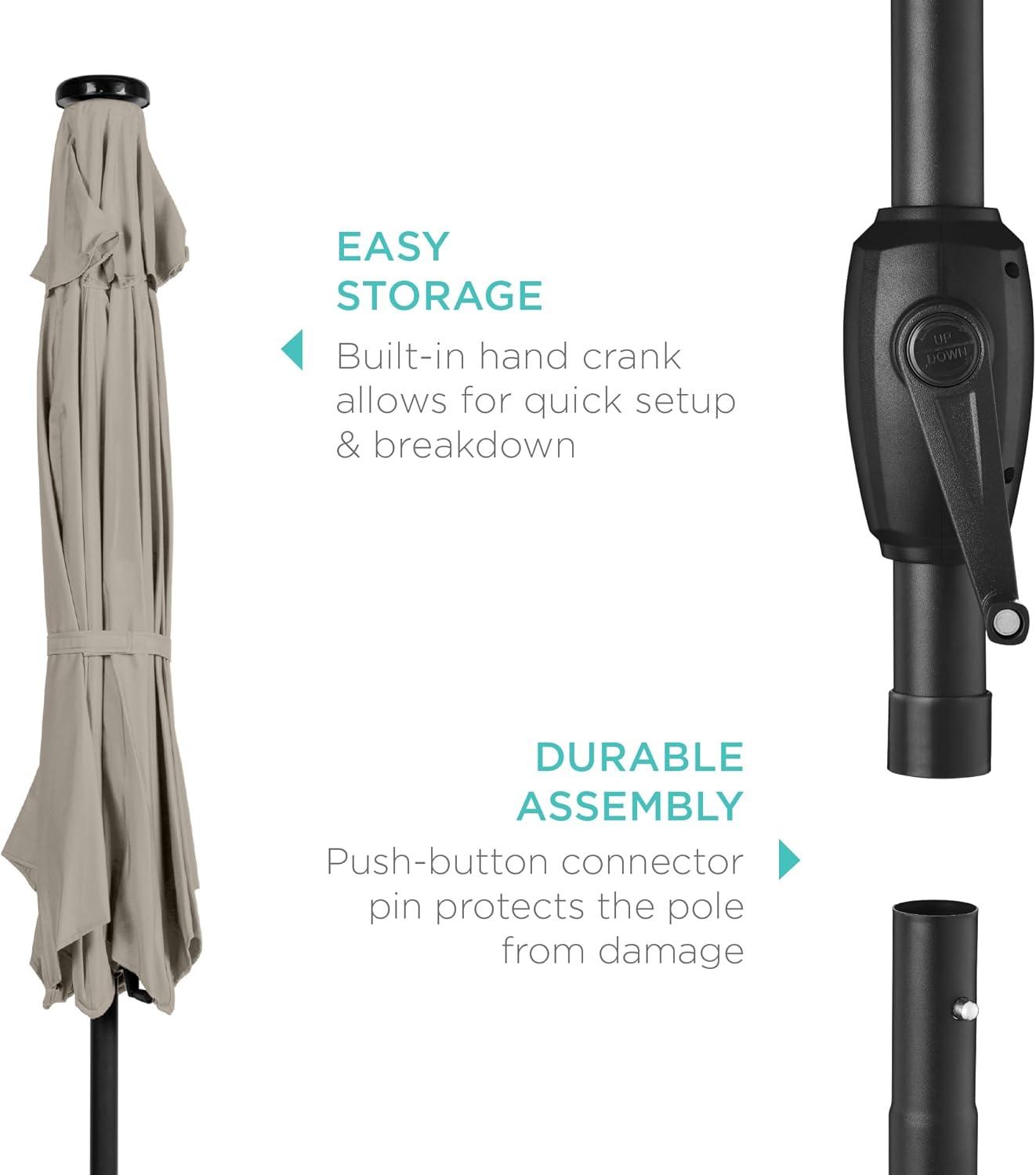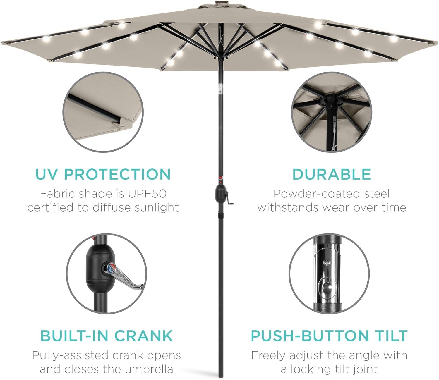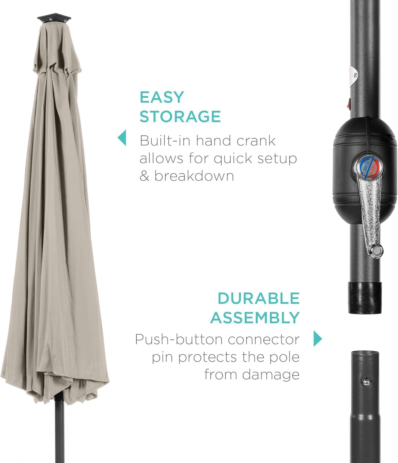 Best Choice Products 10ft Solar Polyester LED Lighted Patio Umbrella w/Tilt Adjustment and UV-Resistant Fabric – Tan(Beige)