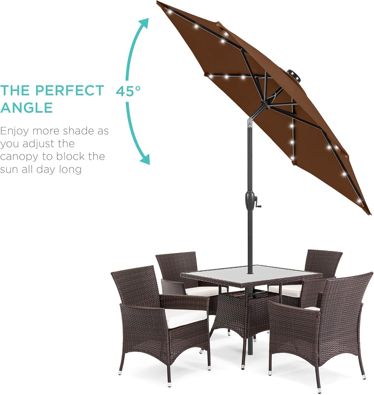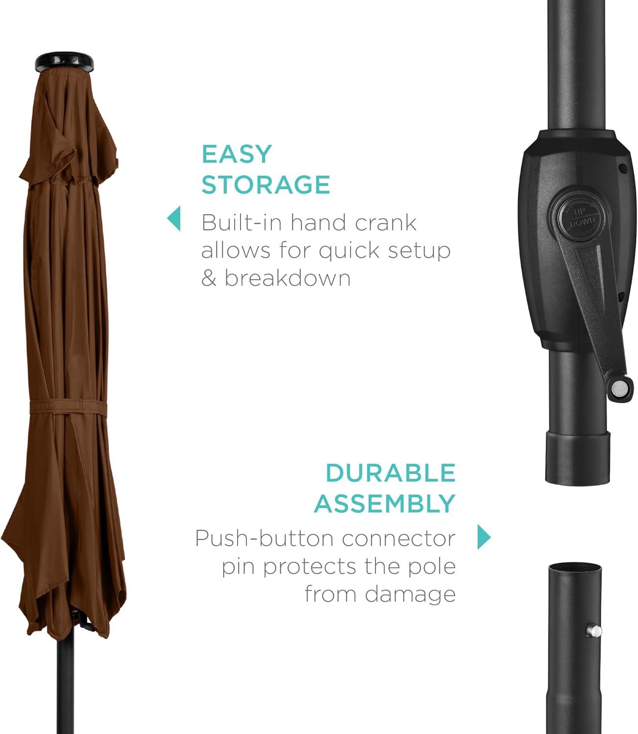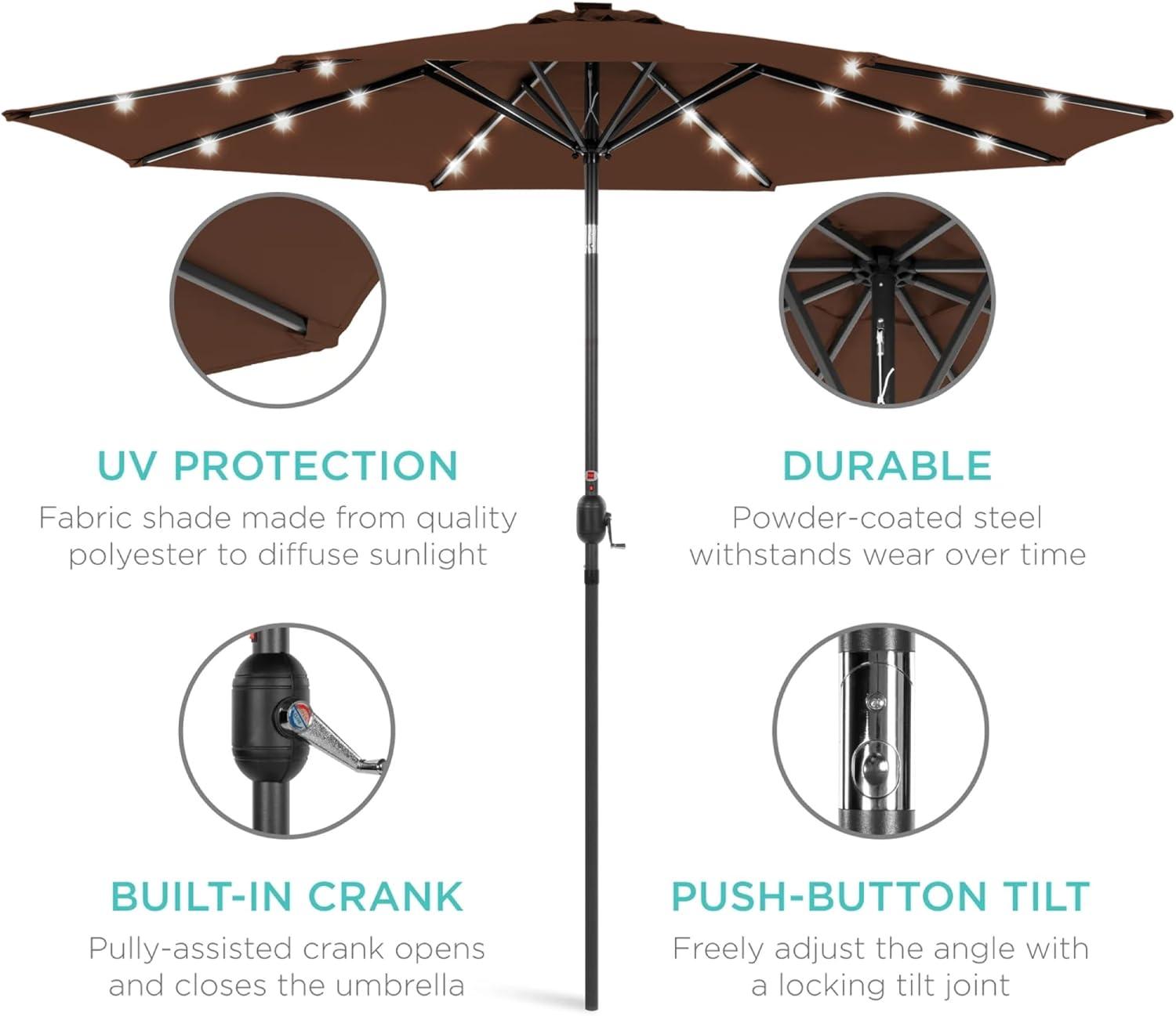 Best Choice Products 10ft Solar Polyester LED Lighted Patio Umbrella w/Tilt Adjustment and UV-Resistant Fabric – Tan(Brown)