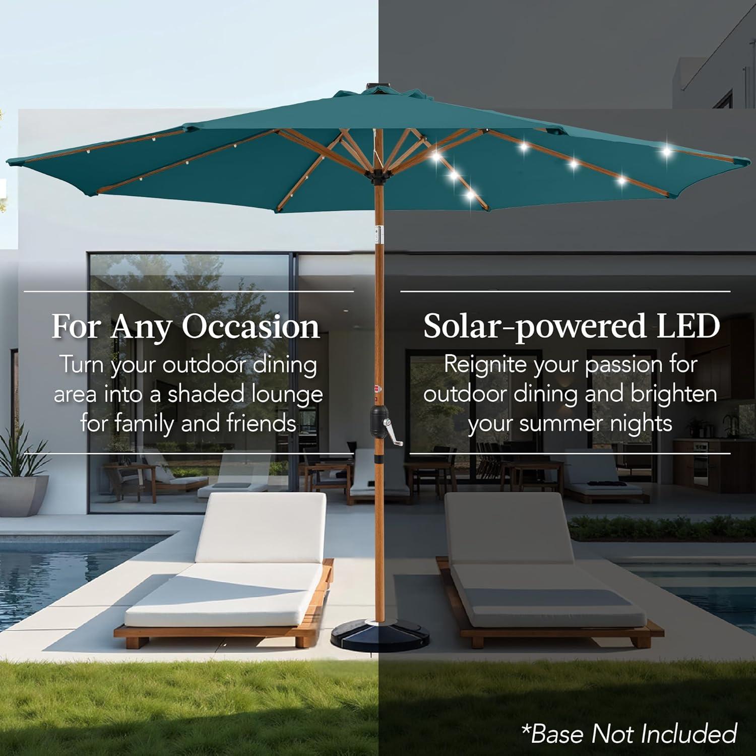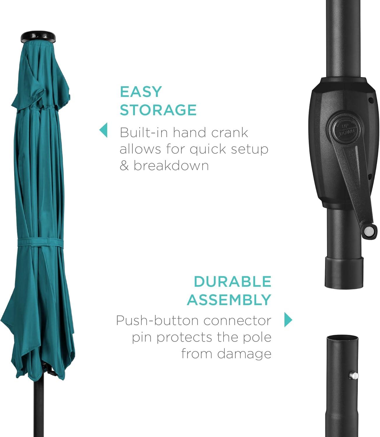 Best Choice Products 10ft Solar Polyester LED Lighted Patio Umbrella w/Tilt Adjustment and UV-Resistant Fabric – Tan(Cerulean)