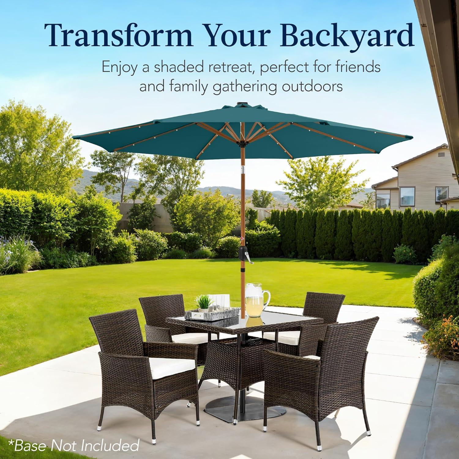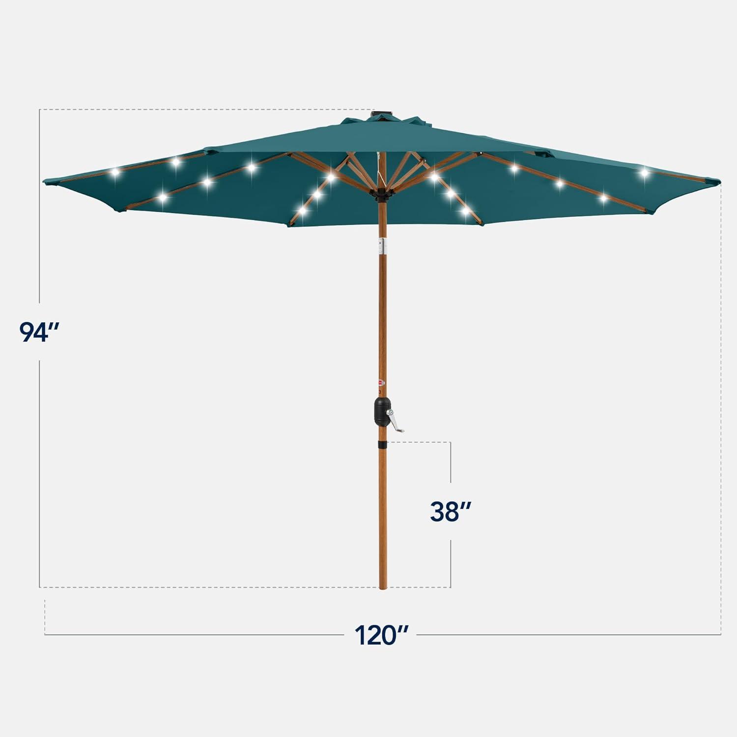imageBest Choice Products 10ft Solar Polyester LED Lighted Patio Umbrella wTilt Adjustment and UVResistant Fabric  TanCerulean