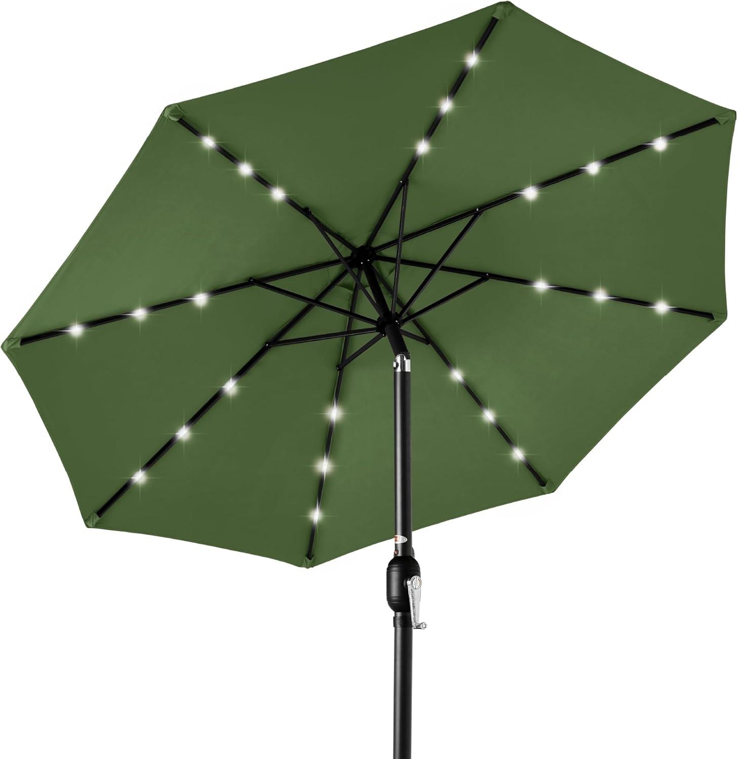 Best Choice Products 10ft Solar Polyester LED Lighted Patio Umbrella w/Tilt Adjustment and UV-Resistant Fabric – Tan(Fern)