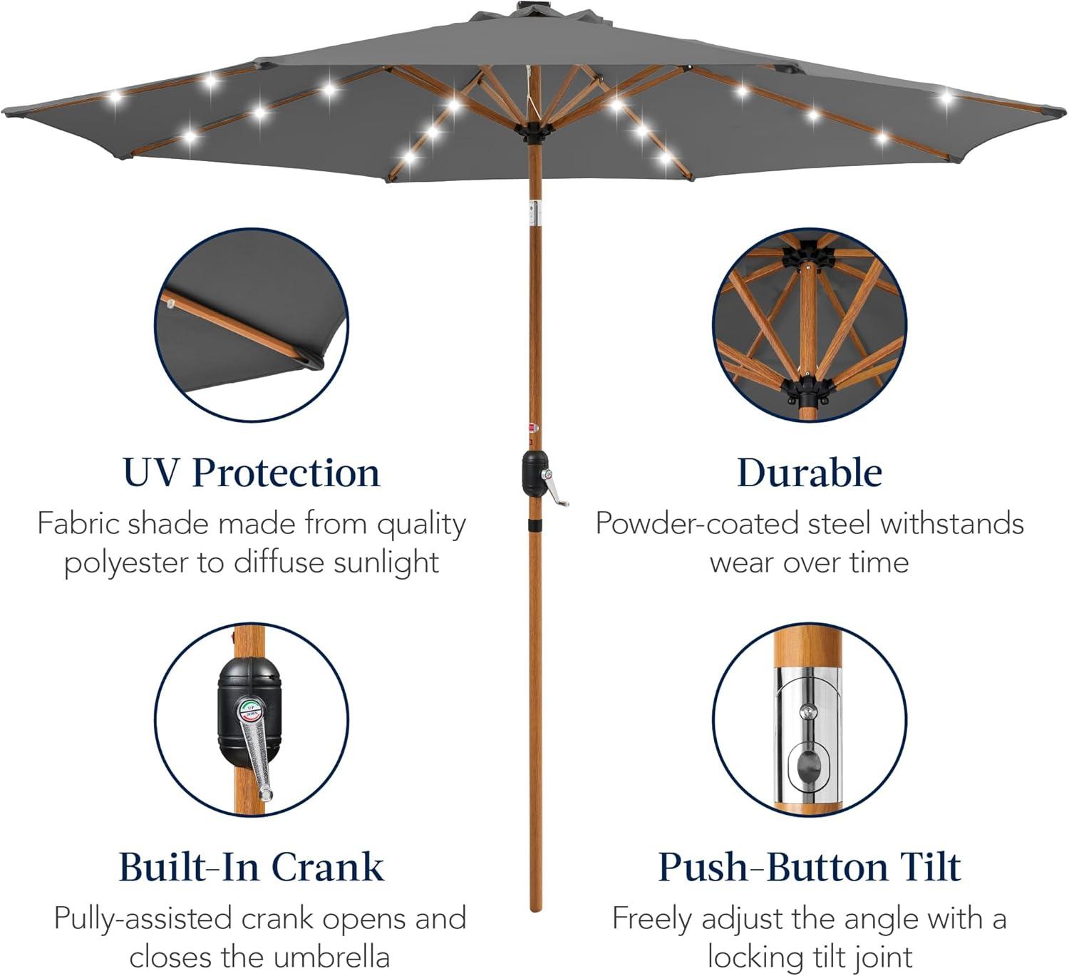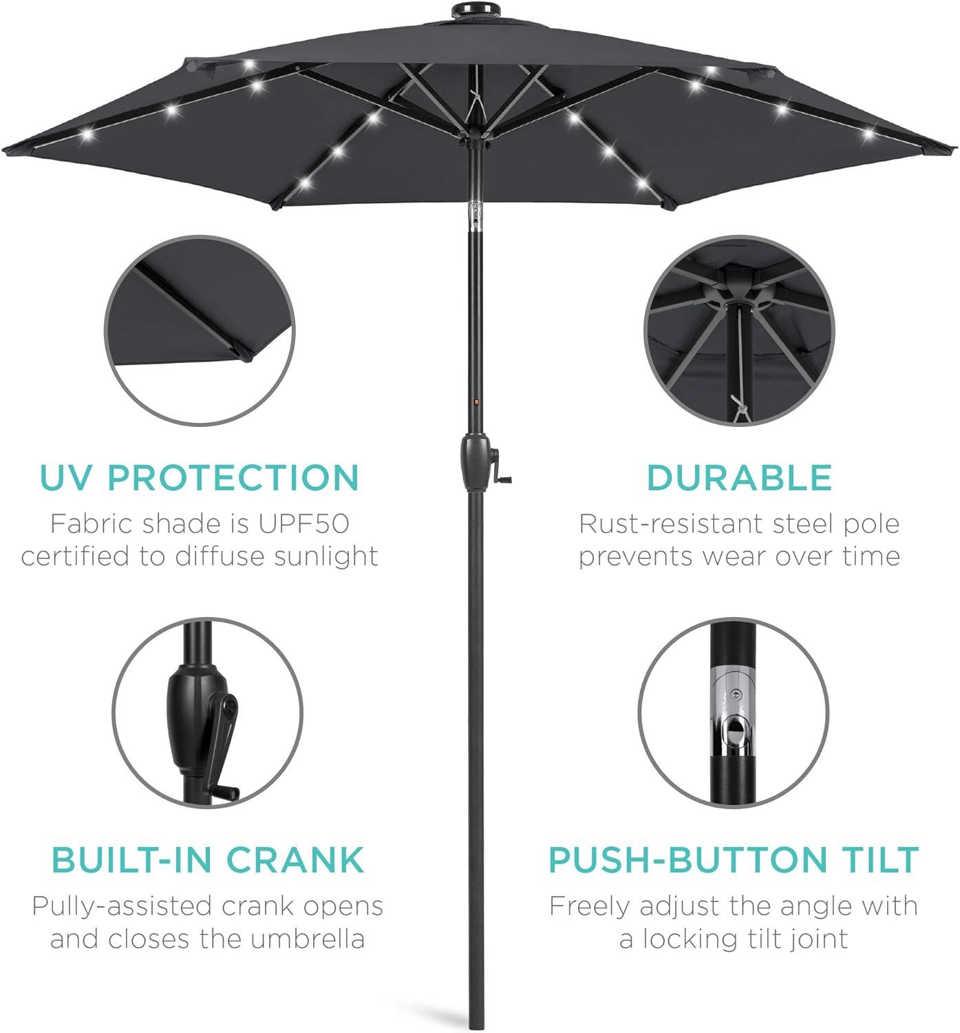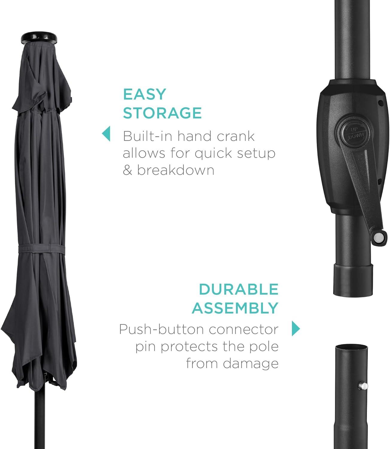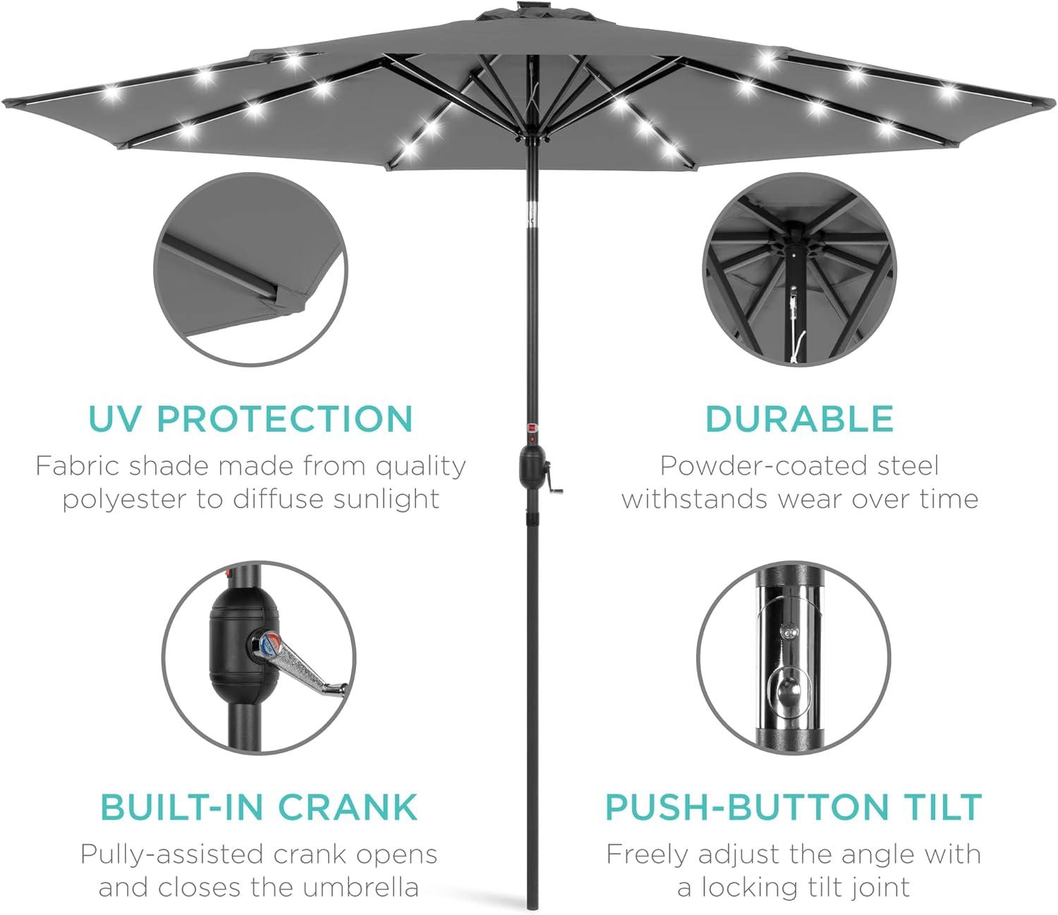 Best Choice Products 10ft Solar Polyester LED Lighted Patio Umbrella w/Tilt Adjustment and UV-Resistant Fabric – Tan(Gray)