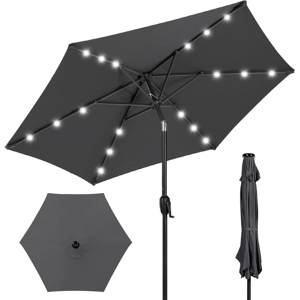 imageBest Choice Products 10ft Solar Polyester LED Lighted Patio Umbrella wTilt Adjustment and UVResistant Fabric  TanFog Gray