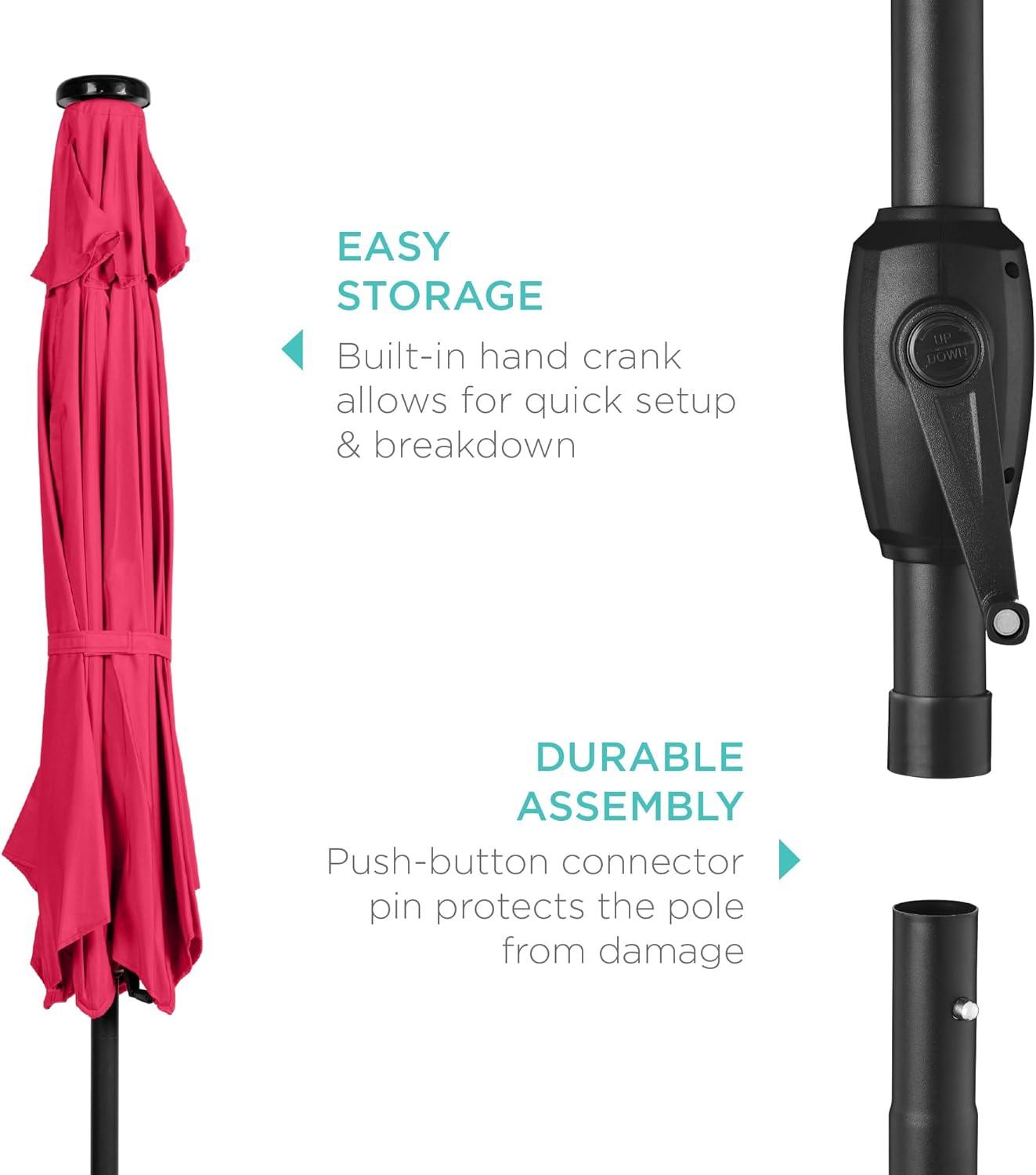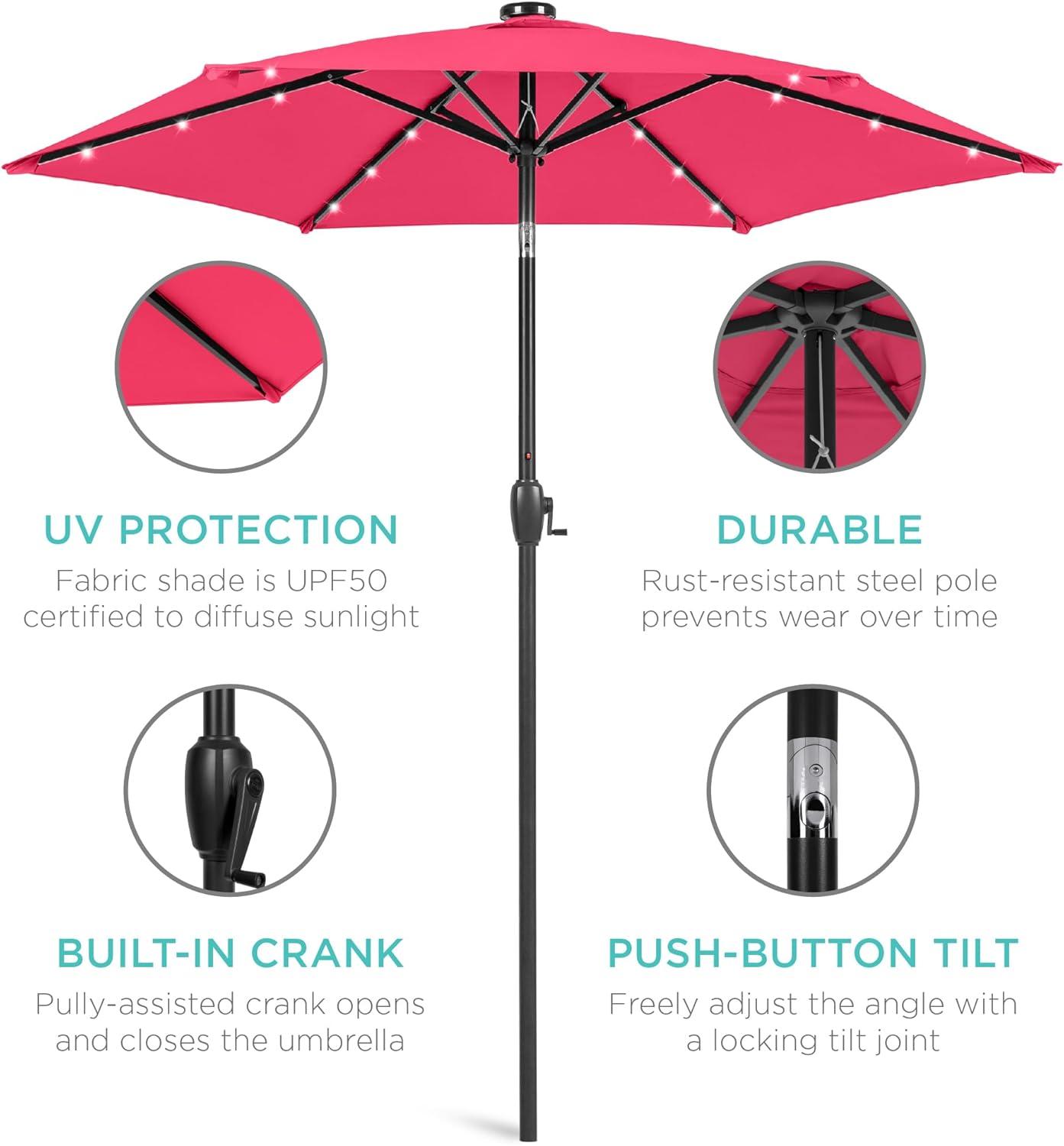Best Choice Products 10ft Solar Polyester LED Lighted Patio Umbrella w/Tilt Adjustment and UV-Resistant Fabric – Tan(Hot Pink)