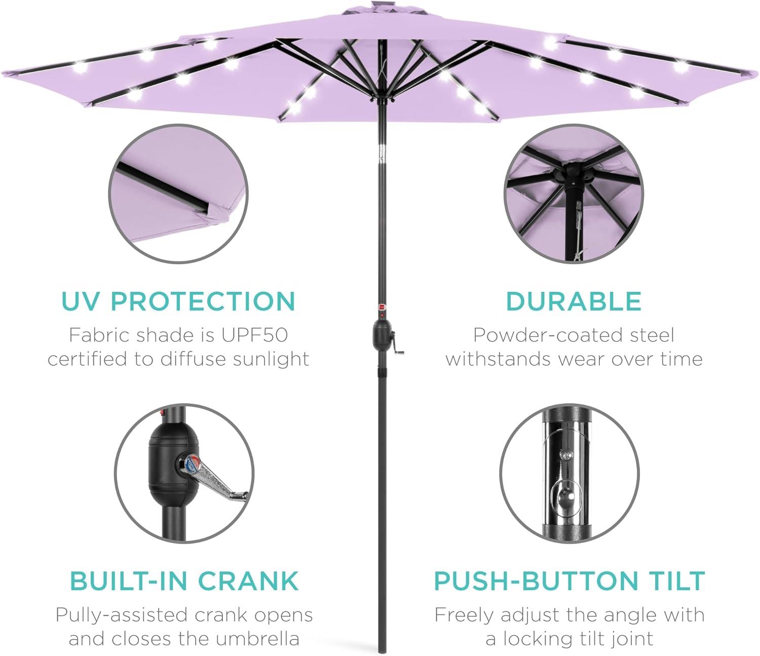 Best Choice Products 10ft Solar Polyester LED Lighted Patio Umbrella w/Tilt Adjustment and UV-Resistant Fabric – Tan(Lavender)