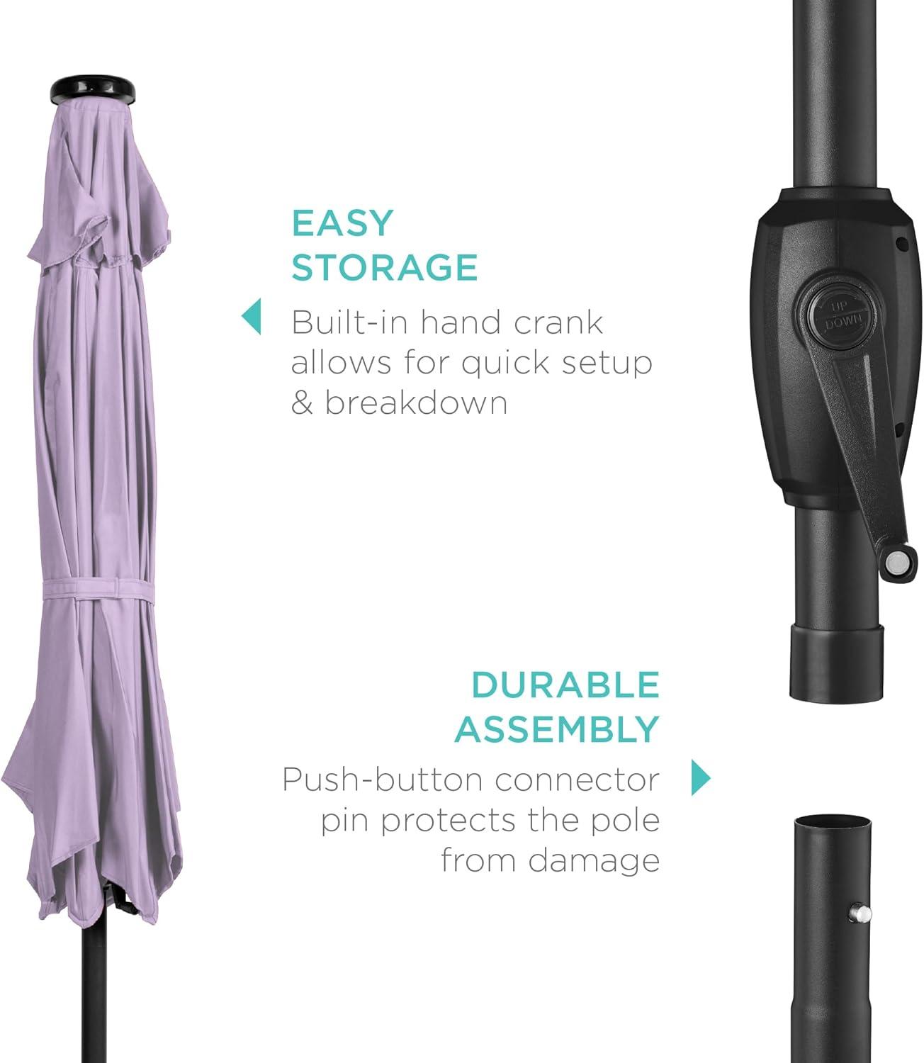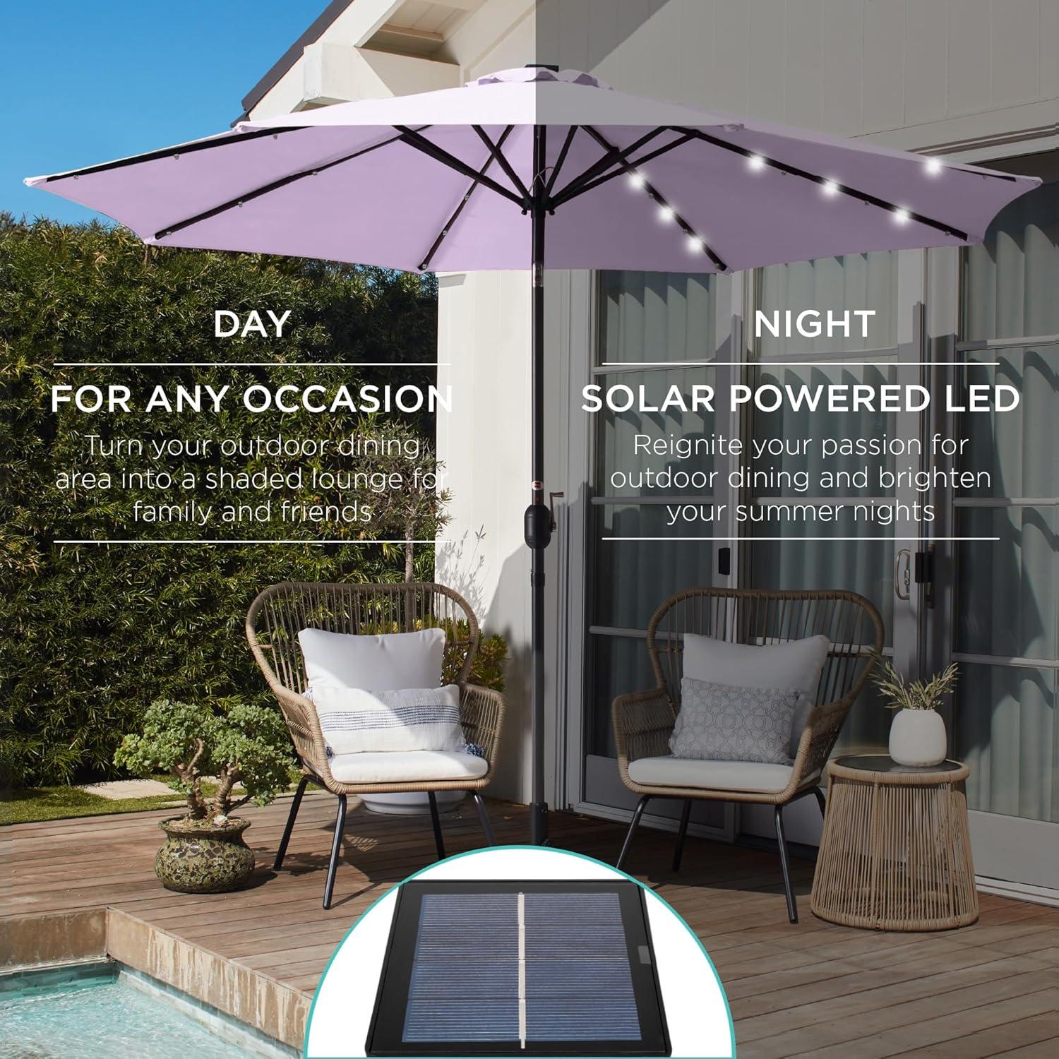 Best Choice Products 10ft Solar Polyester LED Lighted Patio Umbrella w/Tilt Adjustment and UV-Resistant Fabric - Tan(Lavender)