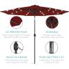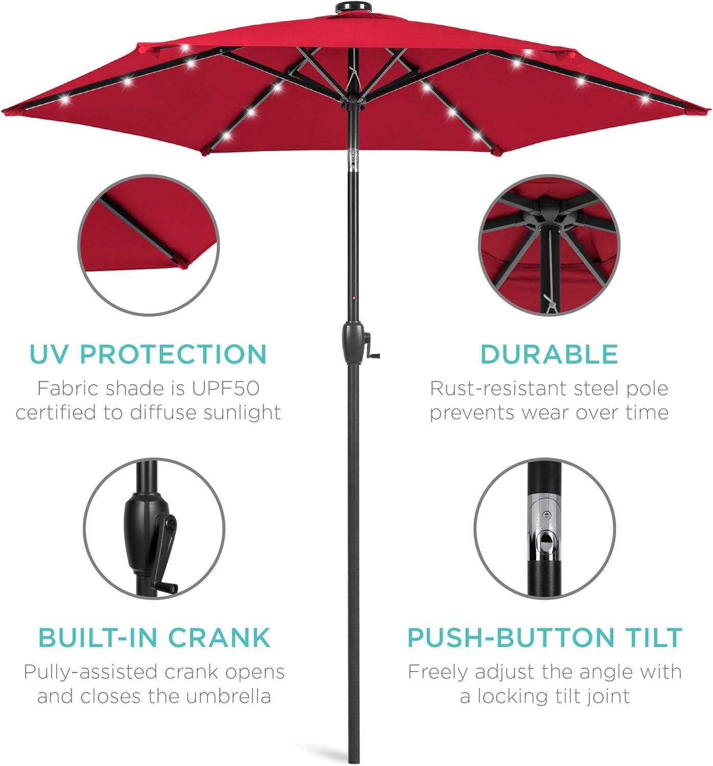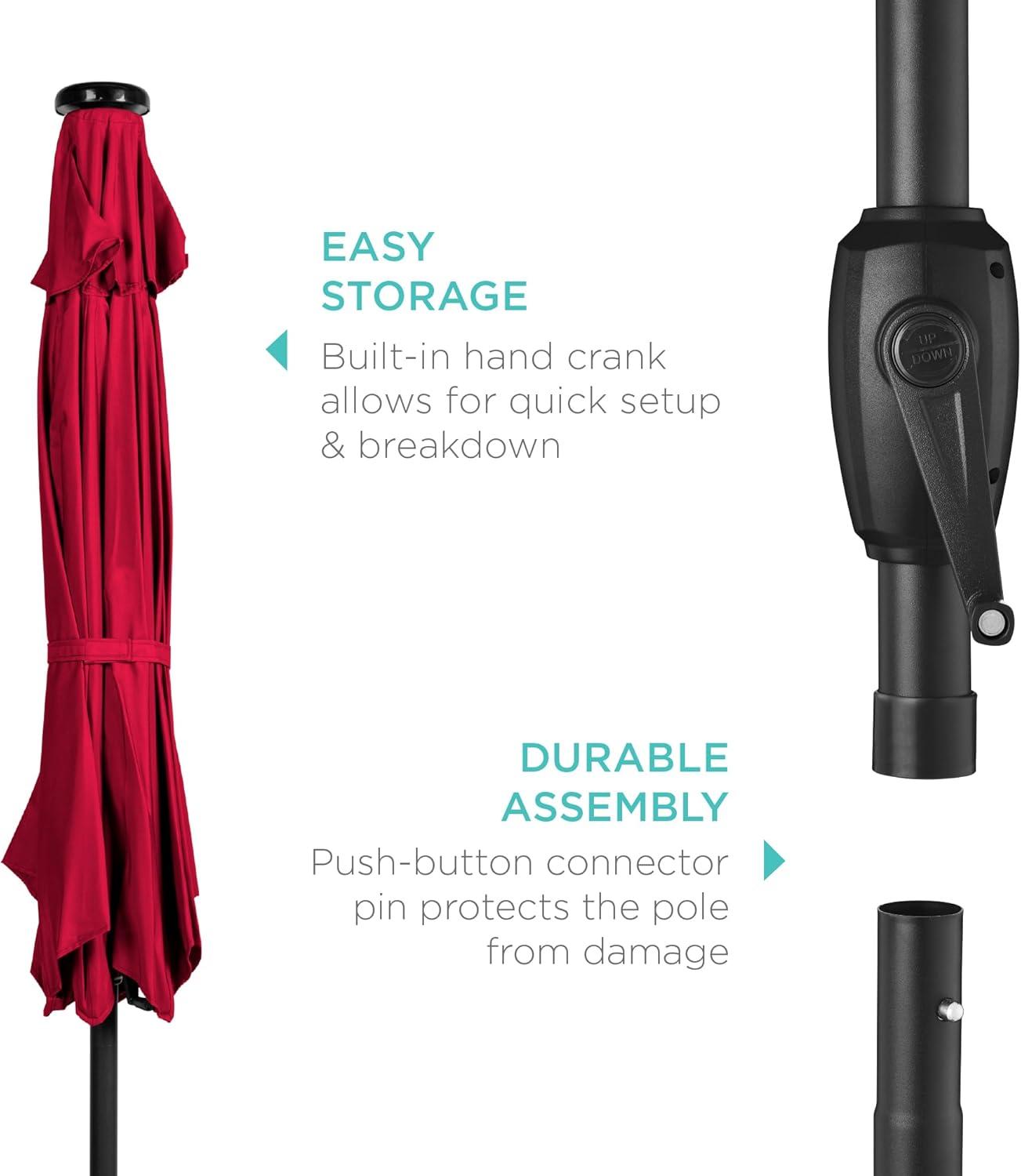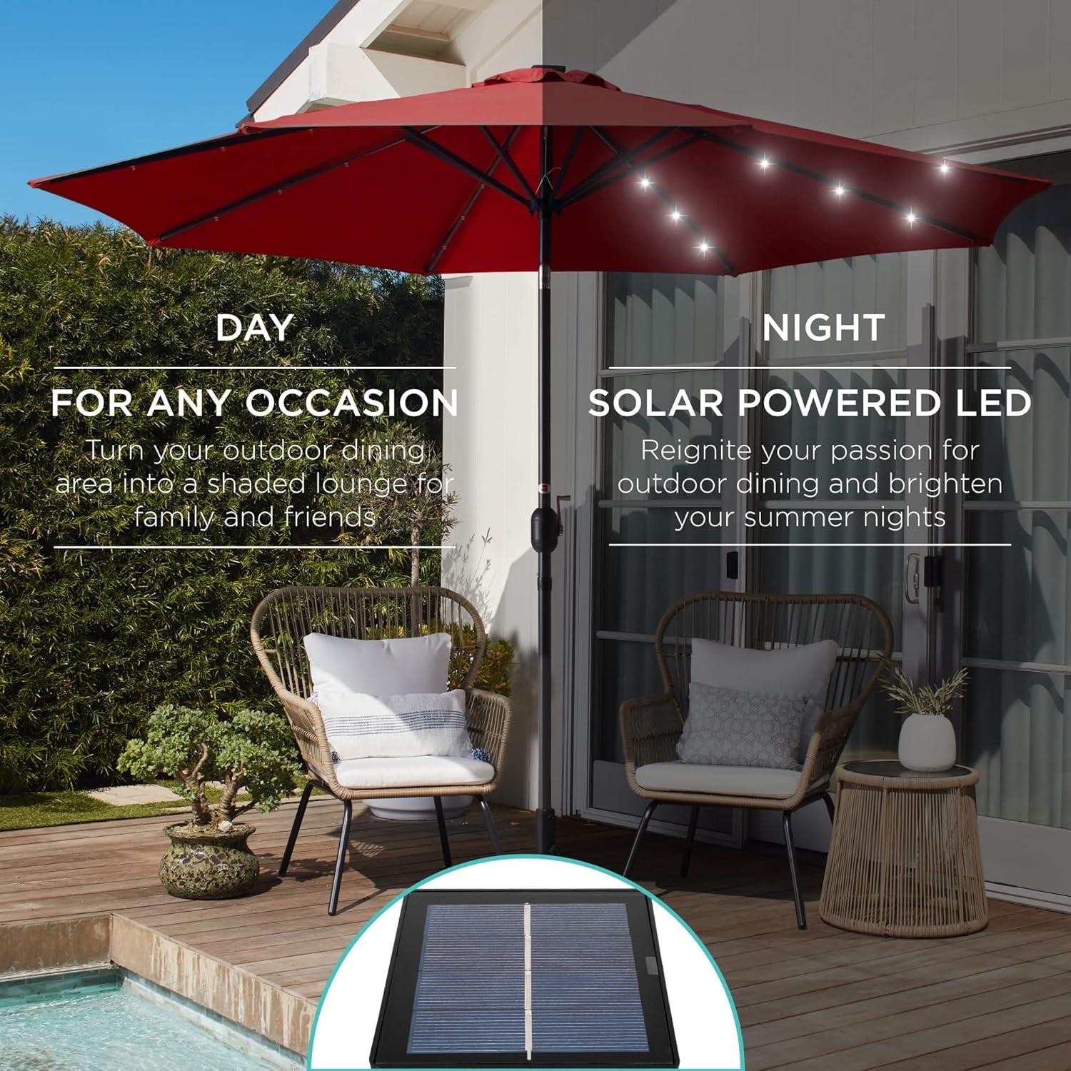 Best Choice Products 10ft Solar Polyester LED Lighted Patio Umbrella w/Tilt Adjustment and UV-Resistant Fabric – Tan(Red)