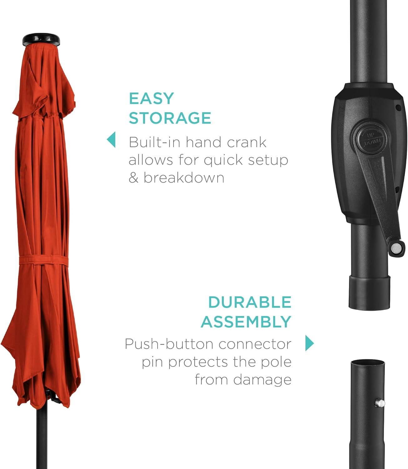 Best Choice Products 10ft Solar Polyester LED Lighted Patio Umbrella w/Tilt Adjustment and UV-Resistant Fabric – Tan(Rust)