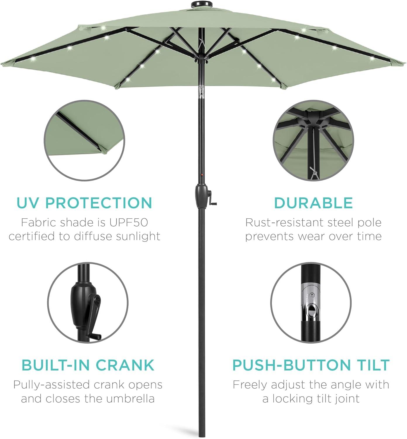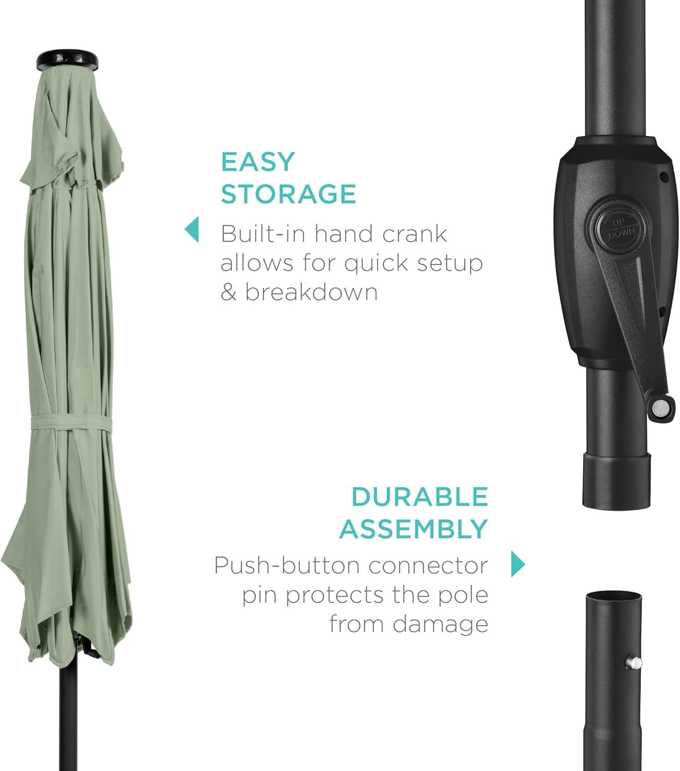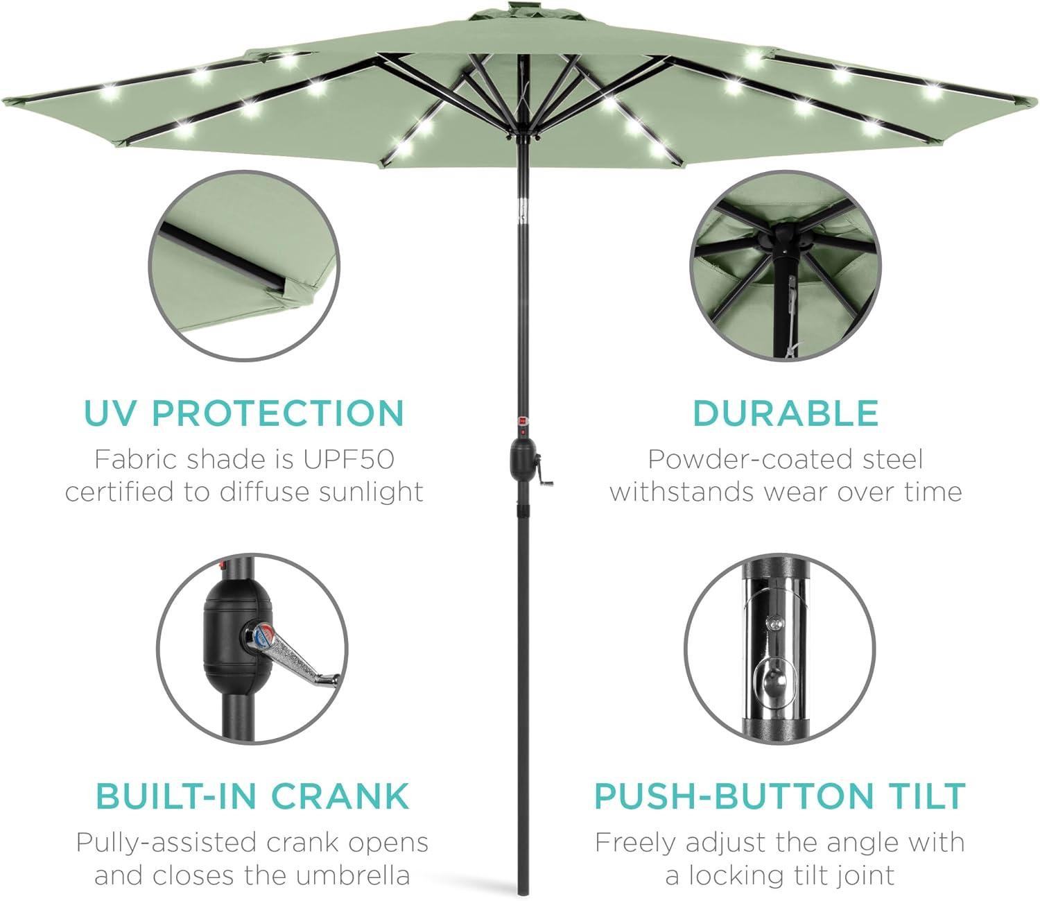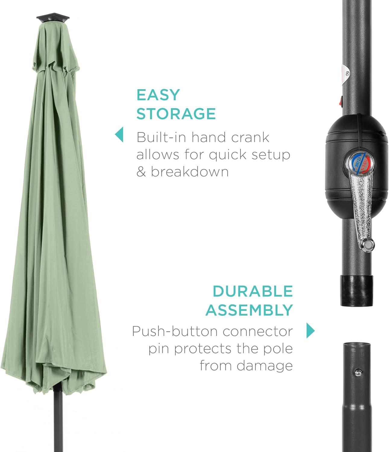 Best Choice Products 10ft Solar Polyester LED Lighted Patio Umbrella w/Tilt Adjustment and UV-Resistant Fabric – Tan(Sage Green)