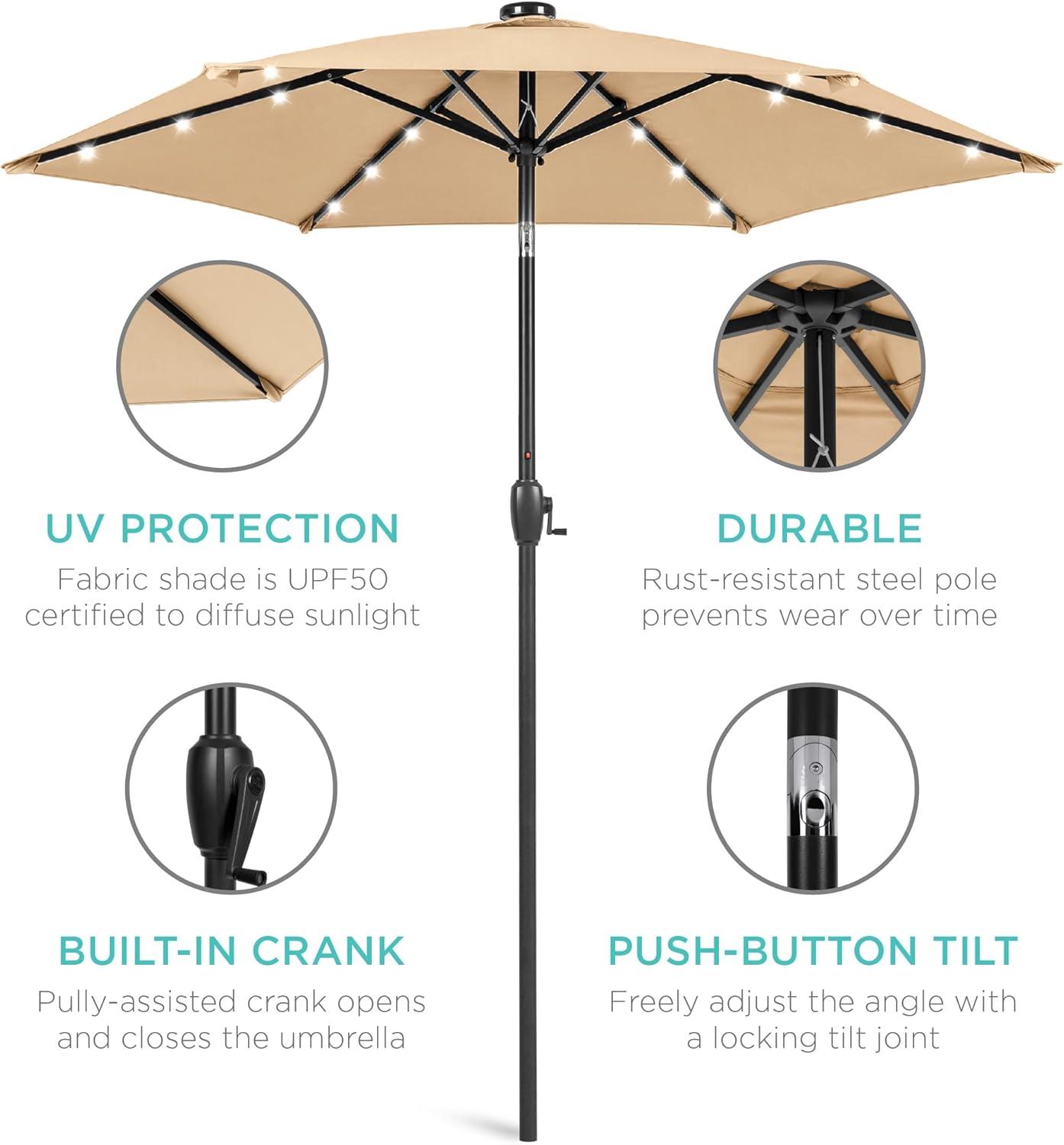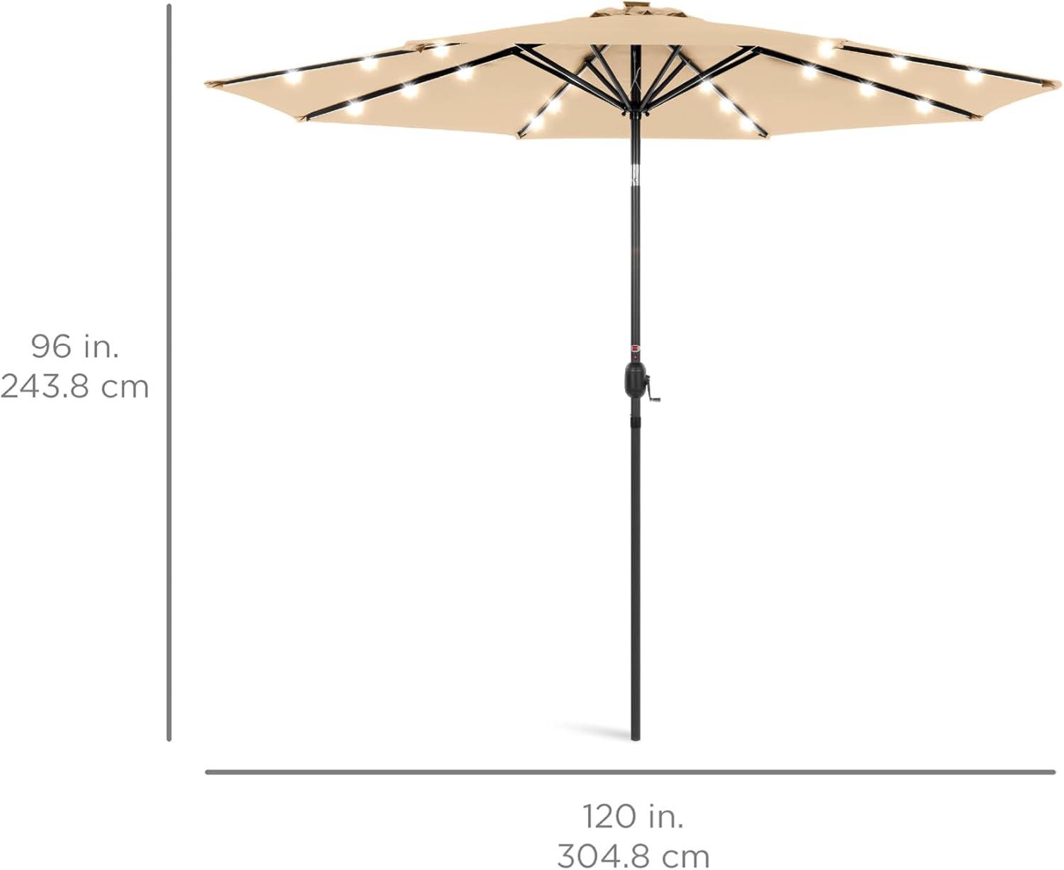 Best Choice Products 10ft Solar Polyester LED Lighted Patio Umbrella w/Tilt Adjustment and UV-Resistant Fabric – Tan(Seaglass)