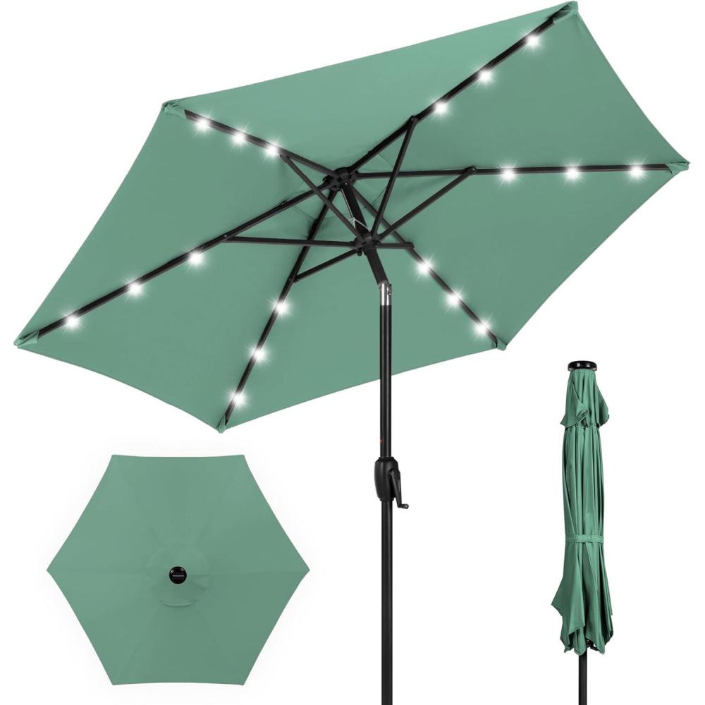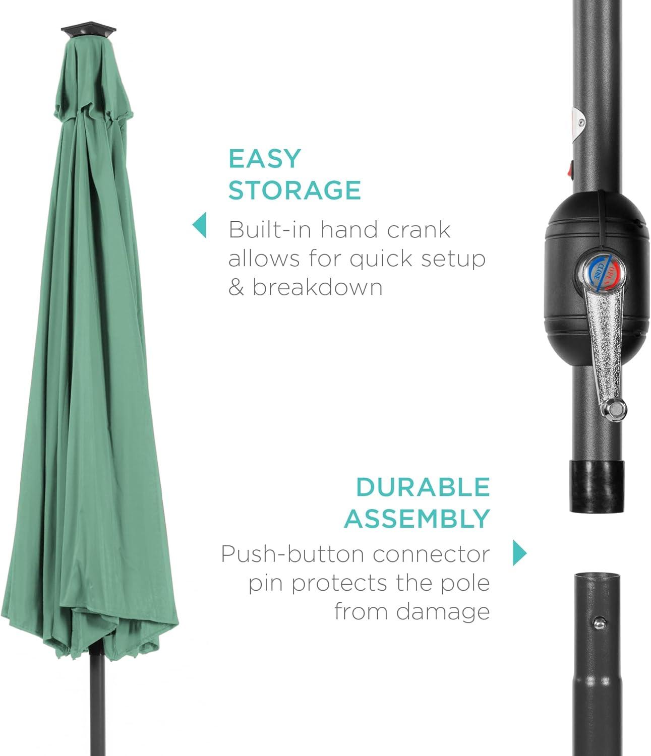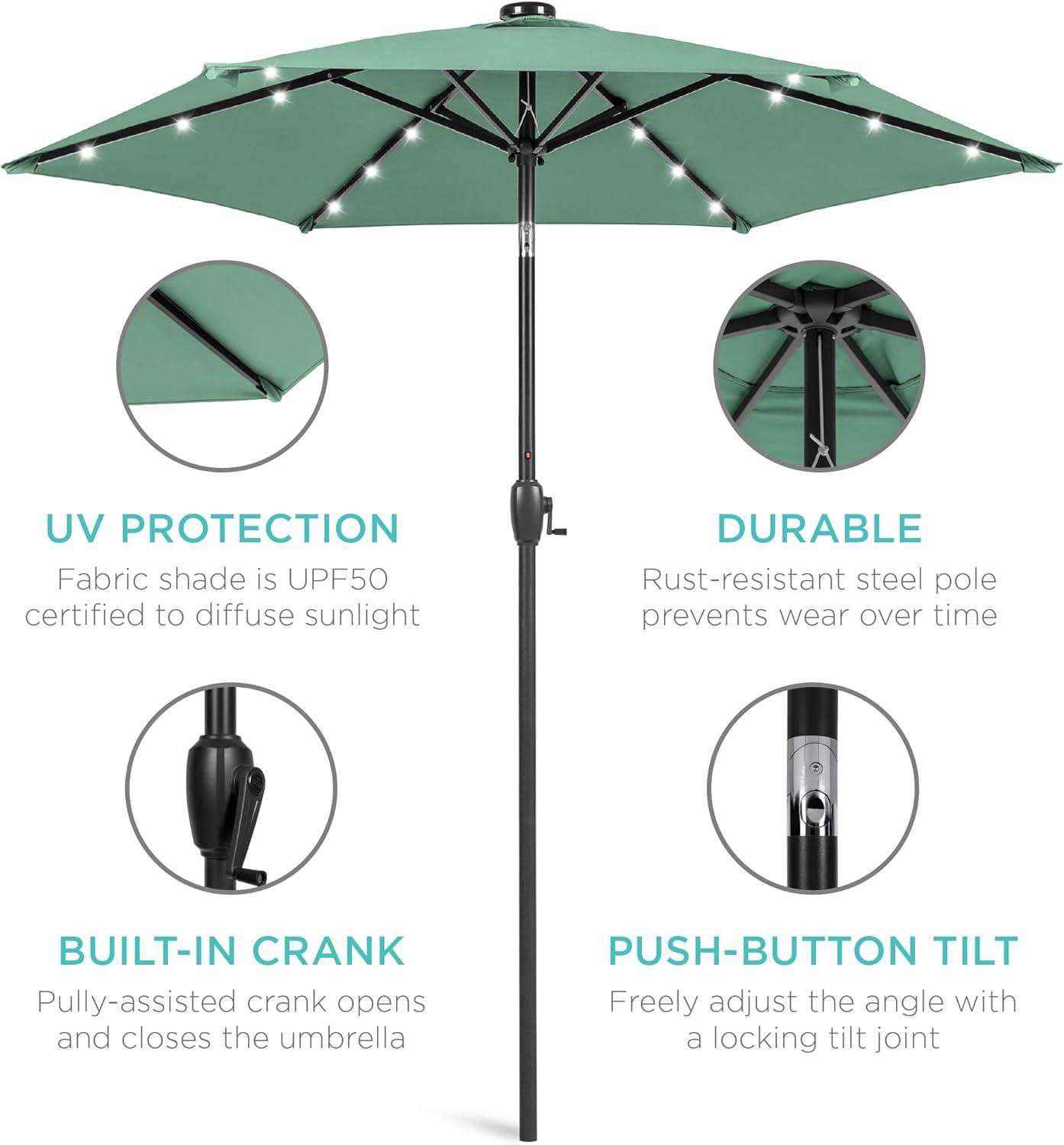 Best Choice Products 10ft Solar Polyester LED Lighted Patio Umbrella w/Tilt Adjustment and UV-Resistant Fabric – Tan(Seaglass)
