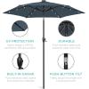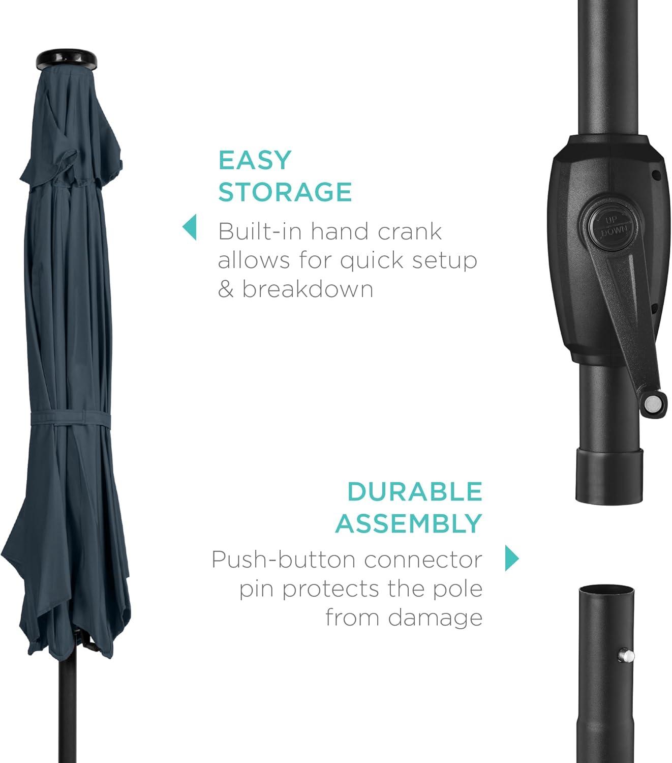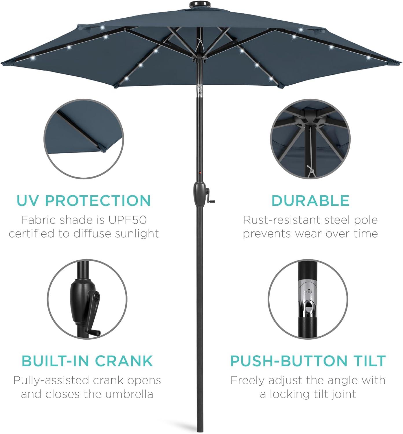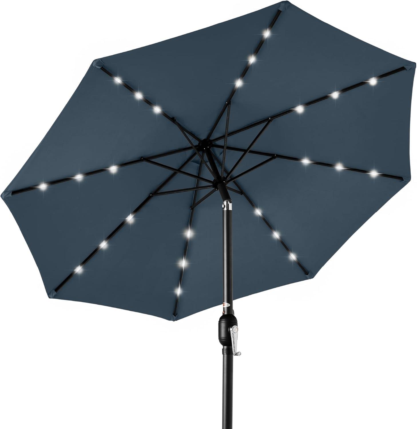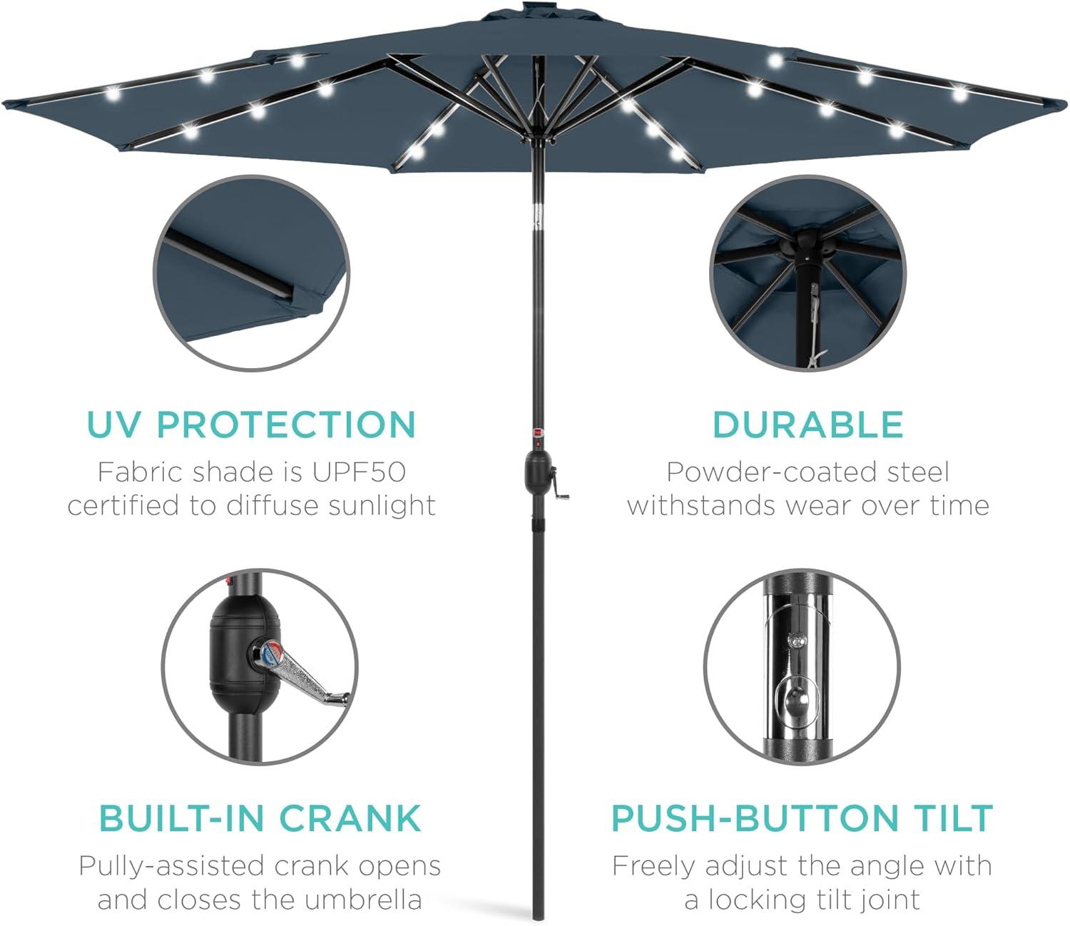 Best Choice Products 10ft Solar Polyester LED Lighted Patio Umbrella w/Tilt Adjustment and UV-Resistant Fabric – Tan(Slate Blue)