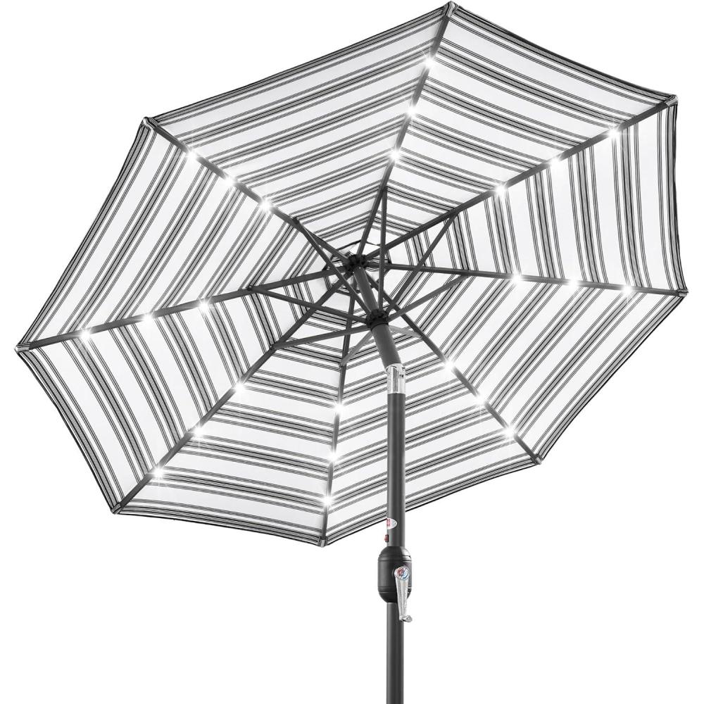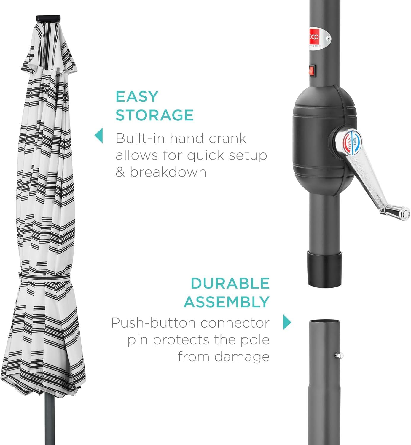 Best Choice Products 10ft Solar Polyester LED Lighted Patio Umbrella w/Tilt Adjustment and UV-Resistant Fabric – Tan(Striped Black)