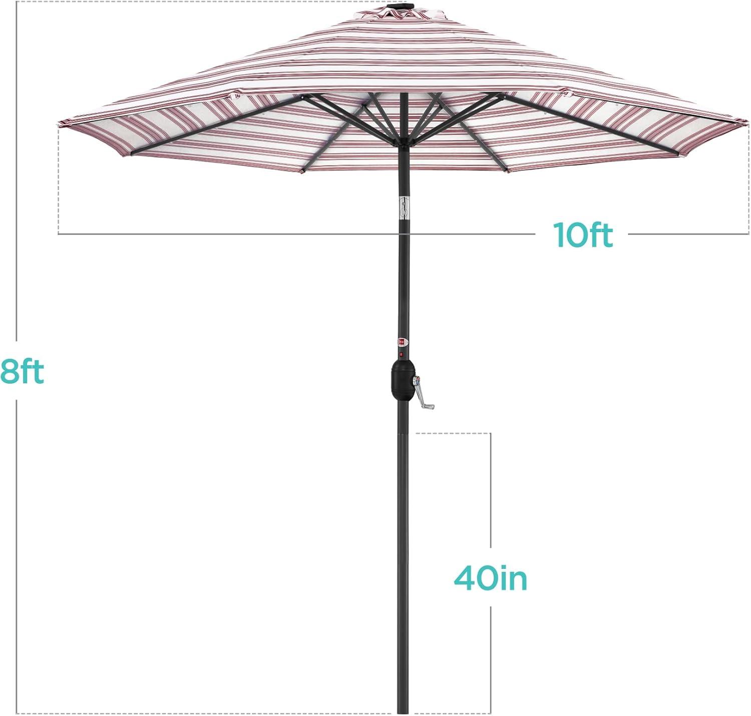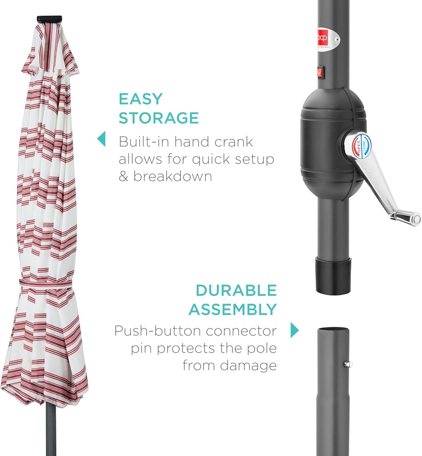 Best Choice Products 10ft Solar Polyester LED Lighted Patio Umbrella w/Tilt Adjustment and UV-Resistant Fabric – Tan(Striped Burgundy)