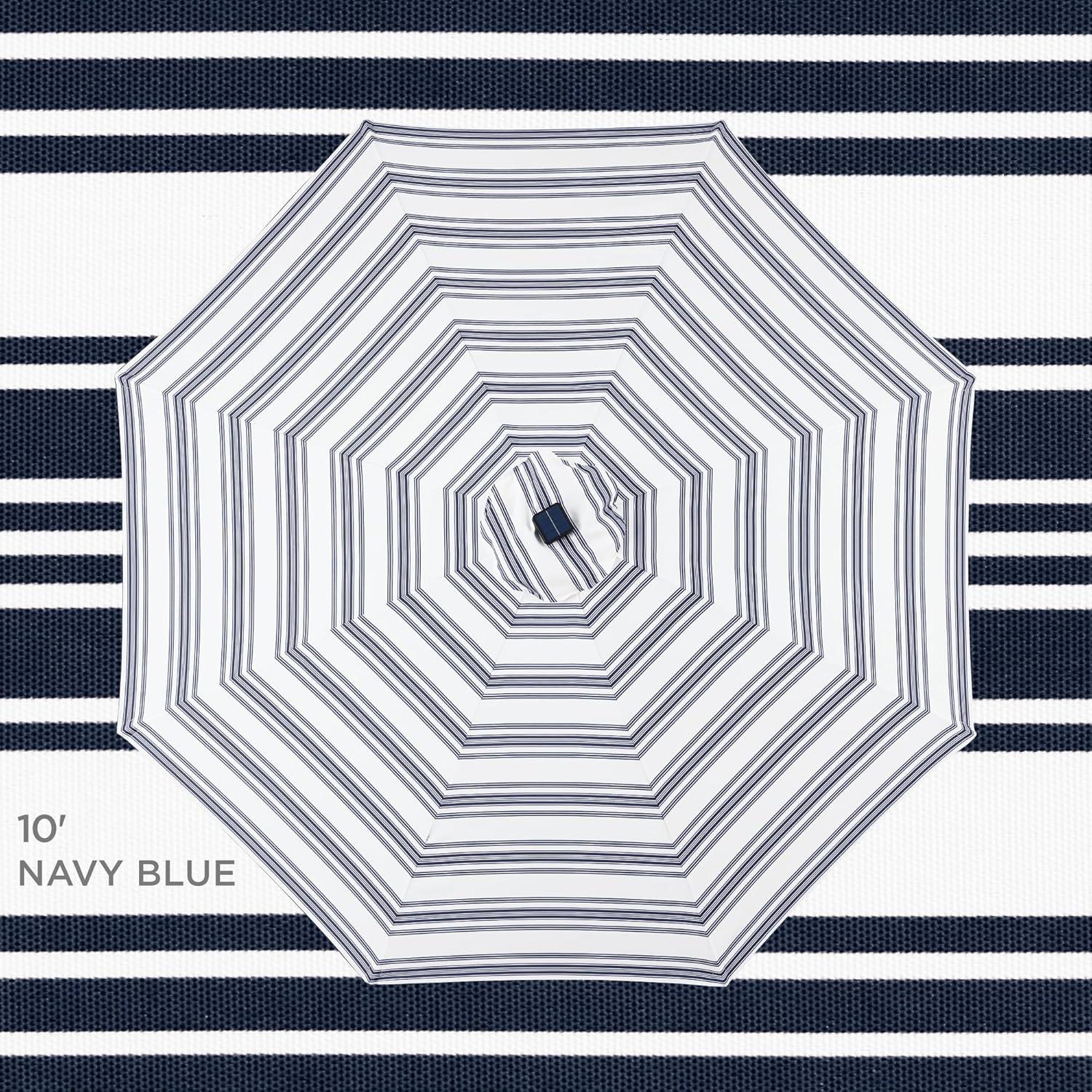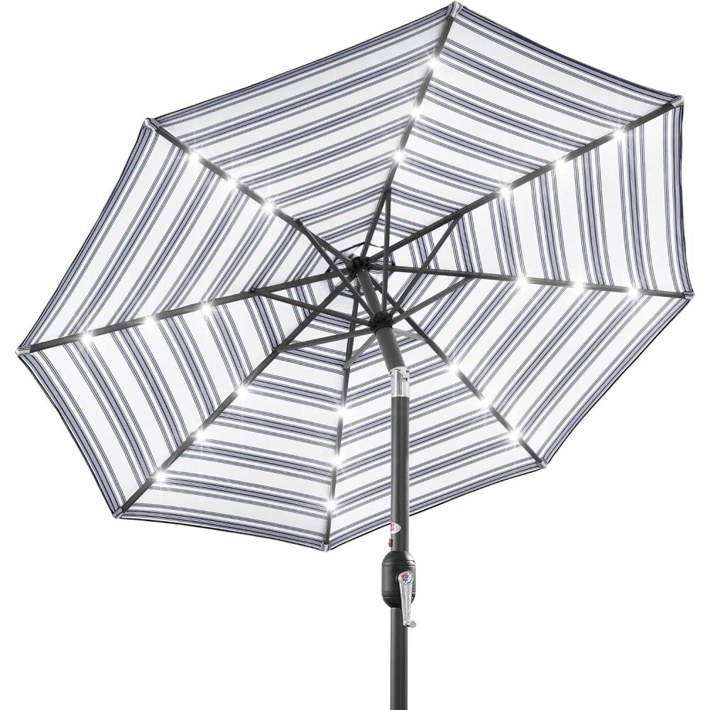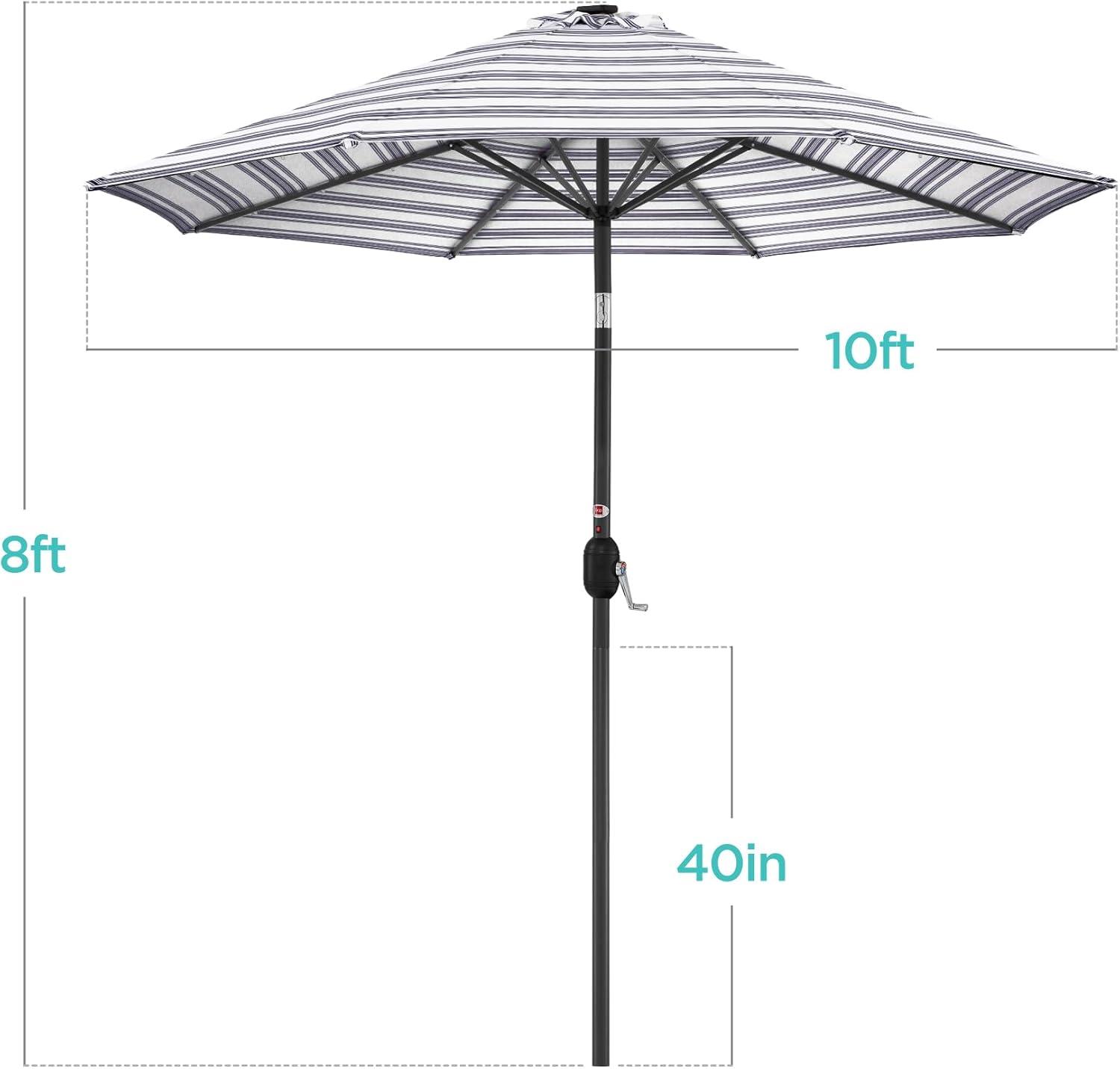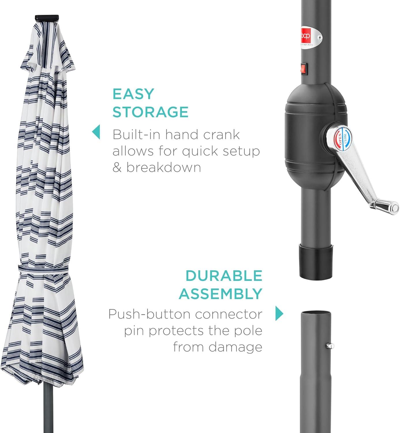 Best Choice Products 10ft Solar Polyester LED Lighted Patio Umbrella w/Tilt Adjustment and UV-Resistant Fabric – Tan(Striped Navy Blue)