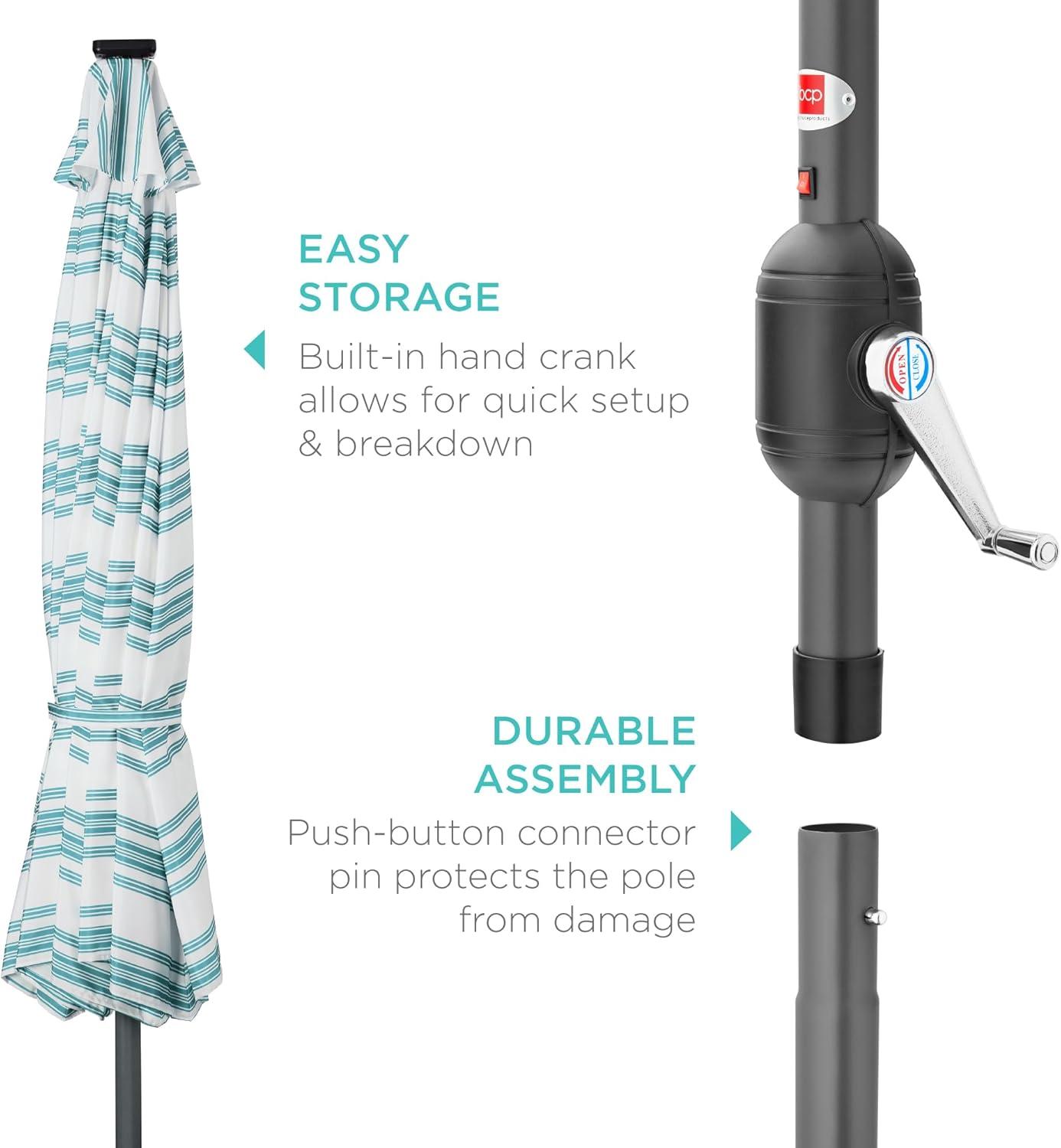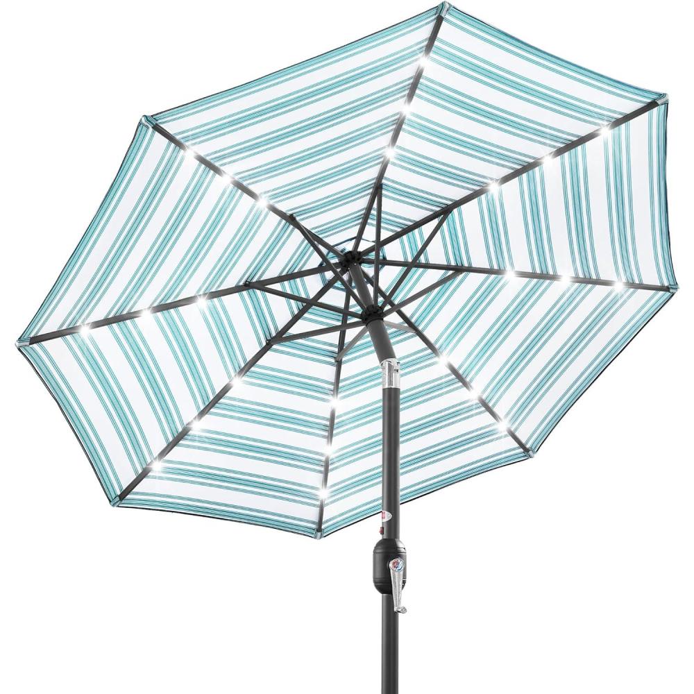 Best Choice Products 10ft Solar Polyester LED Lighted Patio Umbrella w/Tilt Adjustment and UV-Resistant Fabric – Tan(Striped Sky Blue)