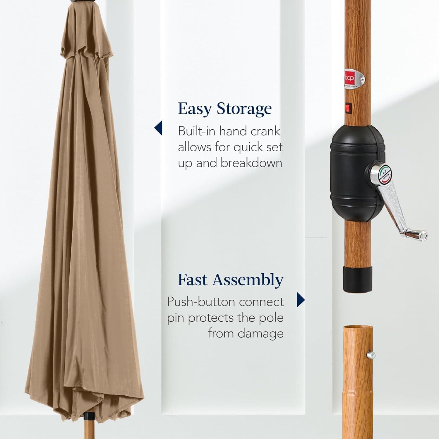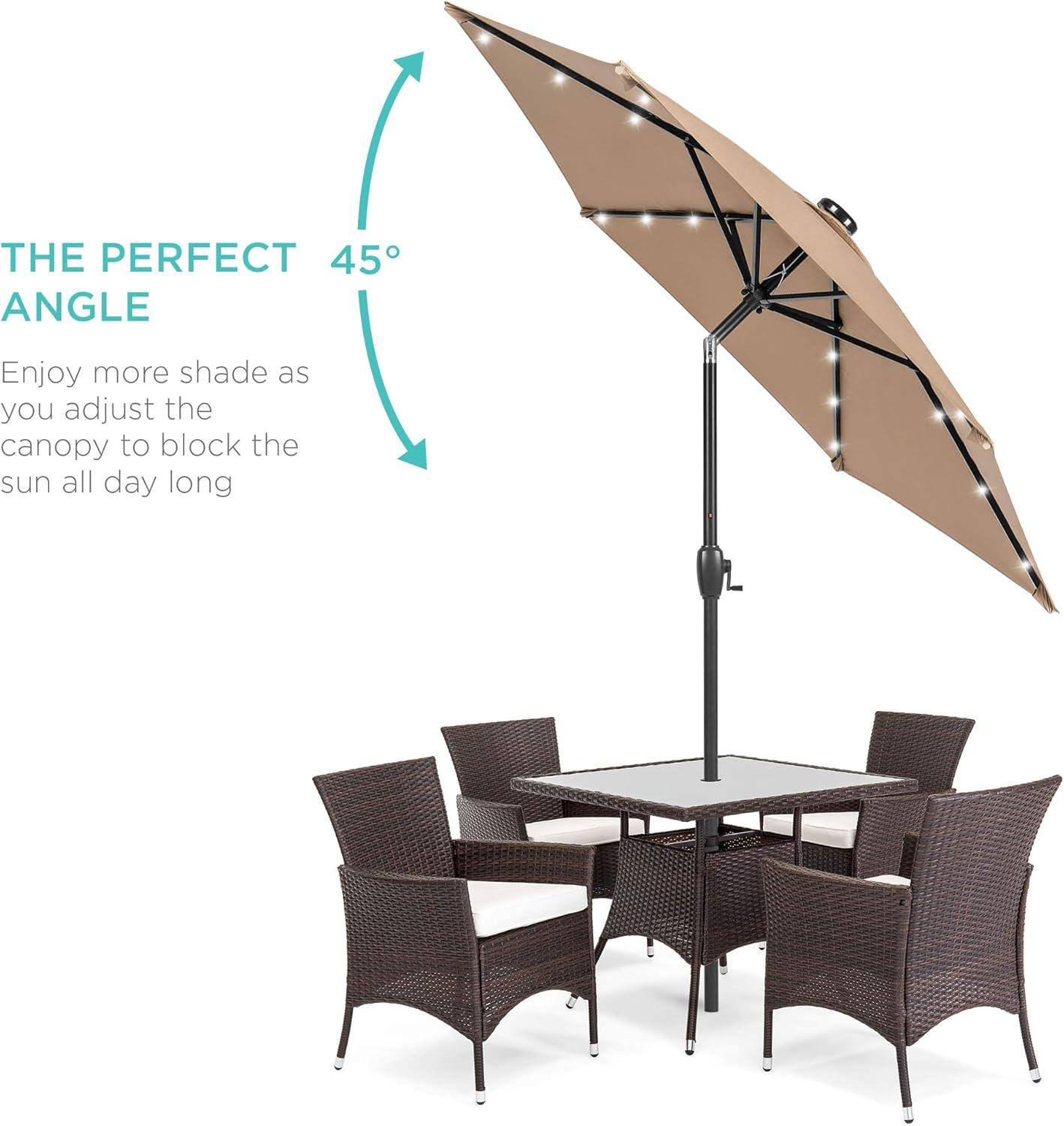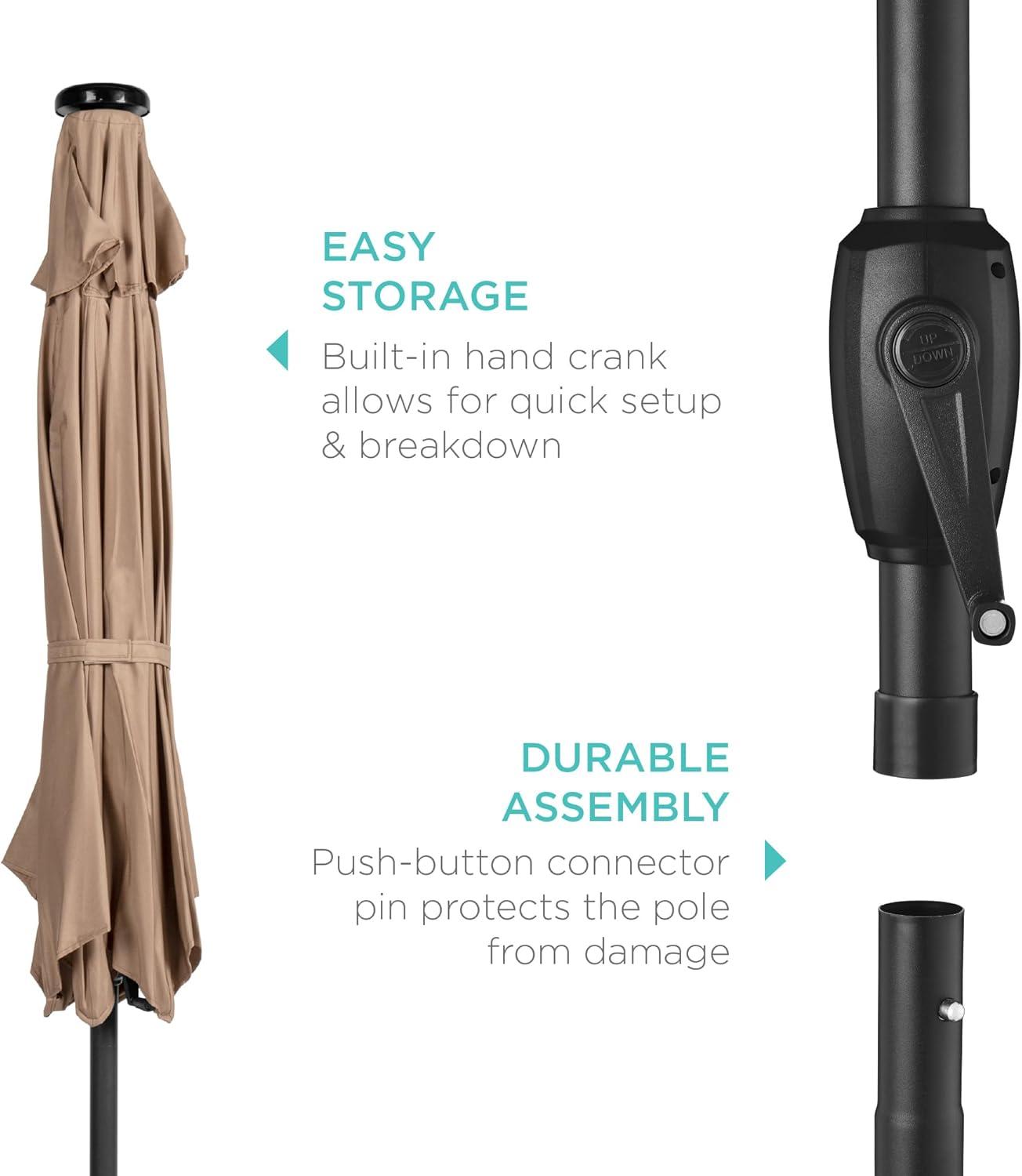 Best Choice Products 10ft Solar Polyester LED Lighted Patio Umbrella w/Tilt Adjustment and UV-Resistant Fabric – Tan(Tan)