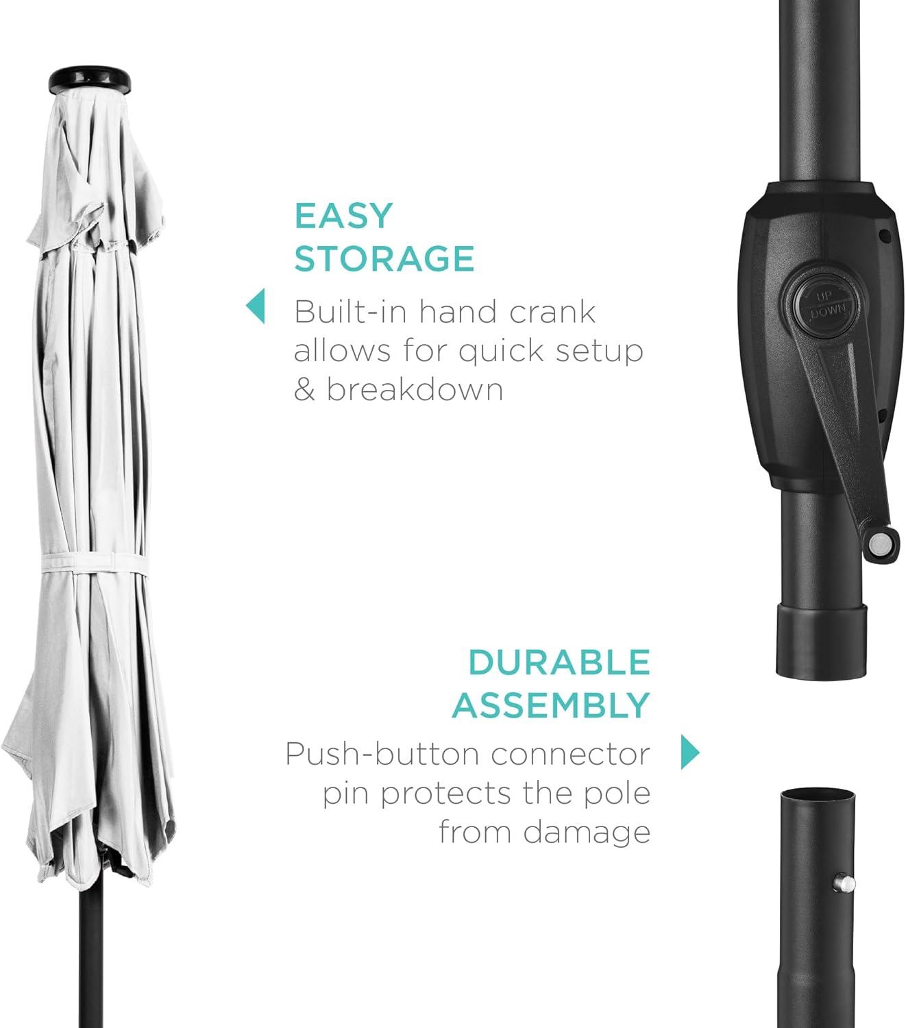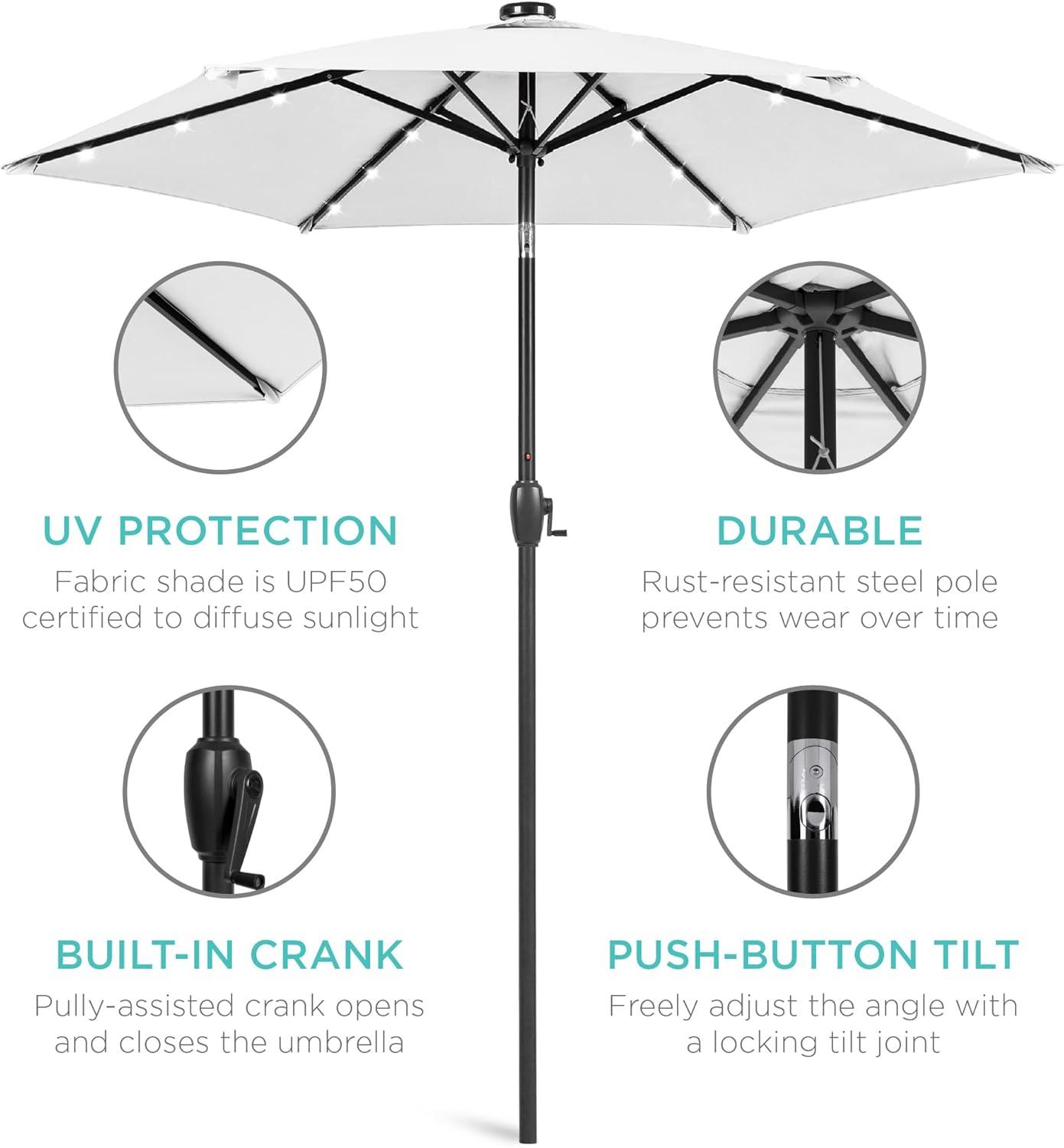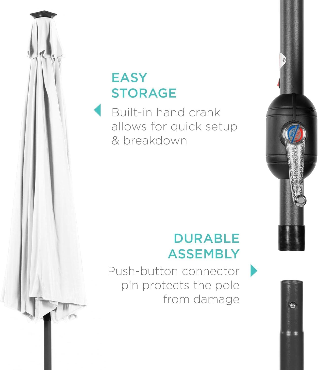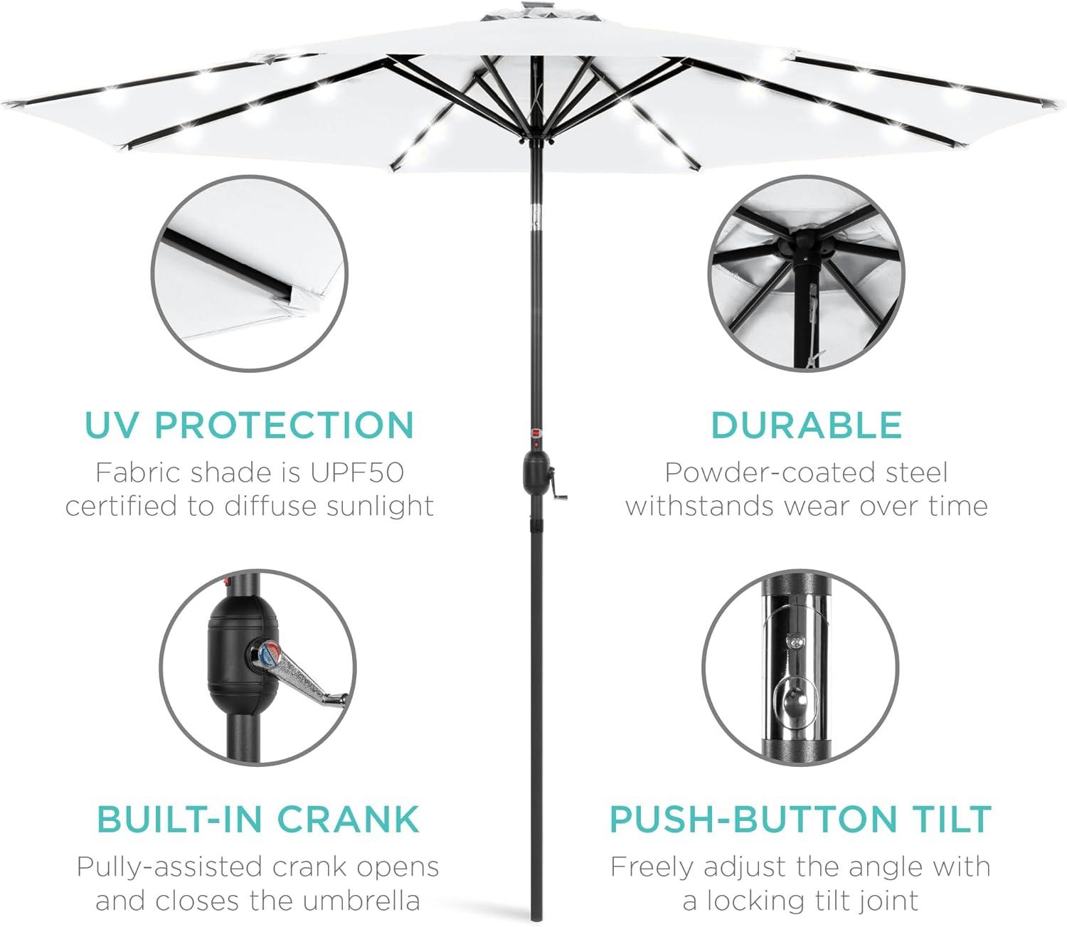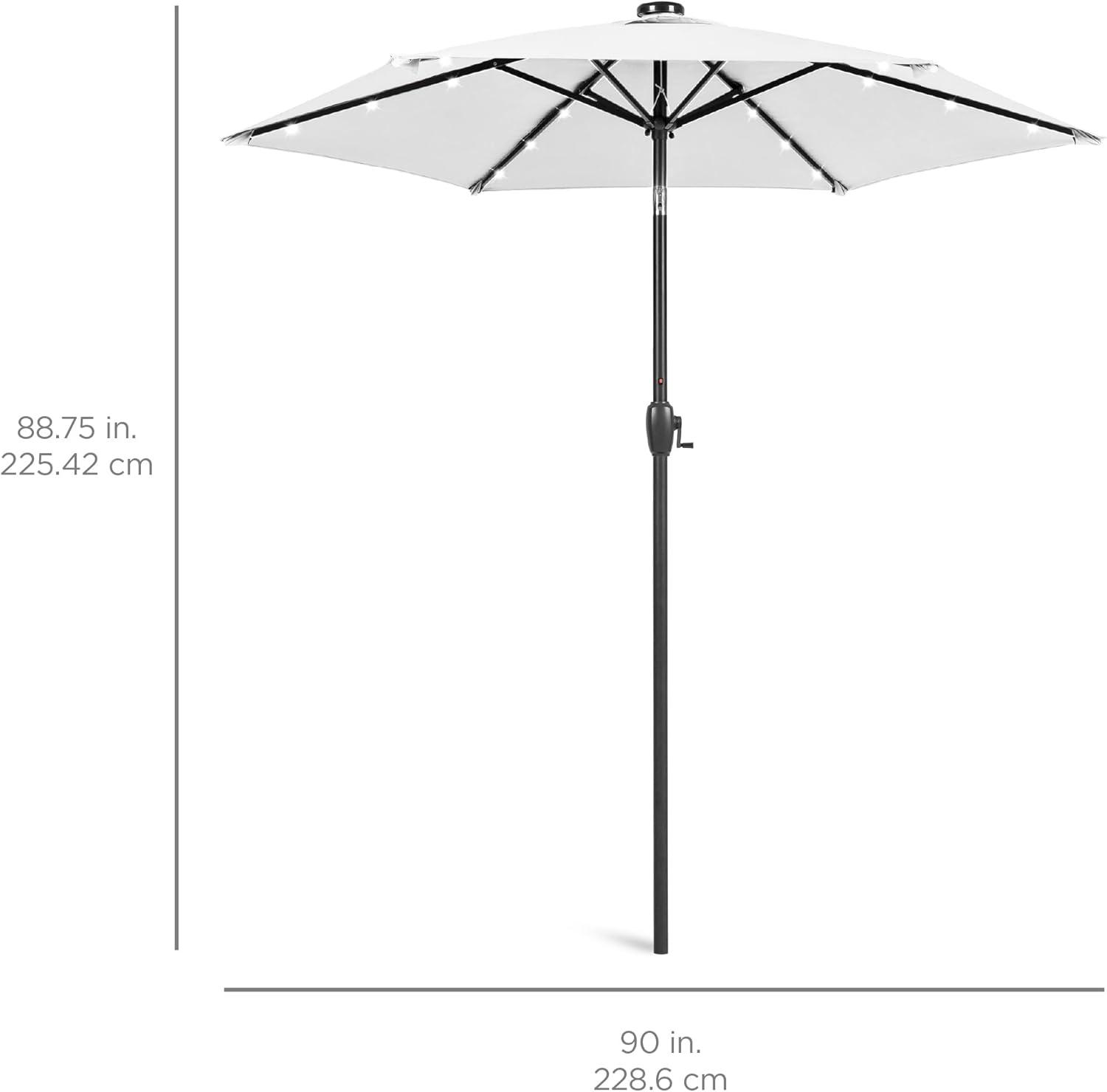Best Choice Products 10ft Solar Polyester LED Lighted Patio Umbrella w/Tilt Adjustment and UV-Resistant Fabric – Tan(White)